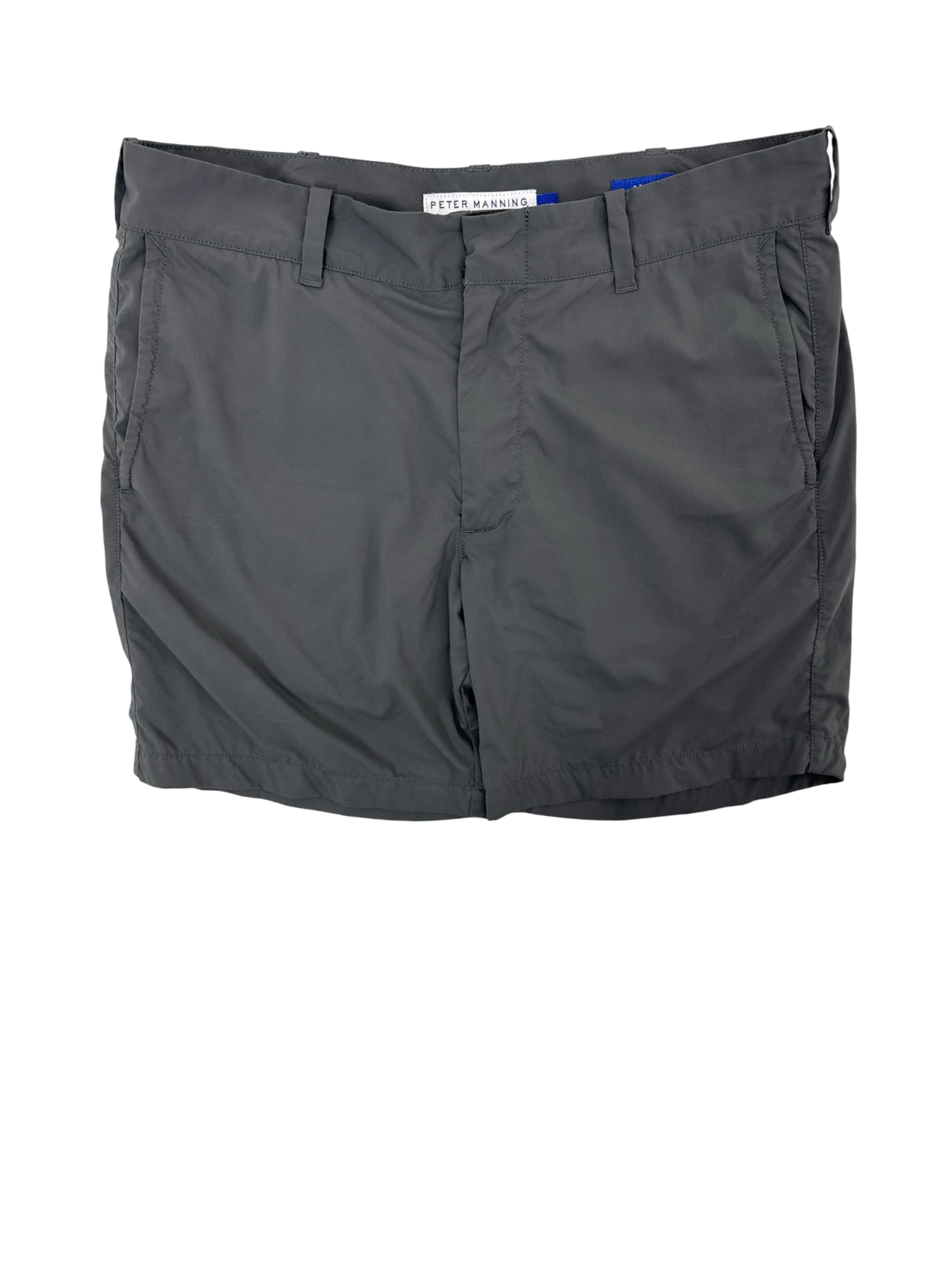 Elevate your summer wardrobe with these pre-owned PETER MANNING chino shorts. Crafted from a blend of durable nylon and a touch of elastane for stretch and comfort, these shorts feature a classic chino style, a versatile gray color, and a comfortable fit. Perfect for casual outings, weekend getaways, or any occasion. Excellent condition, ready for their next adventure. - These pre-owned Peter Manning Chino Shorts offer a sleek and stylish look for men. Featuring a classic design with a modern fit, these shorts are perfect for casual wear or dressing up. They are crafted from a high-quality nylon and elastane blend, ensuring durability and comfort. The versatile gray color makes them easy to pair with various tops and shoes. A great addition to any wardrobe, these shorts combine style and practicality effortlessly.