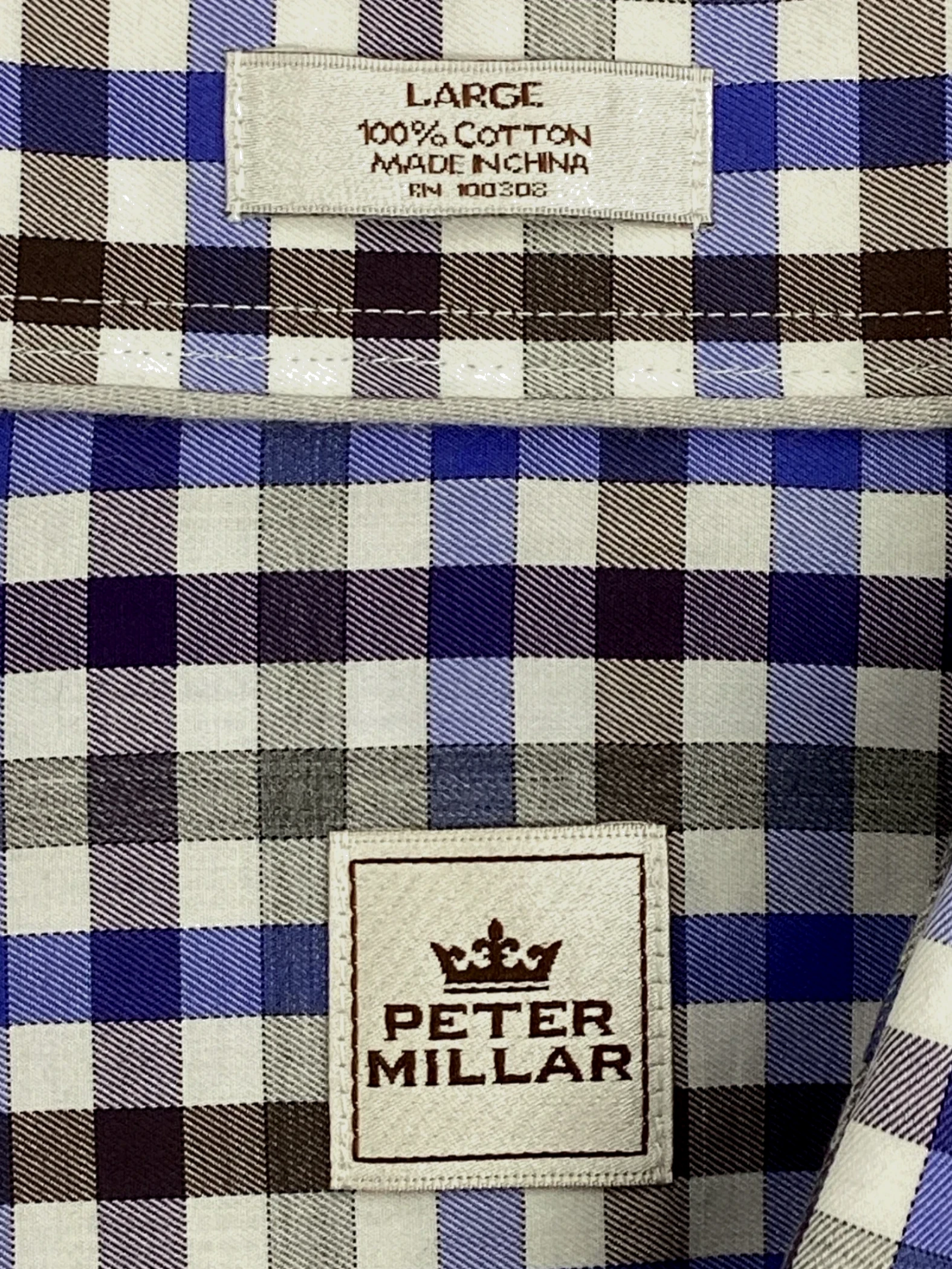 This pre-owned Peter Millar men's long-sleeve shirt is a stylish addition to any wardrobe. Crafted from 100% cotton, it offers both comfort and quality. The classic plaid pattern in shades of blue and other colors makes it versatile for various occasions. The shirt features a button-up closure and a comfortable collar, making it perfect for both casual and smart-casual wear. This shirt is a perfect blend of style and functionality.