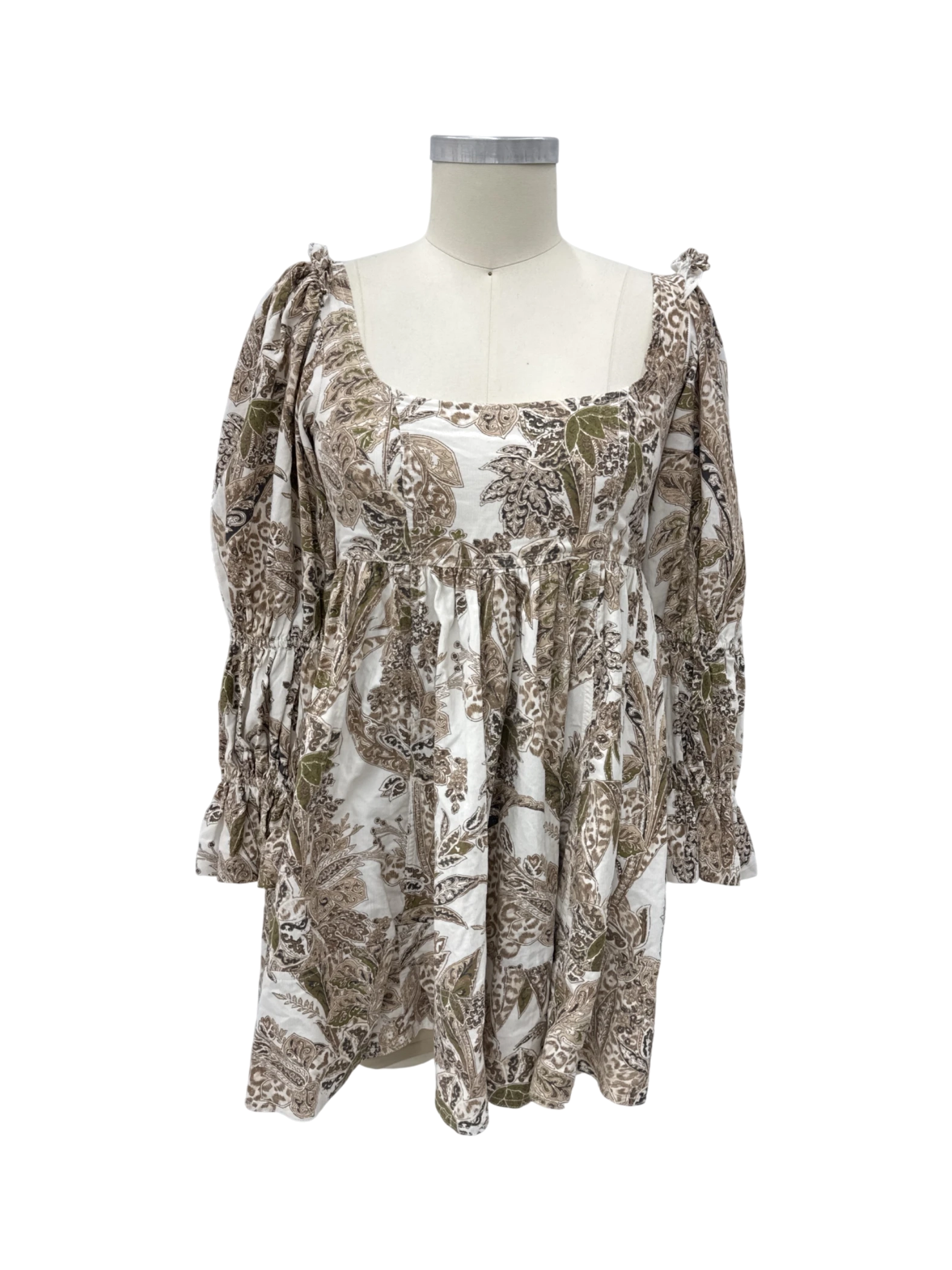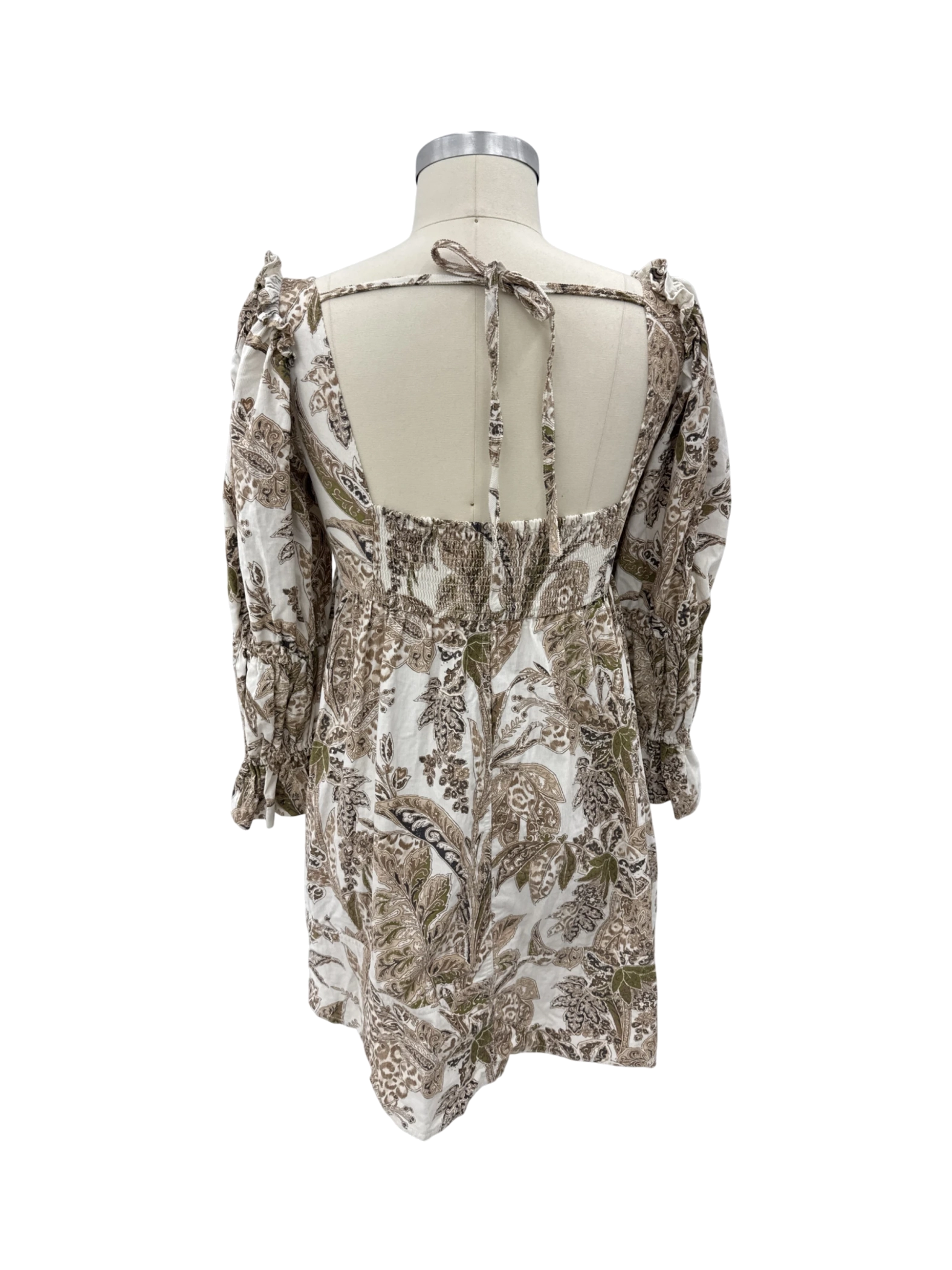 Embrace effortless style with this pre-loved Pilcro dress. This charming A-line dress features a delightful floral pattern in shades of brown, white and green, perfect for any casual occasion. The dress is made from 100% cotton, ensuring comfort and breathability. With its unique neckline and long sleeves, this dress is both stylish and versatile, ideal for warm weather or layering during cooler seasons.