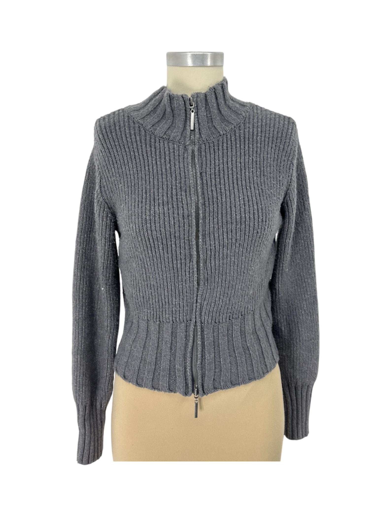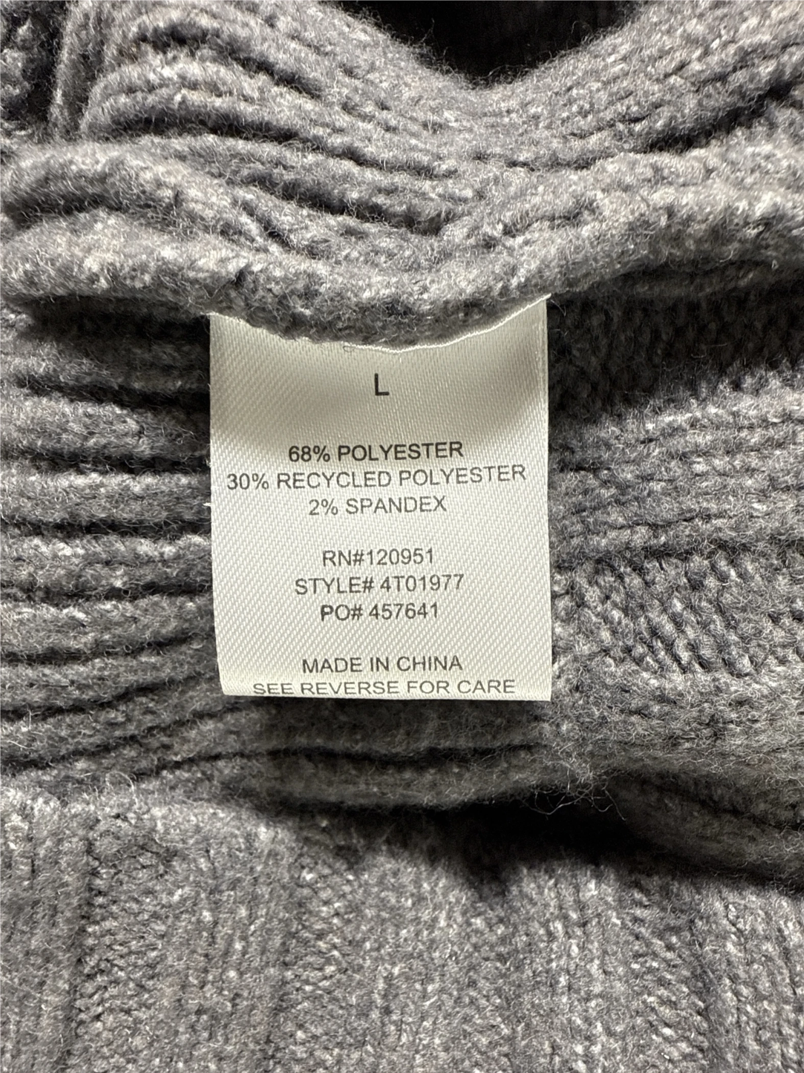 Elevate your fall and winter wardrobe with this pre-loved PINK ROSE sweater. This cozy gray cardigan features a classic turtleneck and a convenient zip-up closure, providing both style and warmth. The ribbed knit design adds texture, while the comfortable blend of materials ensures a flattering fit. Perfect for layering, this sweater is ideal for casual outings or adding a touch of sophistication to your everyday look.