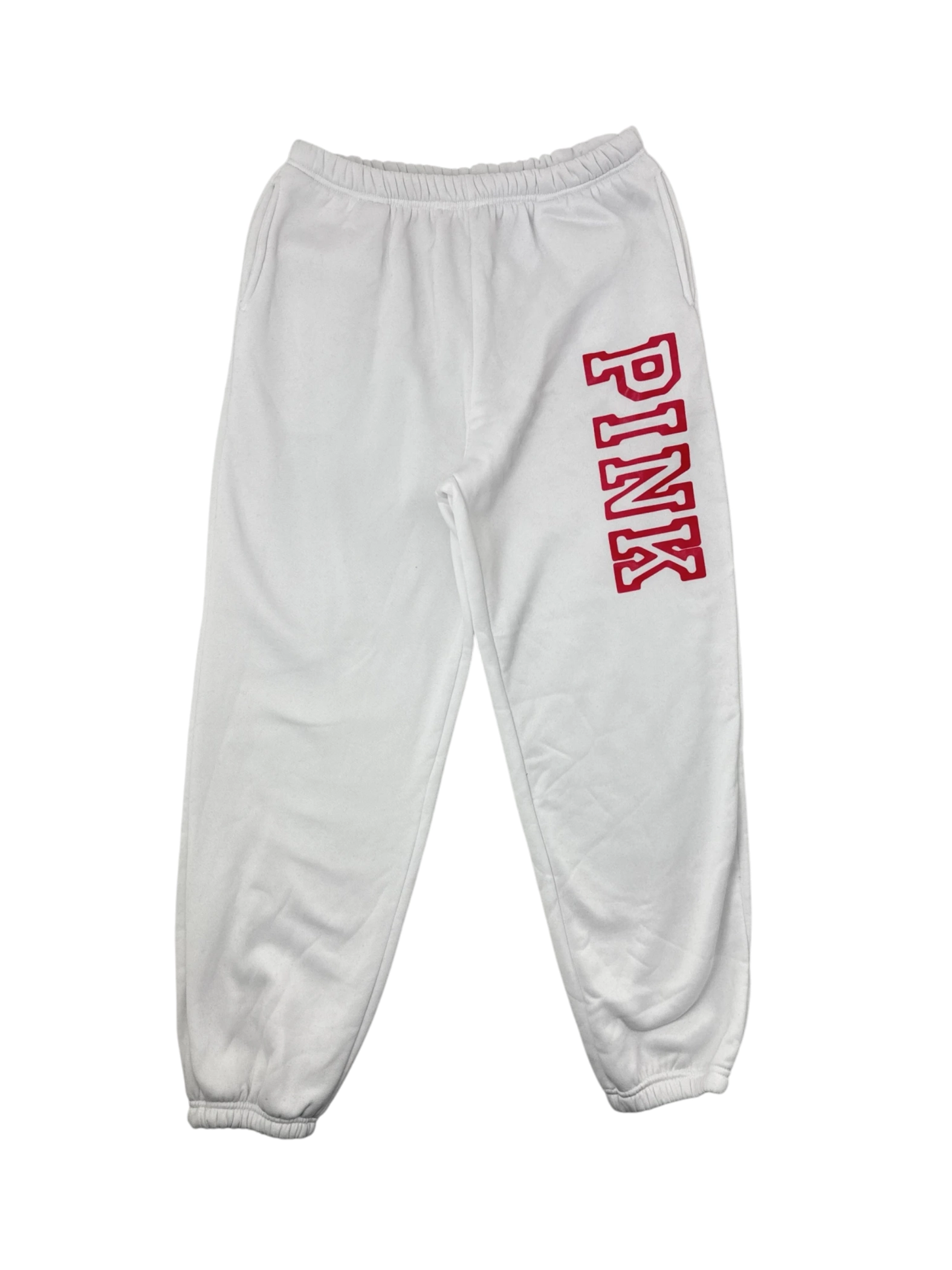 Step up your loungewear game with these pre-owned PINK sweatpants. Featuring a comfy fit and the iconic PINK logo, these sweatpants are perfect for casual wear or hitting the gym. Made from soft, durable polyester, these sweatpants offer both style and comfort. The classic design and white color make them a versatile addition to any wardrobe. These pre-owned sweatpants are a great way to add a touch of trendy athleisure style to your closet.