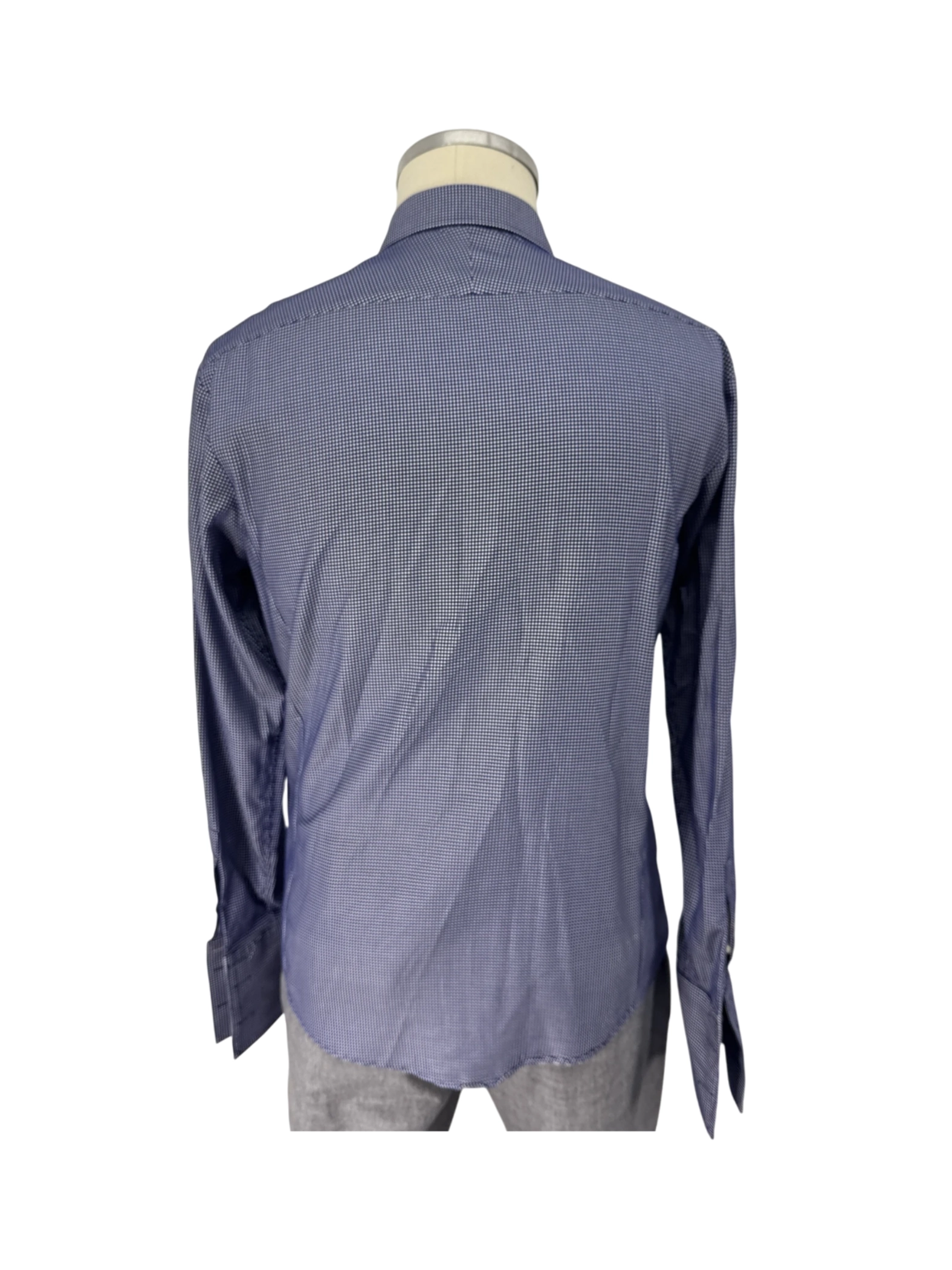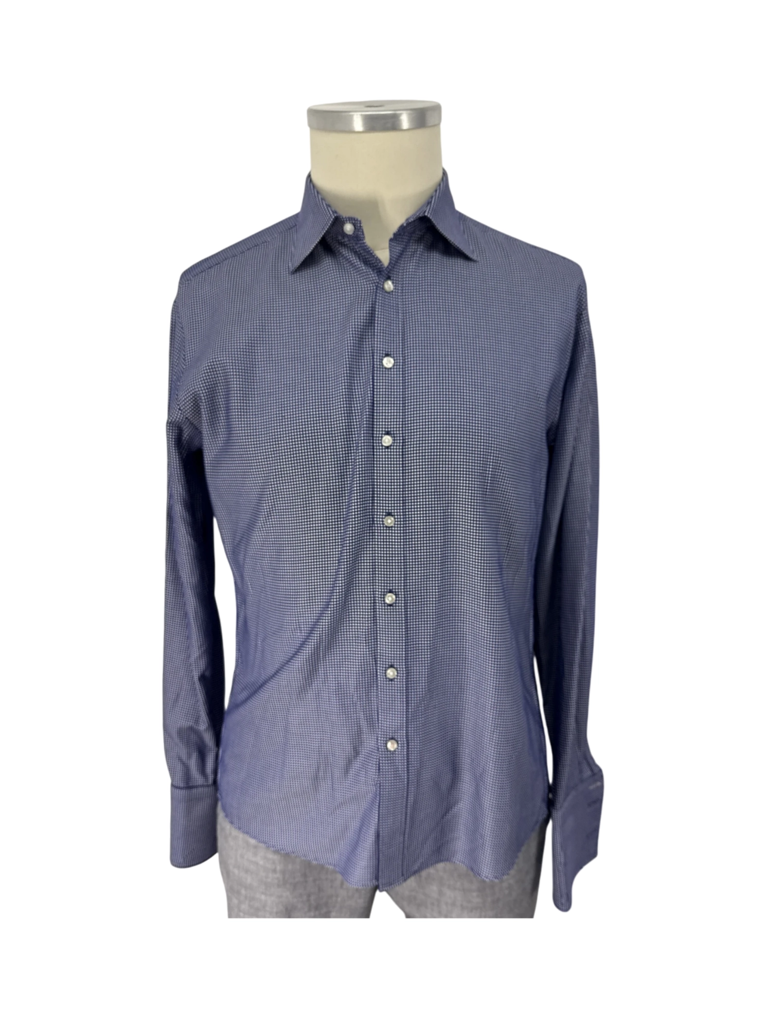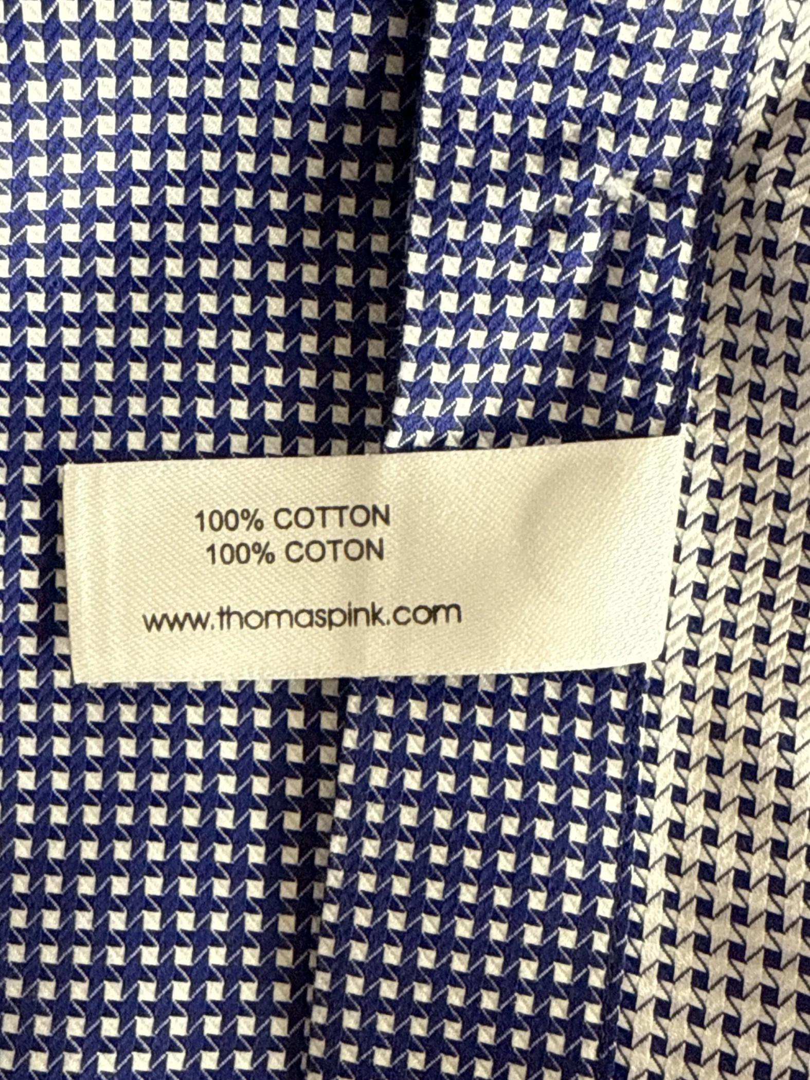 Elevate your wardrobe with this pre-owned PINK Thomas Pink dress shirt. Crafted from 100% cotton, this slim-fit shirt features a classic collar and long sleeves, perfect for a polished look. The blue and white checkered pattern adds a touch of sophistication, making it suitable for various occasions. This stylish button-down shirt is a timeless addition to any man's collection. Ideal for both business and casual wear, this shirt offers comfort and style without sacrificing quality.