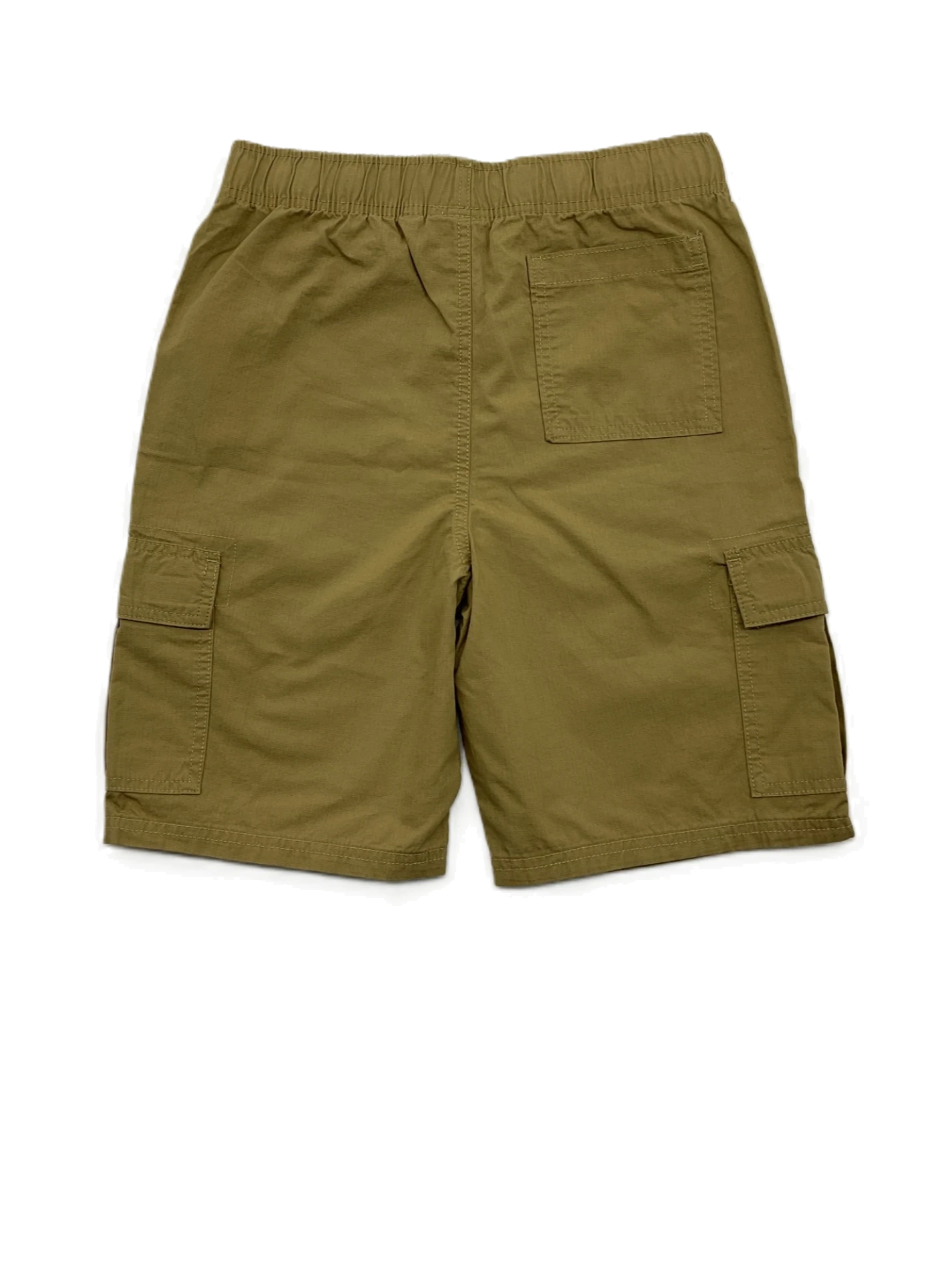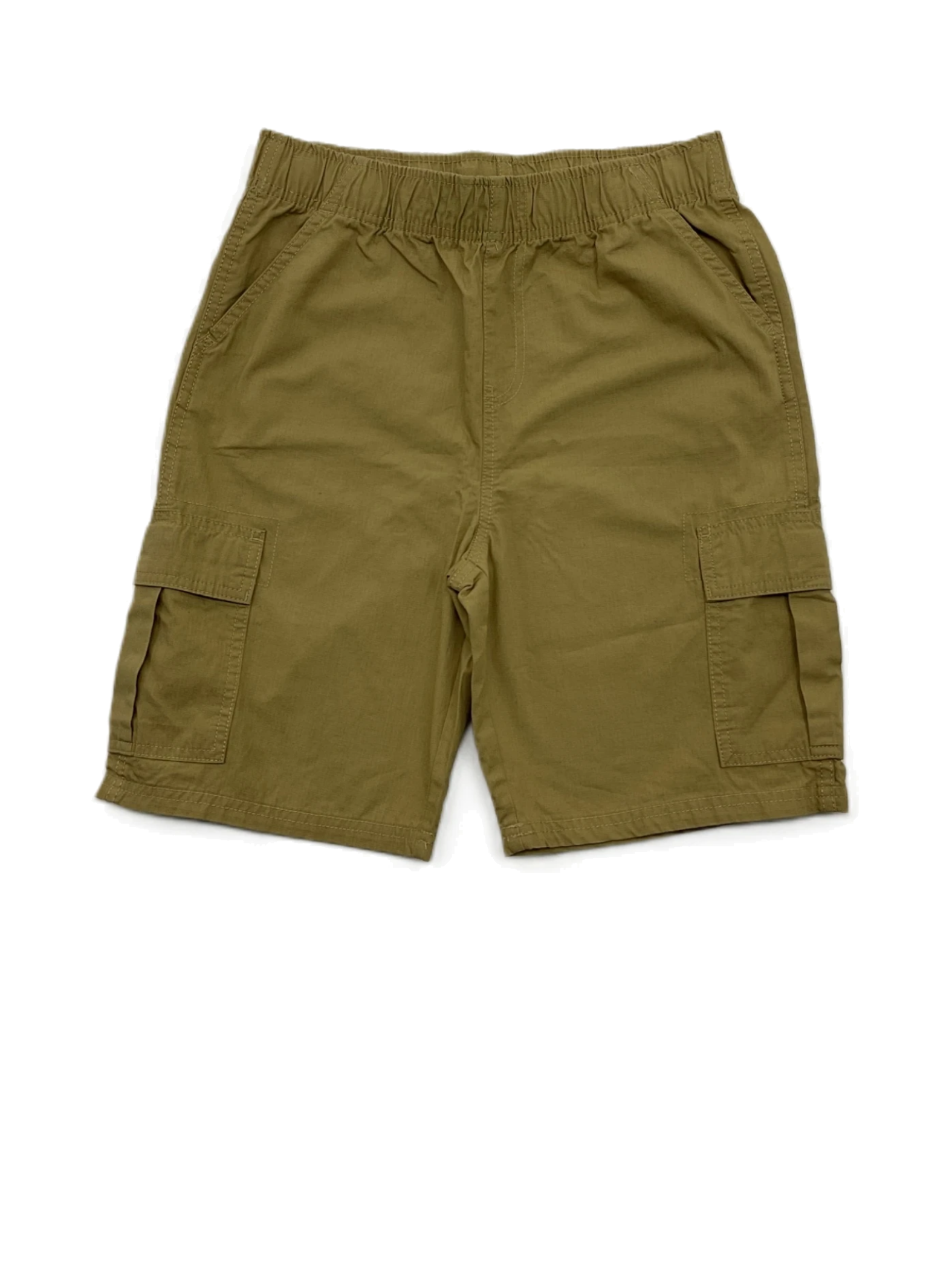 Boys' cargo shorts in size 12 with a tan color and pull-up style. Husky