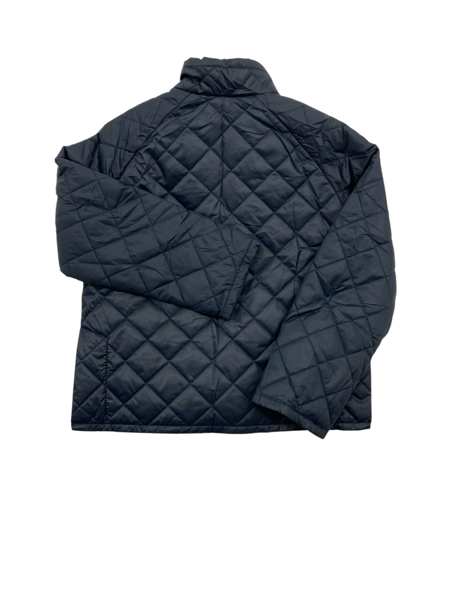 The navy quilted coat for boys in size 3/3T is missing the material tag.