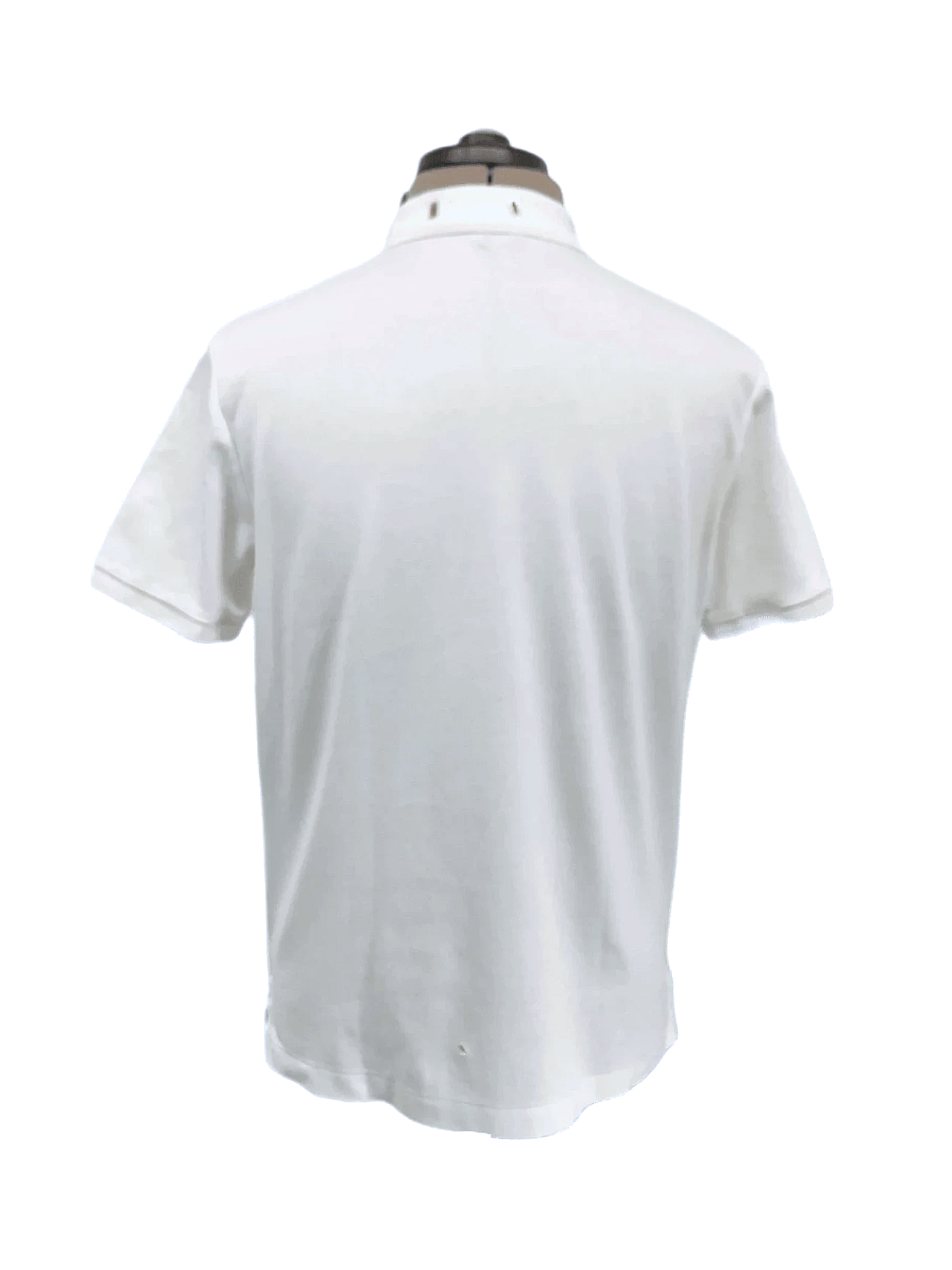 This is a white Polo Ralph Lauren men's interlock polo shirt. Minimal wear to top is evident. Minimal marks to front of this used Polo by Ralph Lauren designer resale item.