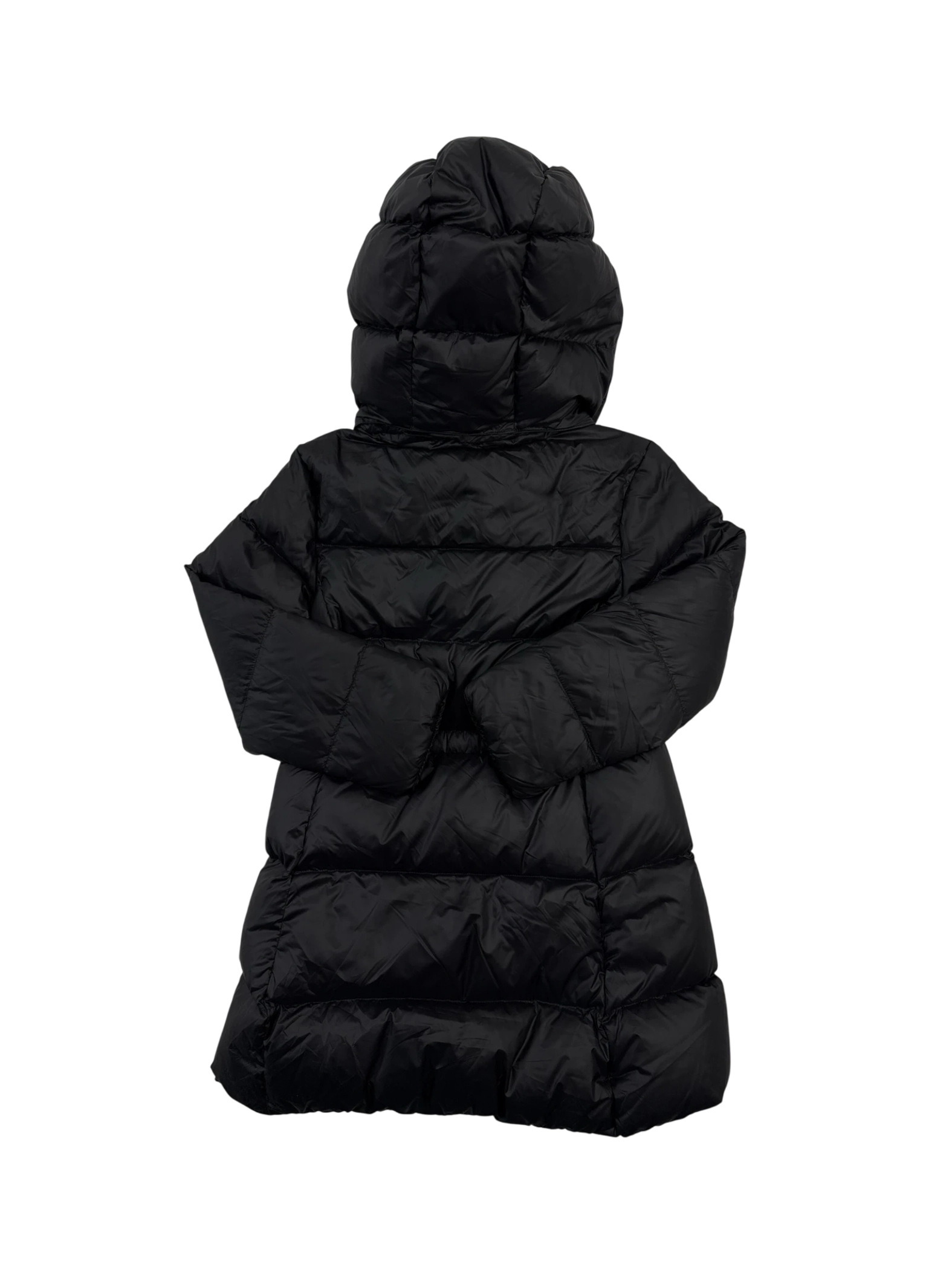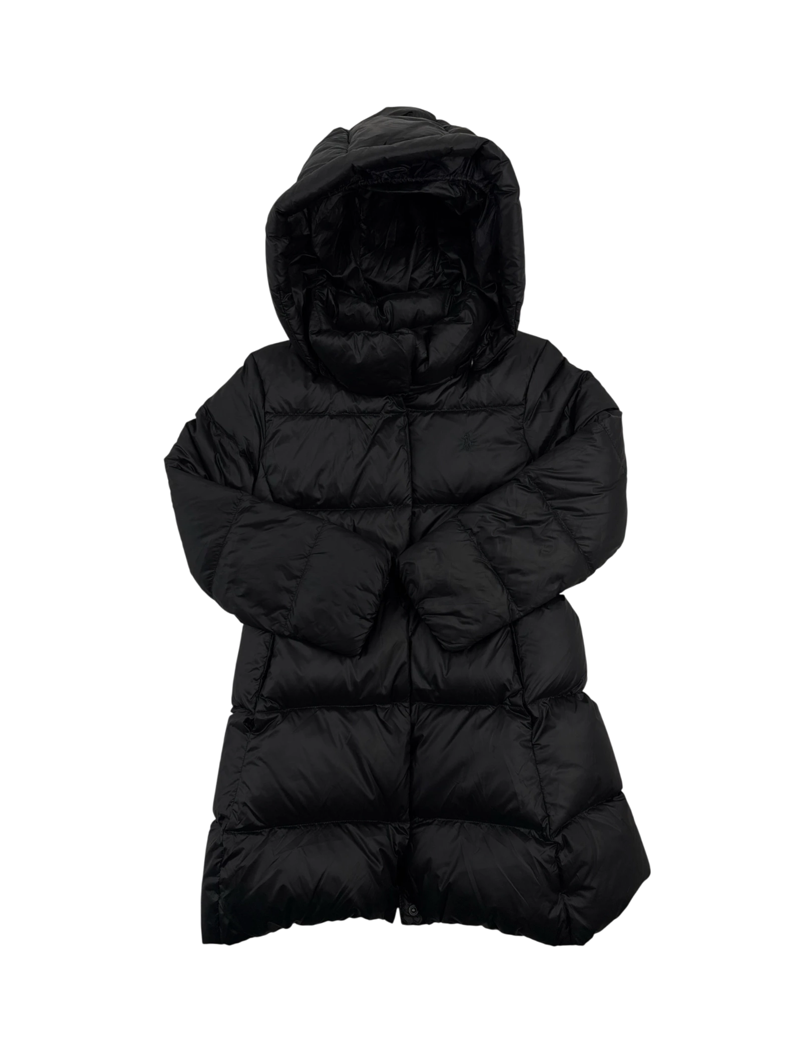 This pre-owned Polo Ralph Lauren black puffer coat is perfect for keeping your little girl warm during the colder months. It features a hood for added protection, a secure zipper closure, and is made of durable polyester material. This stylish coat is in great condition and is a great addition to any girl's wardrobe. Perfect for everyday wear or special occasions, this jacket offers both comfort and style.