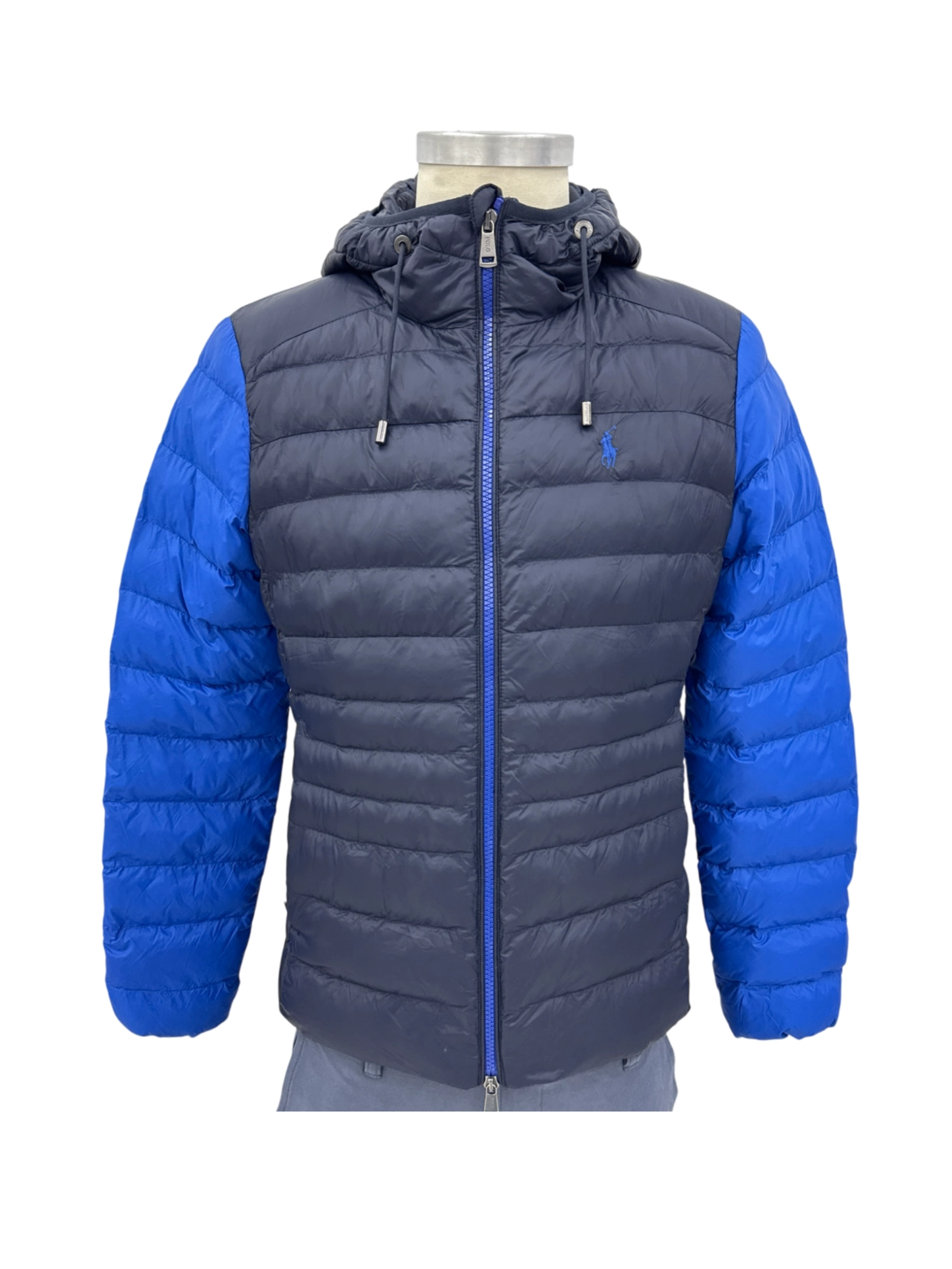 Elevate your outerwear collection with this stylish pre-owned Polo Ralph Lauren jacket. This versatile jacket is crafted from durable nylon and features a sleek design, perfect for adding a touch of sophistication to any outfit. The jacket features a color block design in blue and black and is designed with a hood and a zipper closure. Stay comfortable and stylish in this must-have jacket, ideal for layering during the cooler seasons. A perfect blend of style and functionality.