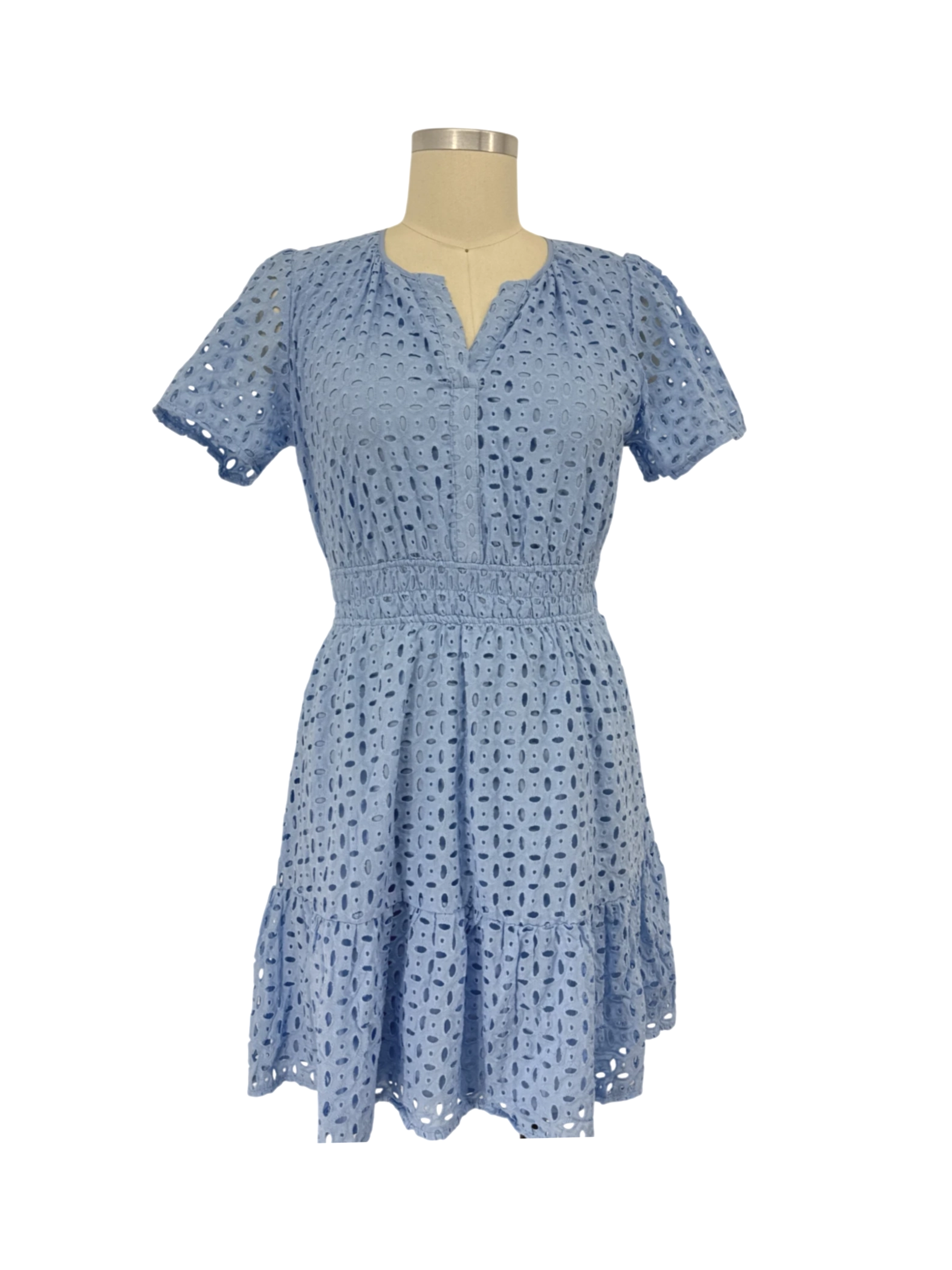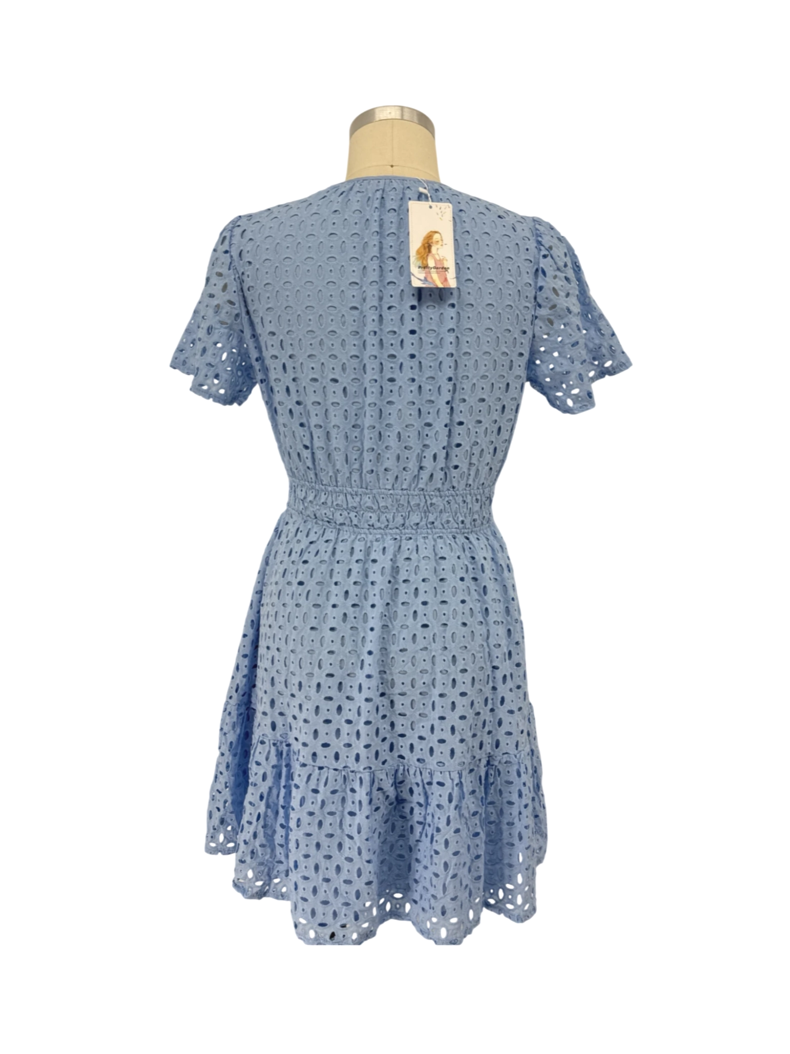 This pre-owned PrettyGarden dress is a charming addition to any wardrobe. Crafted from lightweight, breathable fabric, this dress is perfect for warm weather. Its A-line silhouette and eyelet detailing create a flattering and feminine look. The dress features a V-neckline, short sleeves, and a comfortable fit. Ideal for casual outings or a day at the beach. Available in size S.