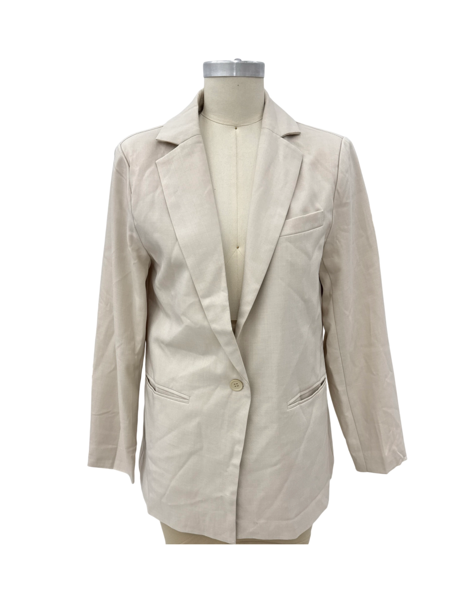 Elevate your wardrobe with this stylish PrettyGarden blazer, a perfect addition to any outfit. This pre-owned blazer, in a classic beige color, offers a tailored fit with a touch of elegance. Crafted from a blend of polyester and elastane, this blazer offers both comfort and durability. Ideal for the spring and fall seasons, it's a versatile piece suitable for both casual and formal occasions. Get yours today and enjoy a timeless piece at an affordable price!