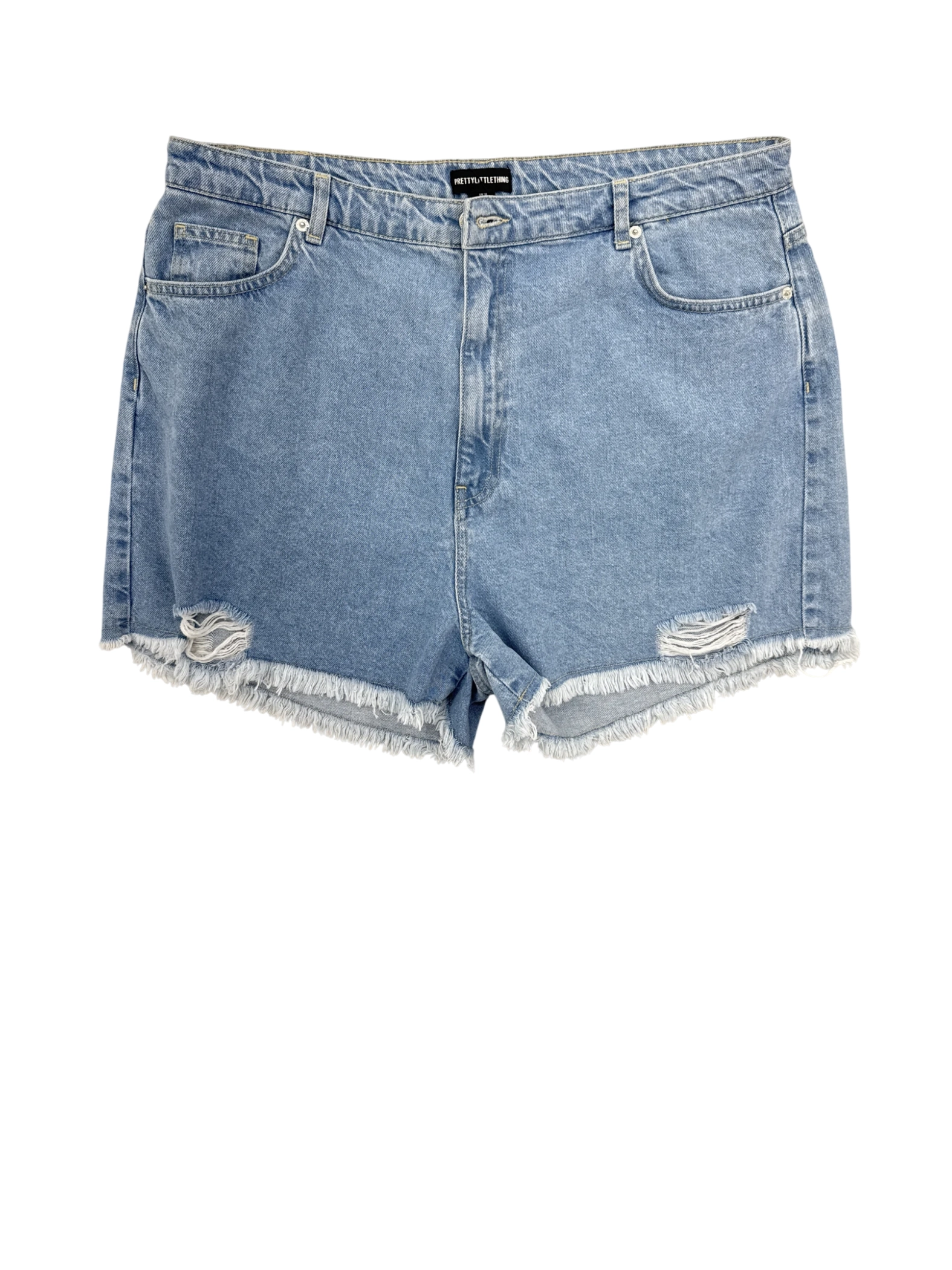 These pre-owned PrettyLittleThing denim shorts are a must-have for your summer wardrobe. Crafted from durable denim, these shorts feature a classic blue wash, distressed detailing, and a high-waisted design for a flattering fit. Perfect for casual outings or a beach day, they're versatile and stylish. Comfortable and ready for wear, these shorts are a sustainable choice. Ideal for creating a chic, effortless look.