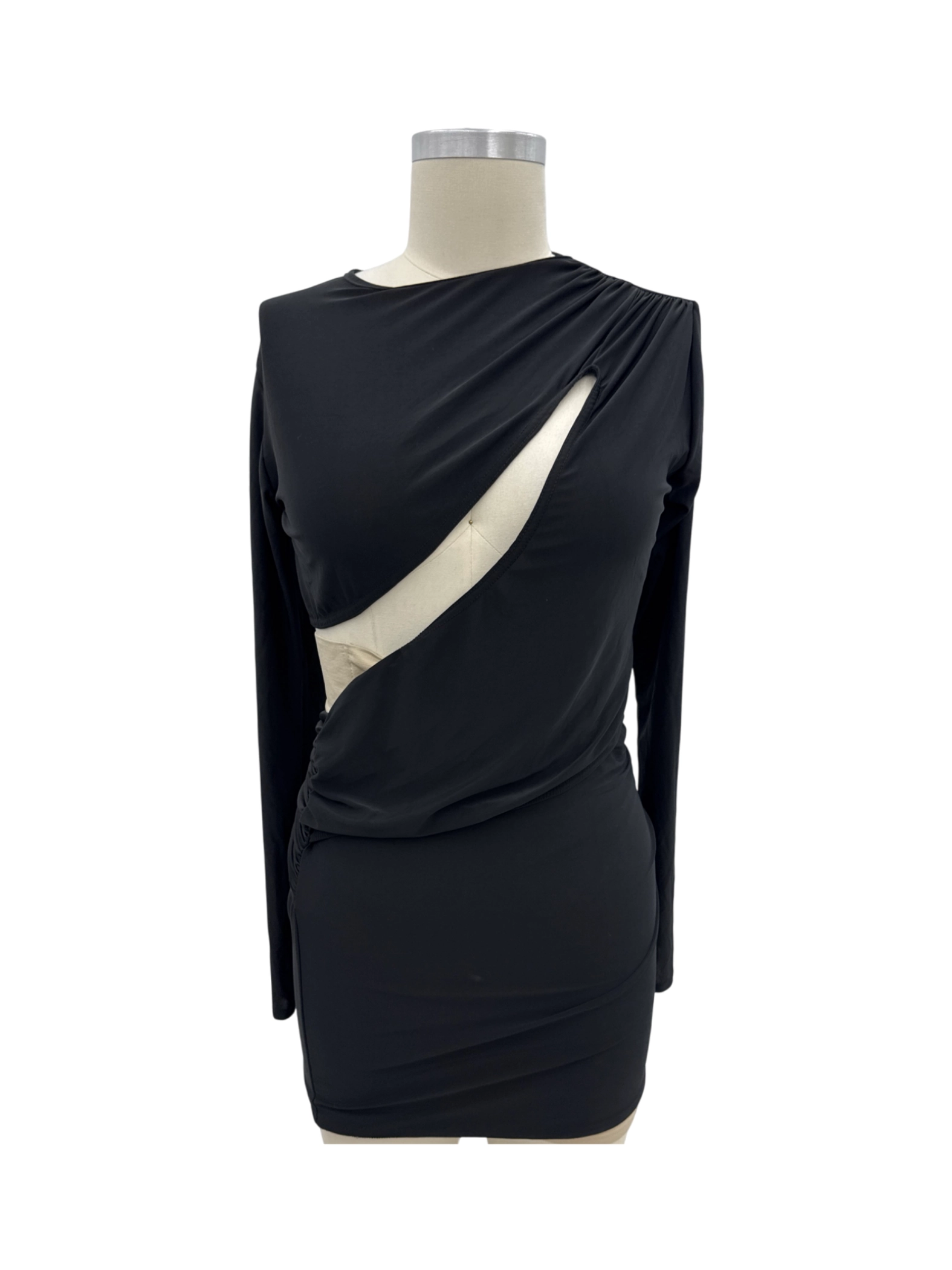 This chic PrettyLittleThing top is a stylish addition to any wardrobe. The cutout design adds a touch of boldness, while the long sleeves offer a versatile look suitable for various seasons. The black color makes it easy to pair with different outfits, creating endless possibilities. Crafted from a blend of polyester and spandex, this top ensures a comfortable and flattering fit. Its unique design and modern style make it ideal for casual wear or dressing up for a night out.