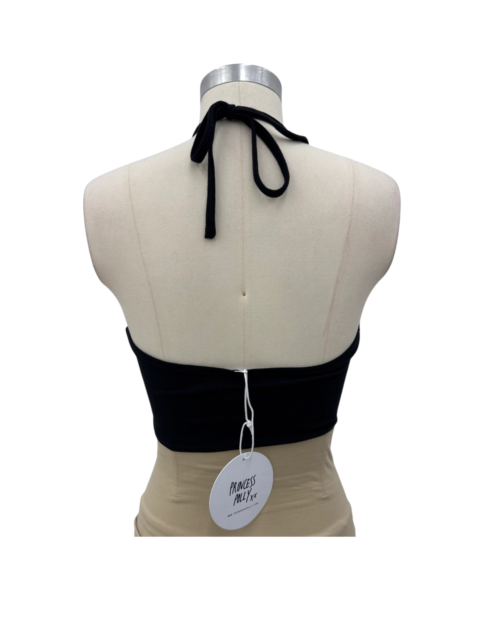 Elevate your summer wardrobe with this stylish Princess Polly halter top. This pre-owned black crop top is a perfect addition to any outfit. The halter design adds a touch of sophistication, making it ideal for a night out or a casual day look. Made with quality materials, this top is not only fashionable but also comfortable. A must-have piece for fashion-forward women, perfect for creating versatile and trendy ensembles.