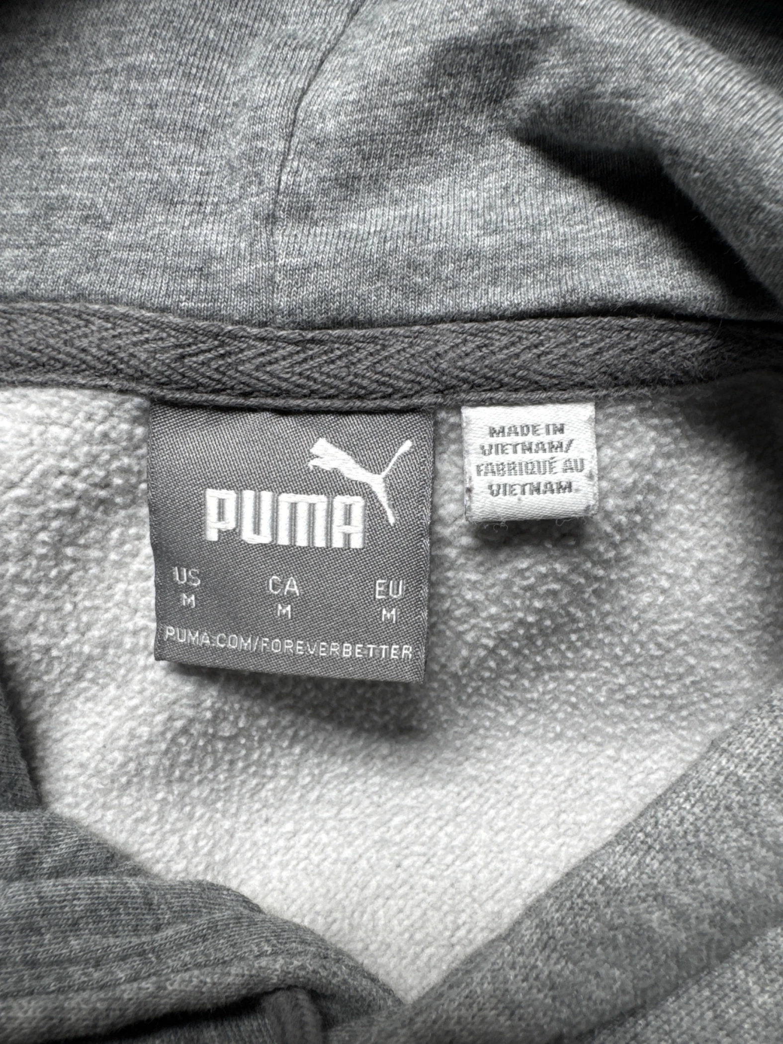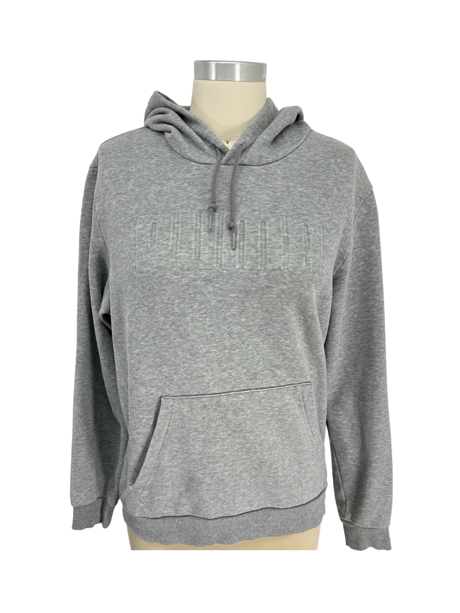 This pre-owned PUMA hooded jacket is a comfortable and stylish choice for everyday wear. Made with a soft polyester blend, this gray hoodie features a classic design with a front pocket and a cozy hood, perfect for cooler weather. The minimalist design, with the brand name subtly embossed across the chest, makes it a versatile piece that can be easily paired with any outfit.