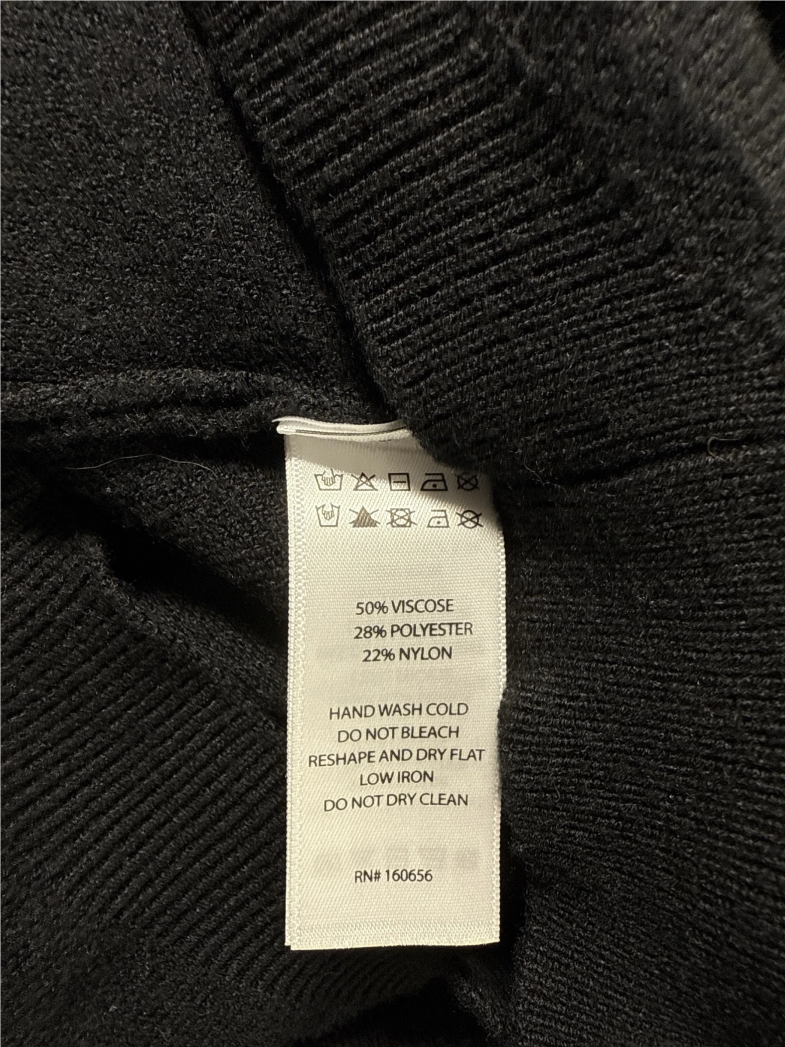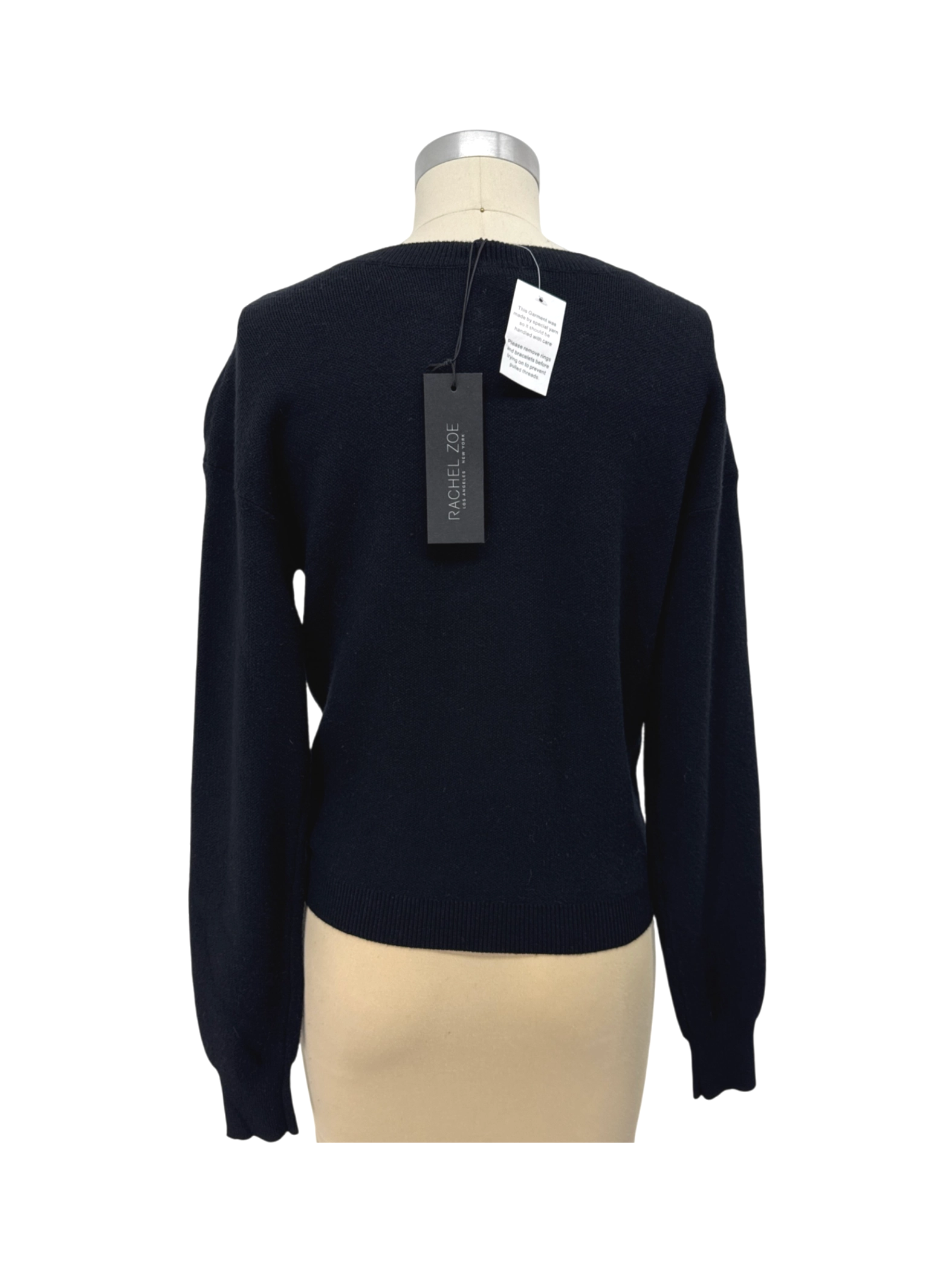 Elevate your wardrobe with this stylish pre-owned RACHEL ZOE black sweater. This versatile piece, crafted from a soft blend of viscose, polyester, and nylon, features a classic round neckline and long sleeves, making it perfect for layering. Its timeless design is ideal for both casual and dressier occasions. Excellent condition, offering a comfortable and chic look. A must-have addition for any fashion-conscious woman.