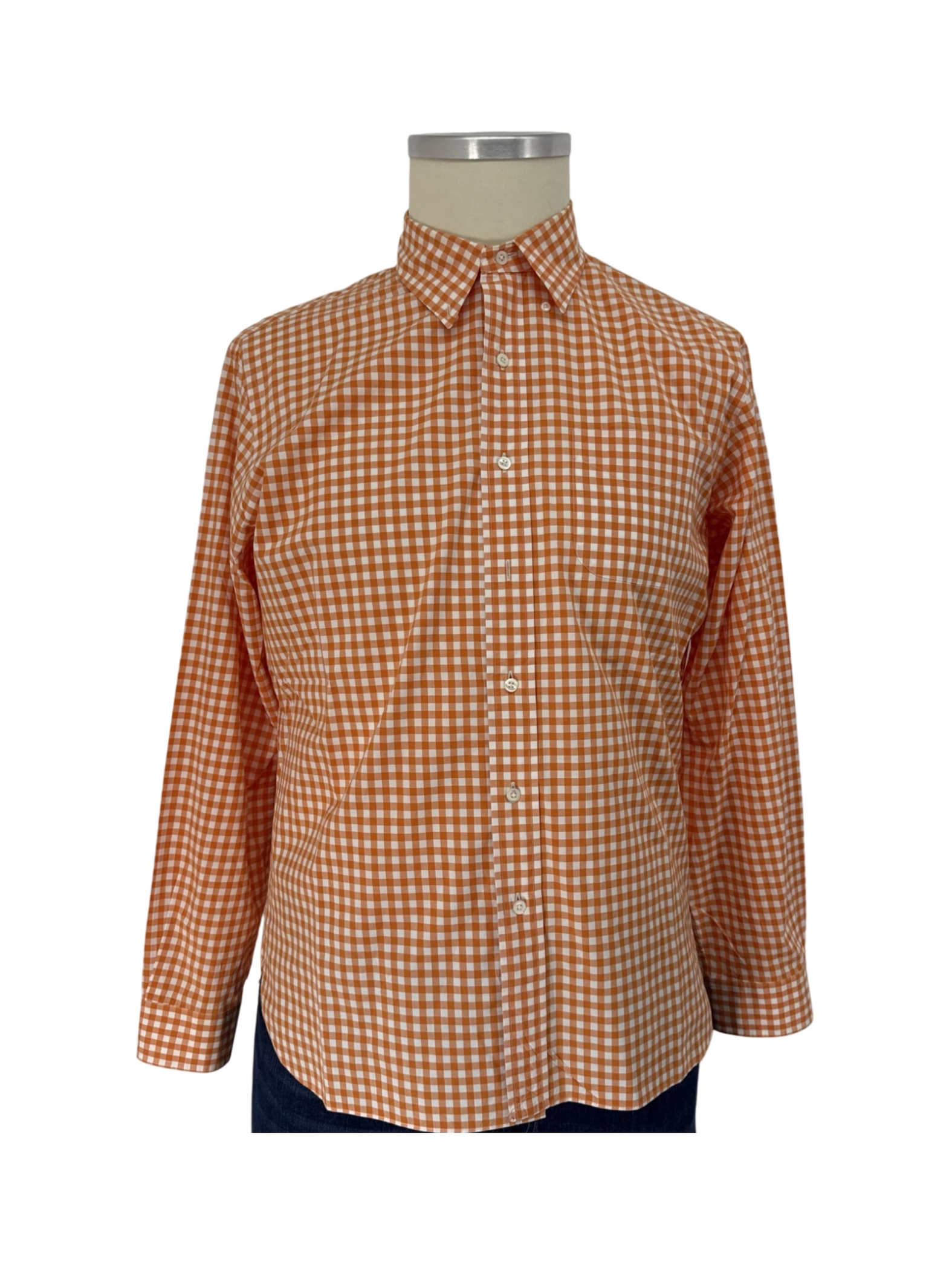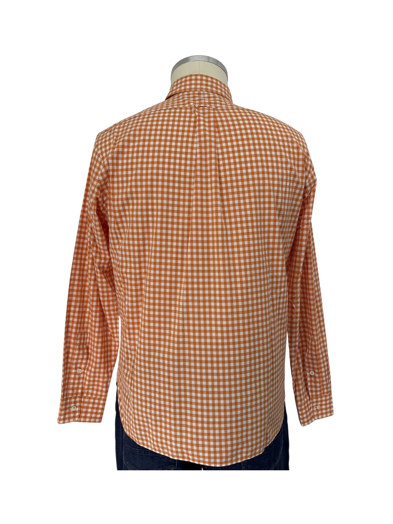This pre-owned Ralph Lauren long sleeve shirt is a stylish addition to any wardrobe. Featuring a classic plaid pattern in shades of orange and white, this button-up shirt is made of comfortable cotton. Perfect for casual wear, this shirt combines timeless design with quality craftsmanship. Ideal for adding a touch of sophistication to your everyday look.