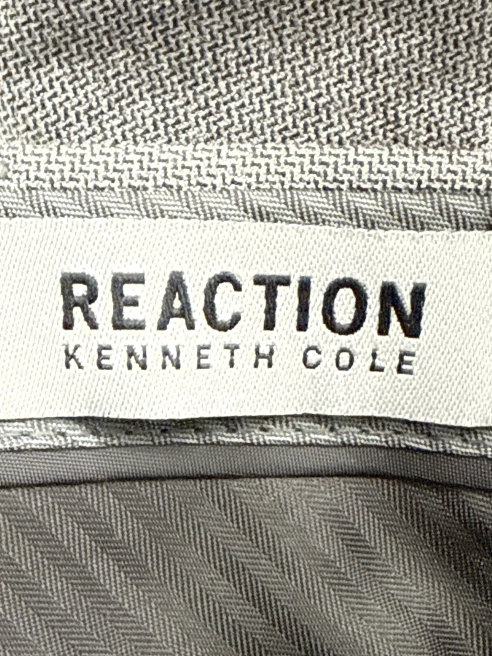 Elevate your wardrobe with these stylish REACTION KENNETH COLE dress pants. Crafted from a blend of polyester, viscose and spandex, these pants offer a comfortable fit and a touch of stretch. Featuring a classic straight-leg design and a versatile gray color, they're perfect for both formal and business-casual occasions. These pre-owned pants are in excellent condition, offering a great value for a high-quality item. A timeless addition to any men's closet.