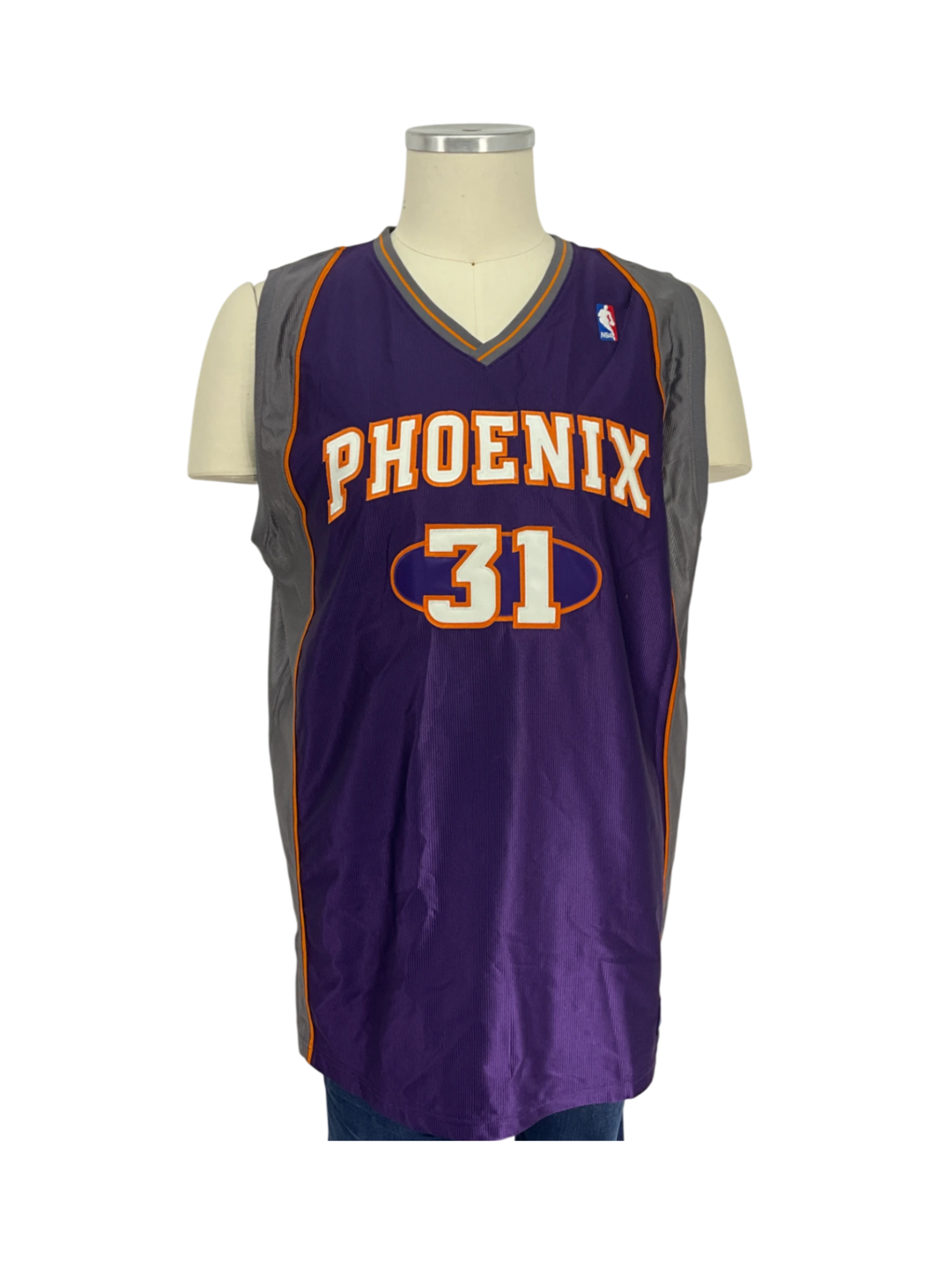 Showcase your love for the Phoenix Suns with this authentic Reebok jersey. This vintage piece features the iconic purple and orange color scheme, complete with the 'Phoenix' and number '31' detailing. Made from durable polyester, this jersey offers a comfortable fit suitable for game days or casual wear. A perfect addition for any NBA fan, this jersey provides both style and a nod to basketball history.