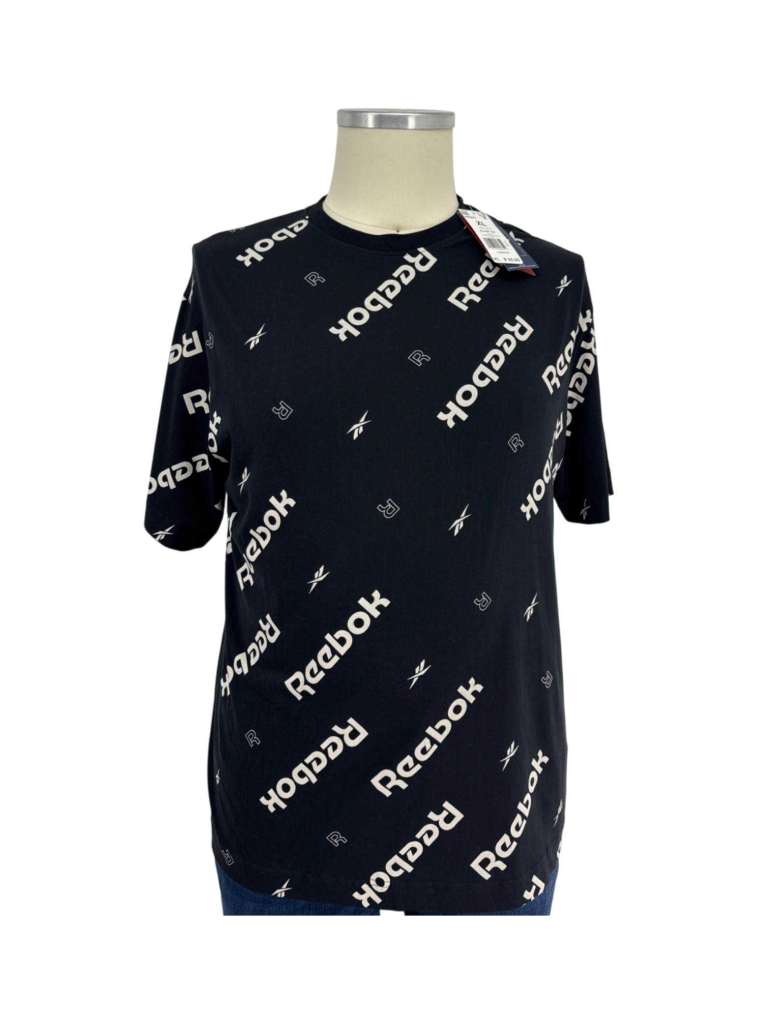 Elevate your casual style with this pre-owned Reebok men's top. Featuring a classic round neck and short sleeves, this tee showcases a bold black and white pattern with the iconic Reebok logo. Made from a comfortable cotton blend, it's perfect for everyday wear. The slip-on closure ensures easy wearability, and the XL size offers a relaxed fit. This versatile top is suitable for various seasons, making it a great addition to your wardrobe. Excellent condition.