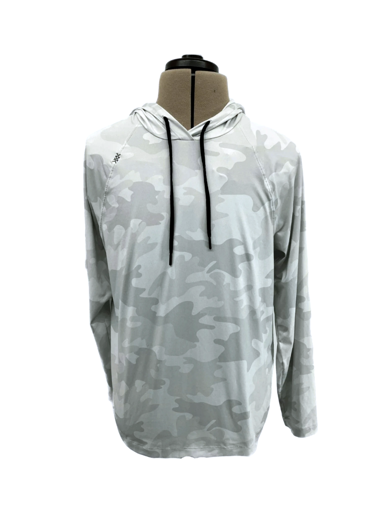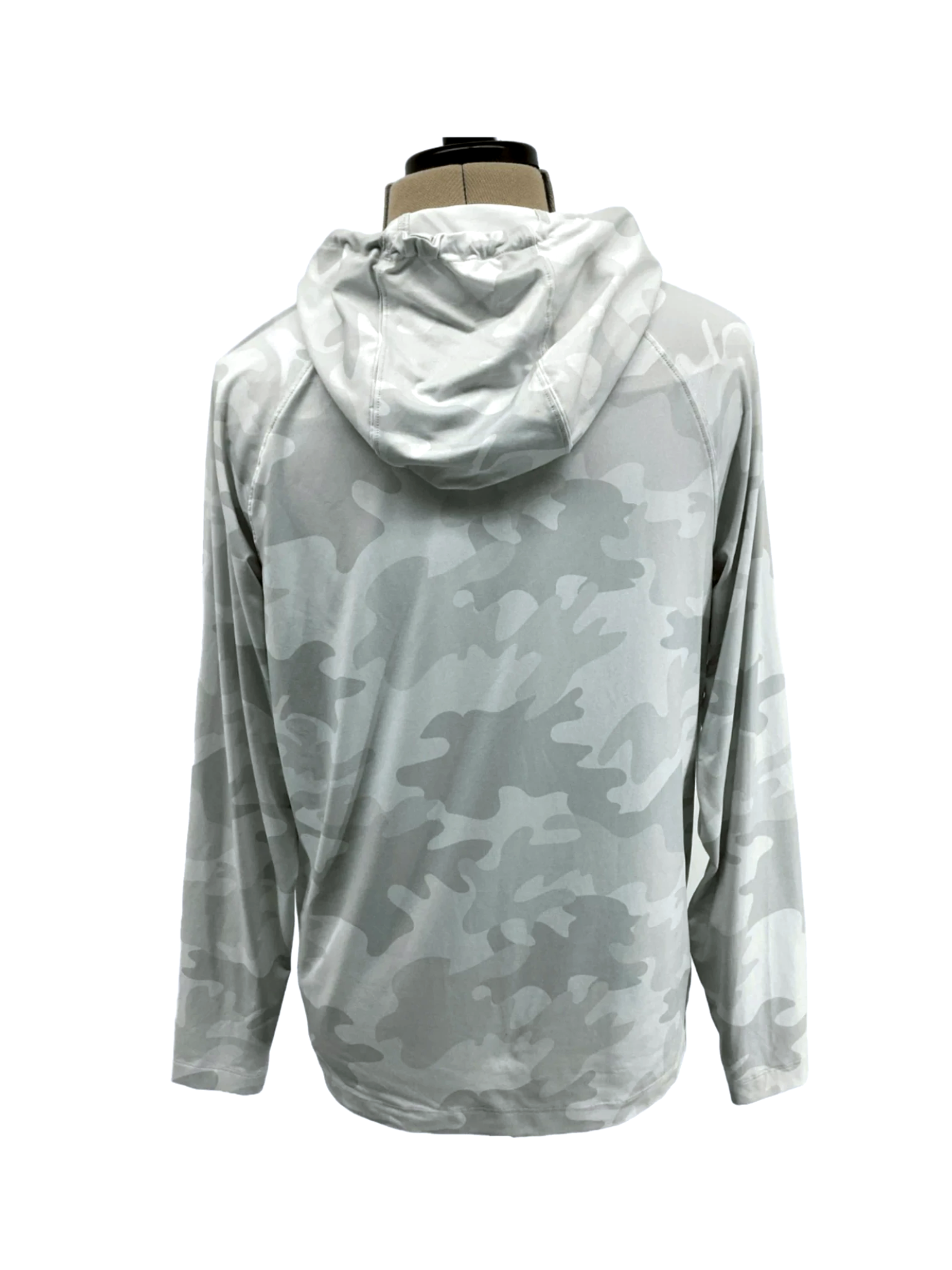 Elevate your activewear with this pre-owned RHONE men's hoodie, designed for both style and performance. This lightweight, long-sleeve hoodie features a modern camouflage pattern in shades of gray, offering a versatile look. Crafted from a blend of recycled polyester and spandex, it provides comfort, flexibility, and quick-drying properties. Ideal for spring, summer, and fall, this hoodie is perfect for workouts, casual outings, or layering. Embrace sustainable fashion without sacrificing style or functionality with this RHONE essential.
