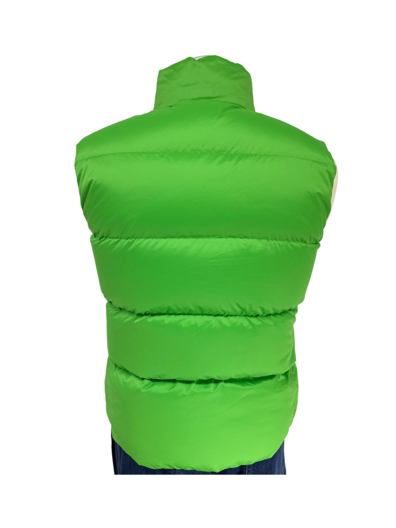 This pre-owned RLX Ralph Lauren puffer vest is perfect for staying warm and stylish. Crafted from durable polyester and nylon materials, this vest features a vibrant green color and a sleek design, suitable for layering. It's an XL size and ideal for fall and winter wear. This vest is a great find for anyone looking for a fashionable and functional outerwear piece at a fraction of the cost.