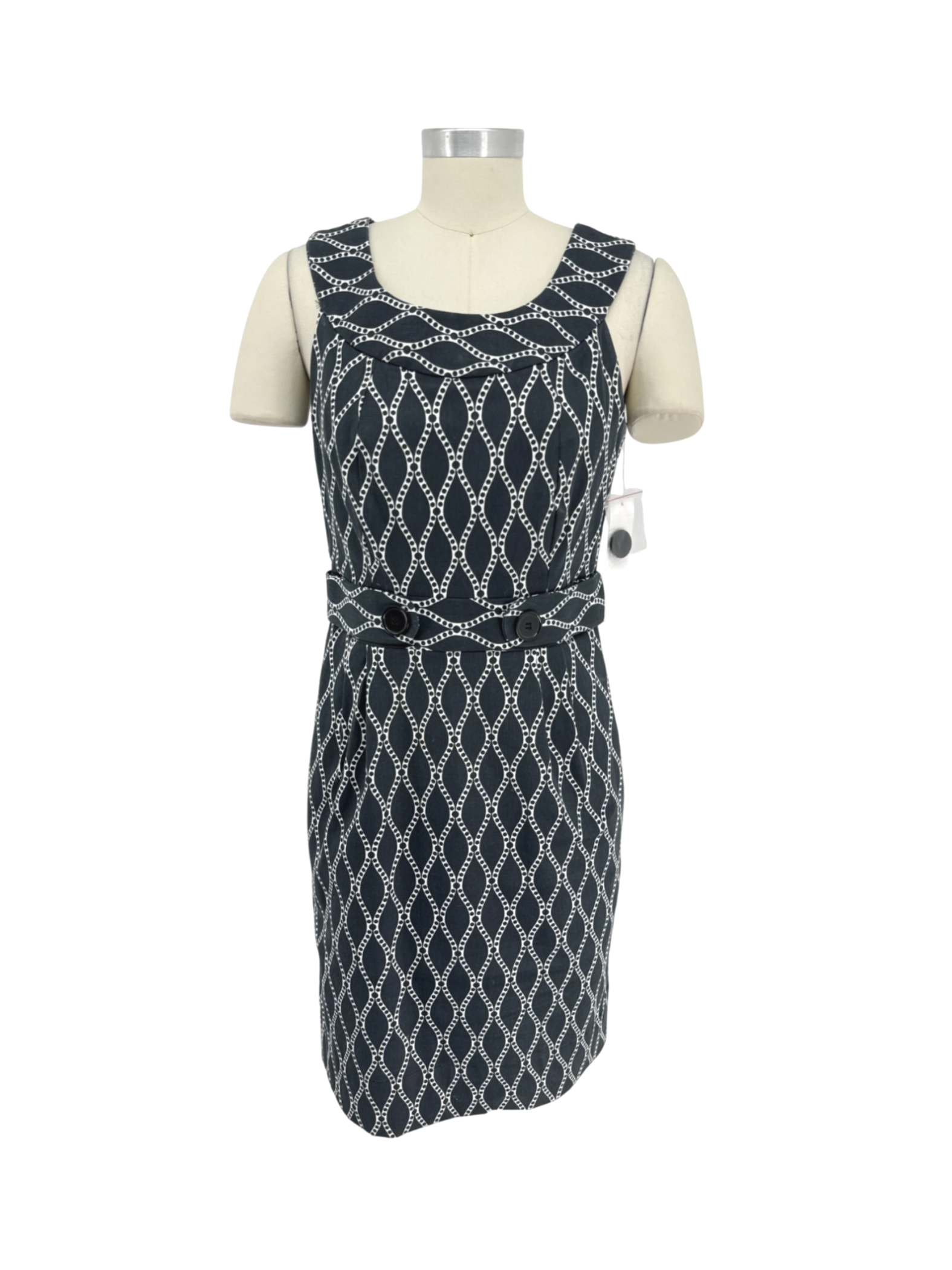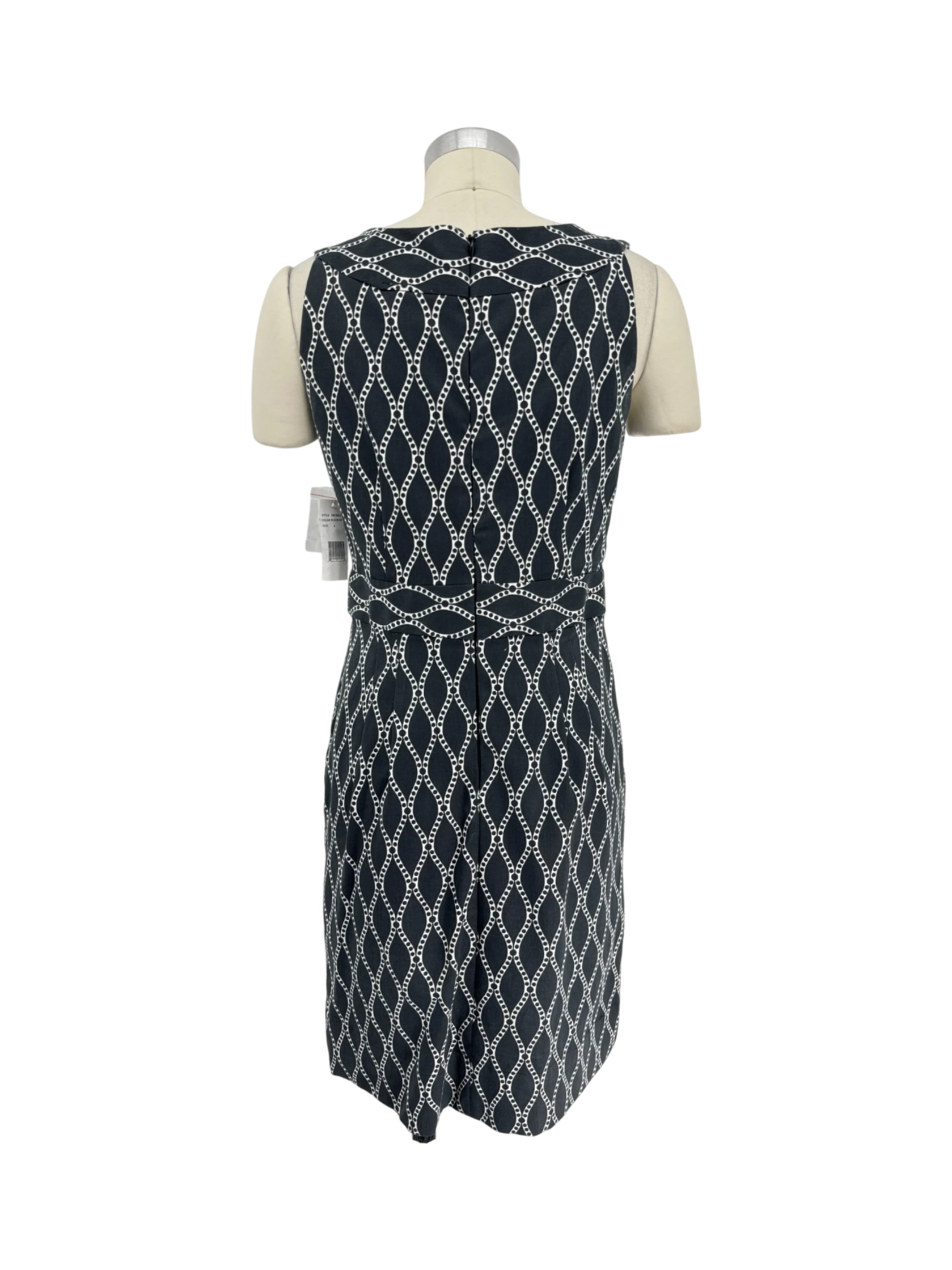 This Robbie Bee dress is a stylish and versatile addition to any wardrobe. This pre-owned dress features a classic sheath silhouette, a flattering round neckline, and a unique geometric pattern in black and white. Perfect for spring, summer, or fall, this dress is made from a comfortable cotton blend with spandex. Ideal for casual outings or semi-formal events, it's a timeless piece that offers both comfort and style. It's a great option for those who appreciate quality and value in fashion.