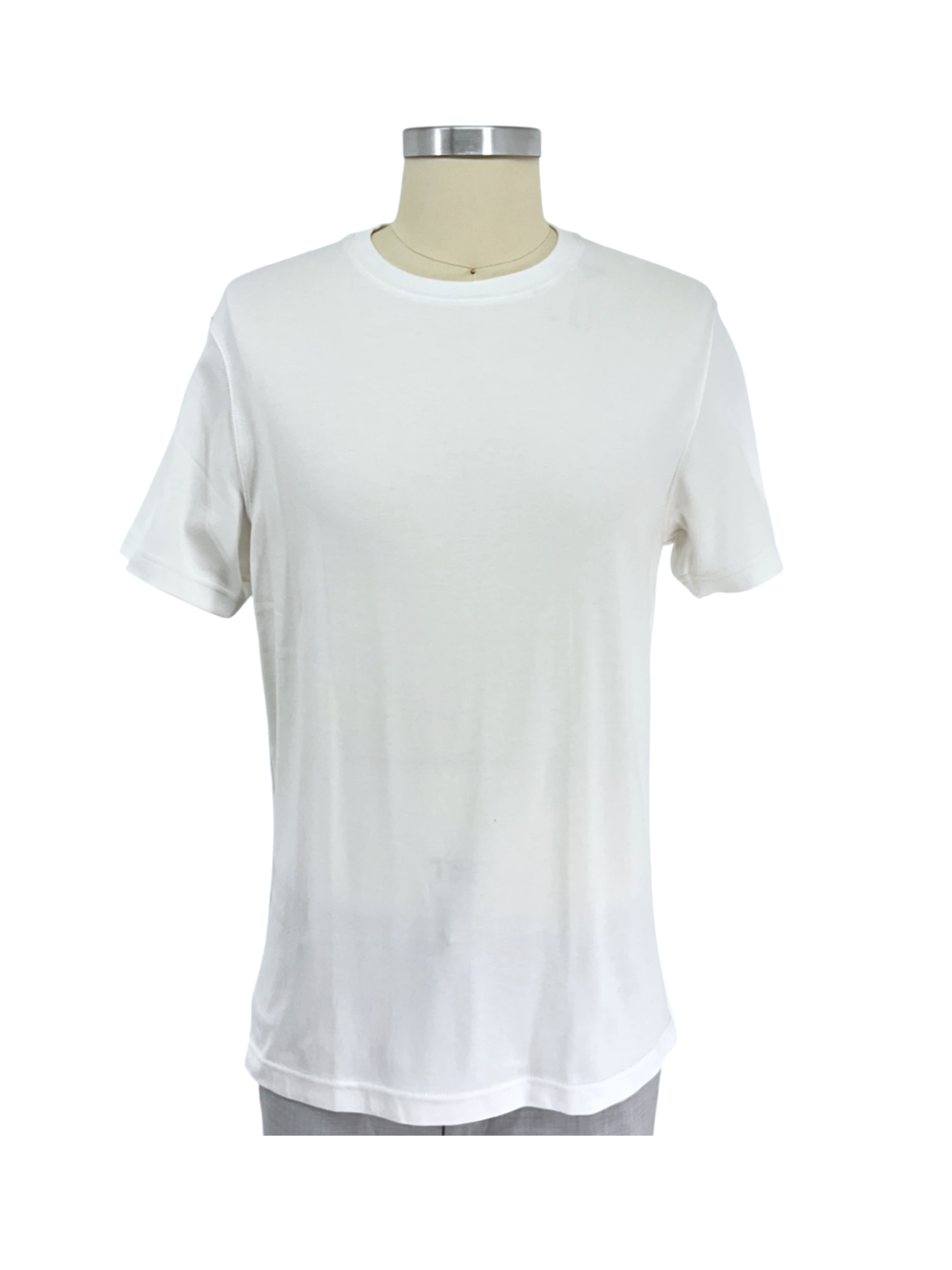 Short-sleeved white T-shirt for men with a round neck, size M.