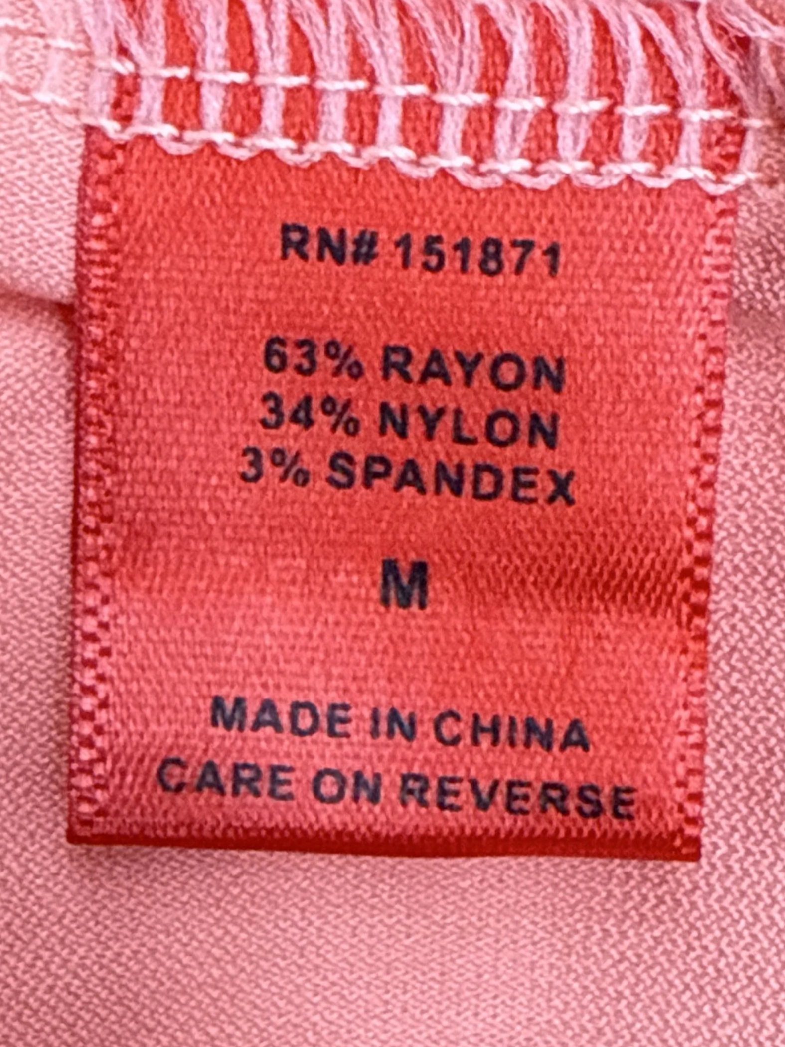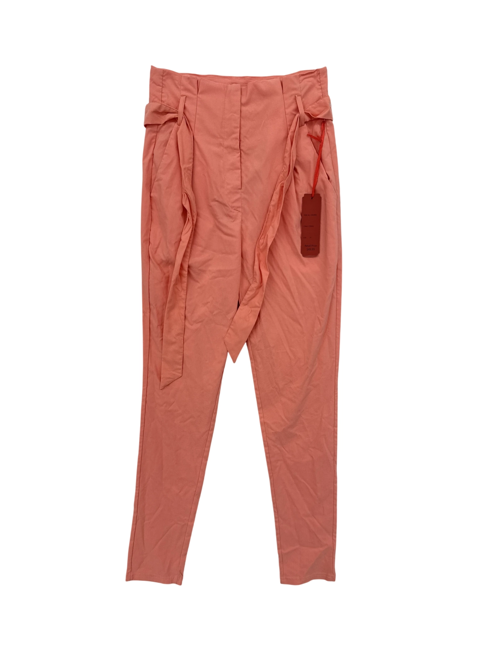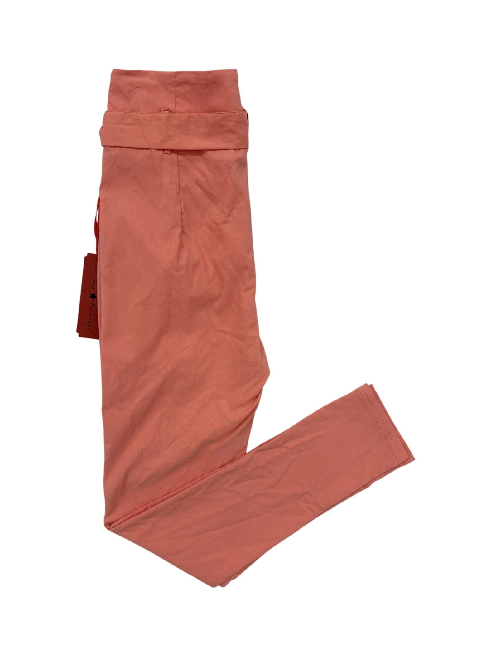Elevate your wardrobe with these stylish pre-owned Roma Concept paperbag pants. These pants feature a flattering high-waisted design with a tie belt, adding a touch of sophistication to any outfit. Made from a comfortable blend of rayon, nylon and spandex, these pants are perfect for warm weather, making them ideal for summer or spring. The peach color makes these versatile for both casual and dressed-up occasions. Pair with a blouse or a casual tee for a look.