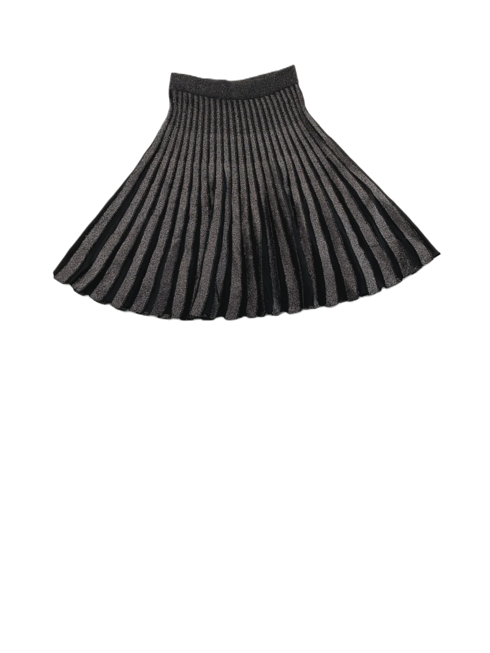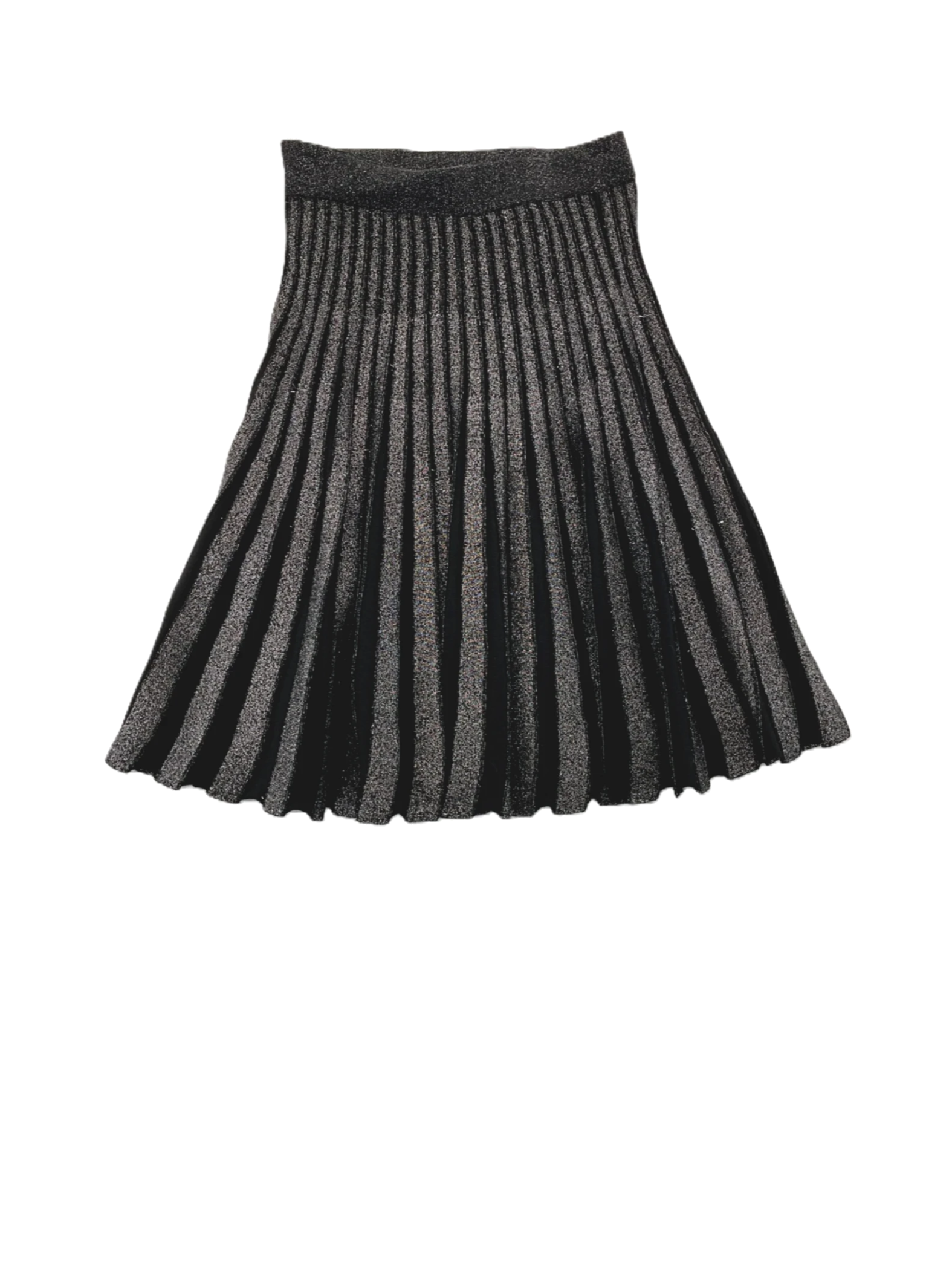 Women's mini glitter pleated skirt with an elastic waist in size Small.