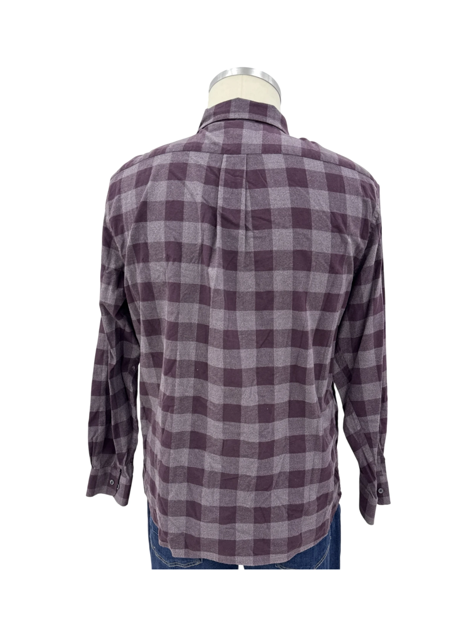 This ROWM long-sleeve shirt is a stylish addition to any wardrobe. Made from 100% cotton, it features a classic plaid pattern in a versatile color. The button-up closure and collared neckline offer a timeless look, perfect for casual or smart-casual occasions. The shirt is in excellent pre-owned condition, and ready to wear. Ideal for fall and winter wear. Get this pre-loved shirt and add a touch of sophistication to your look!