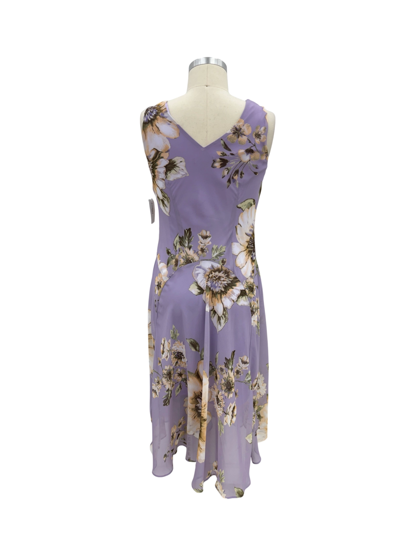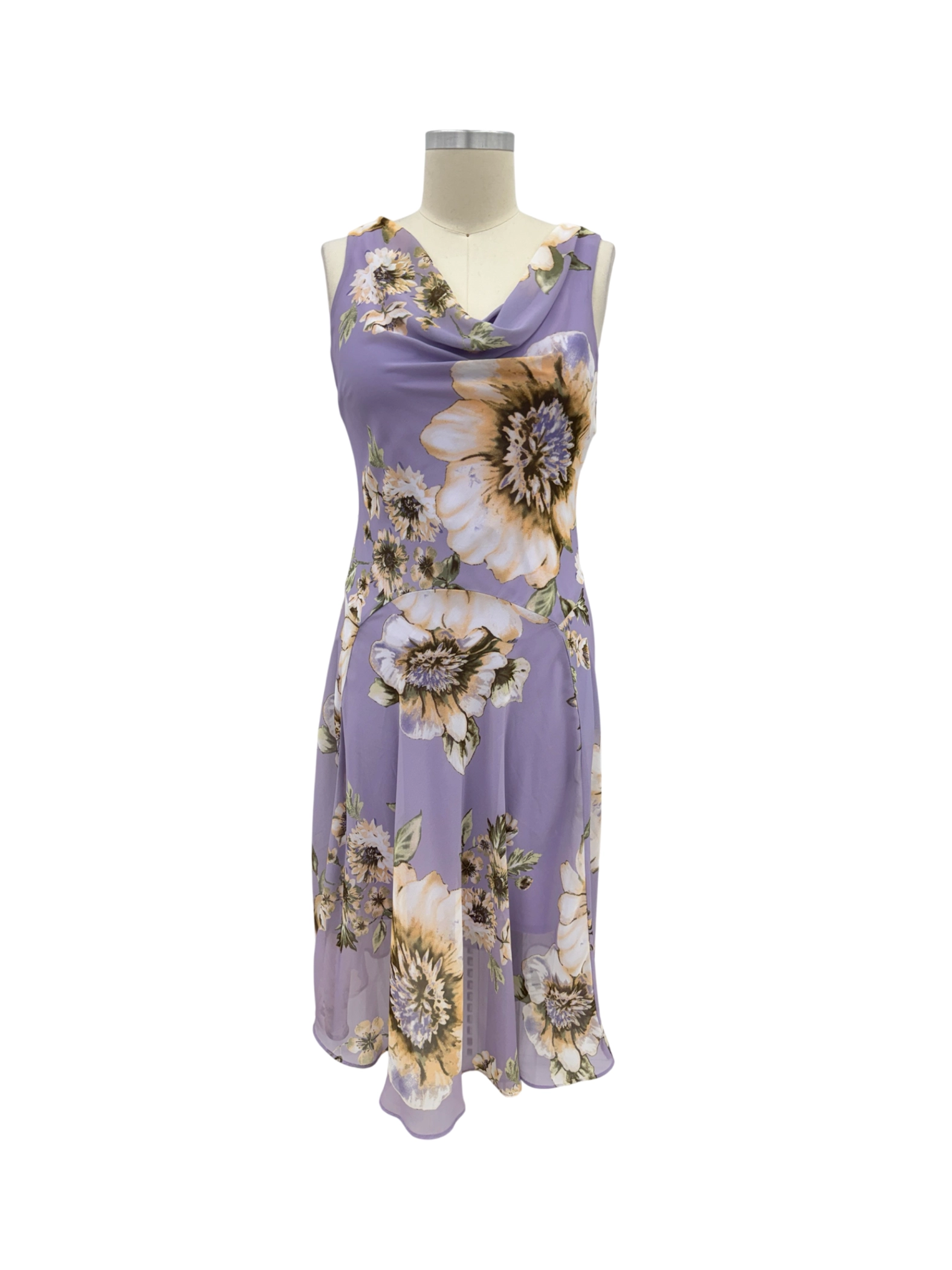 This beautiful pre-owned Roz & Ali dress features a vibrant floral print against a delicate purple backdrop, perfect for warm weather occasions. The A-line silhouette is flattering and comfortable, ideal for a casual day out or a special event. Crafted from a lightweight polyester fabric, it offers a soft and airy feel. This dress is a stylish addition to any wardrobe, offering both elegance and comfort.