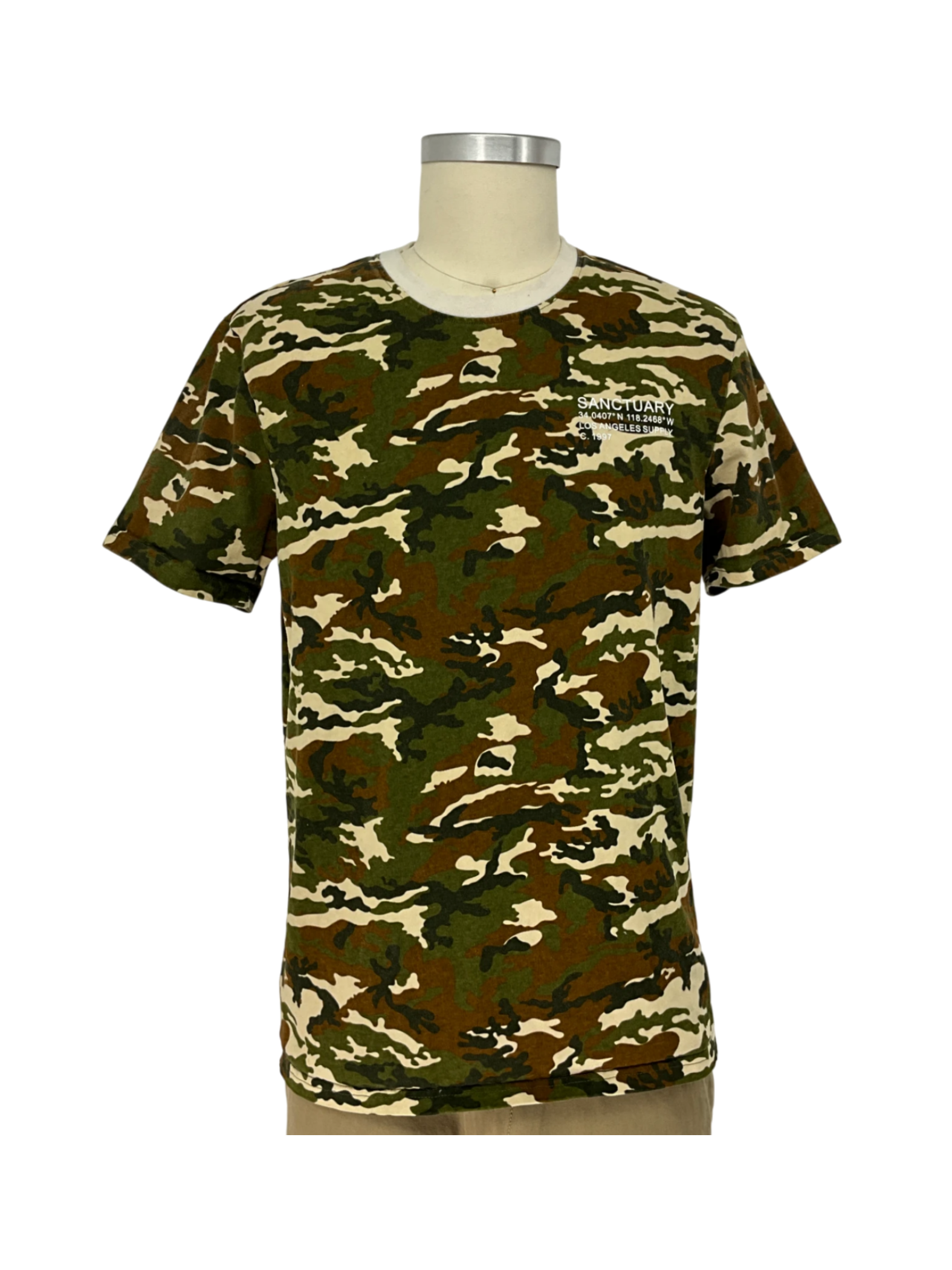 Sanctuary t-shirt for men with short sleeves, round neck, camouflage pattern, size M.