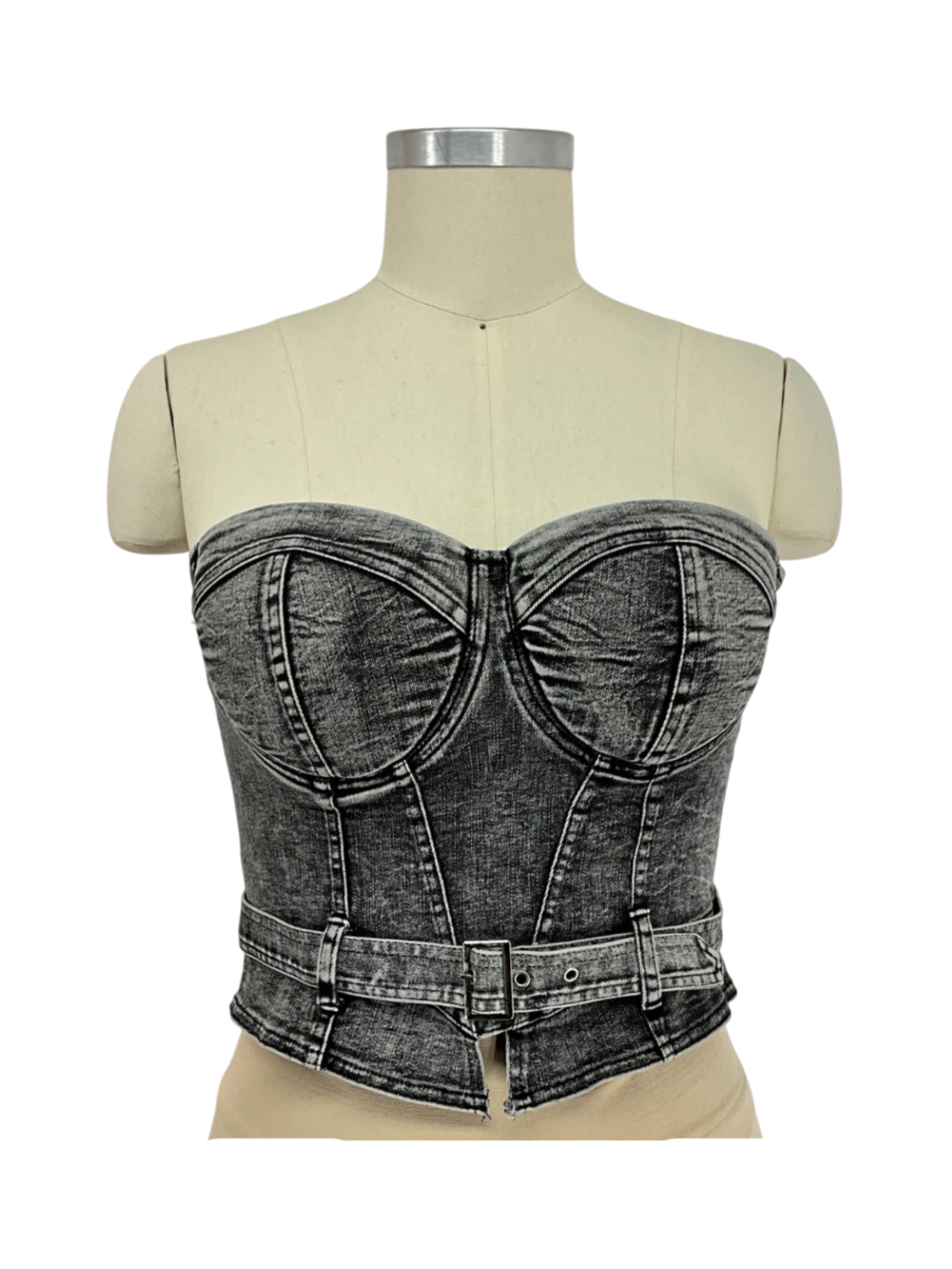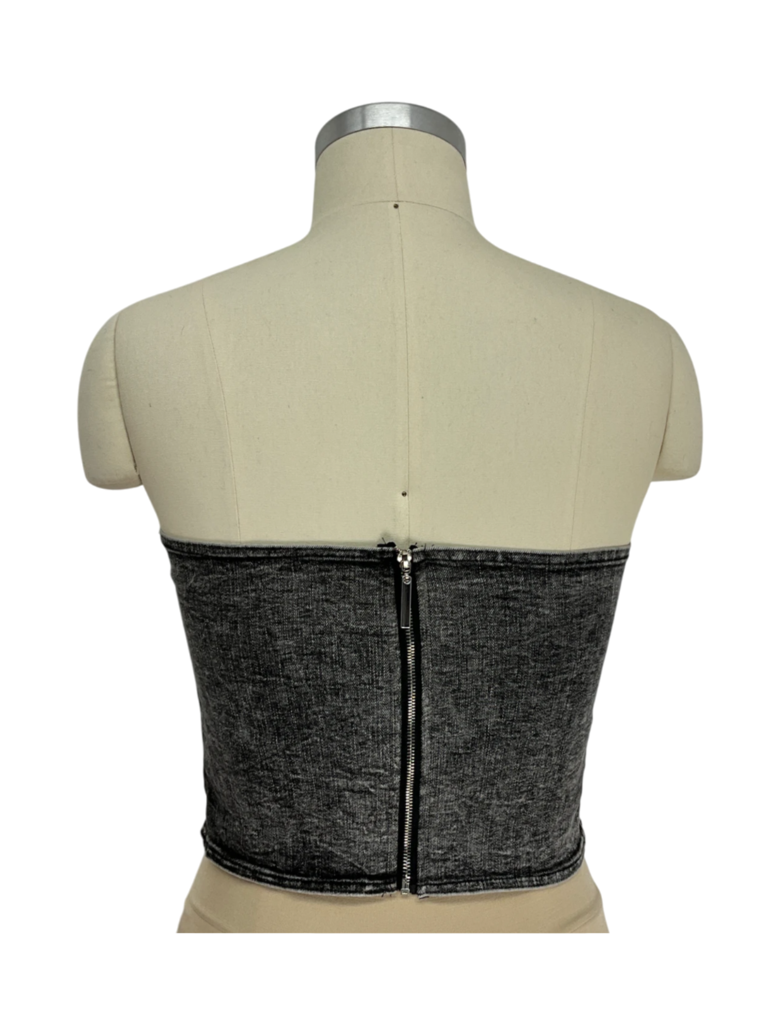 Black crop top jeans for women, size XL, with a back zipper closure.