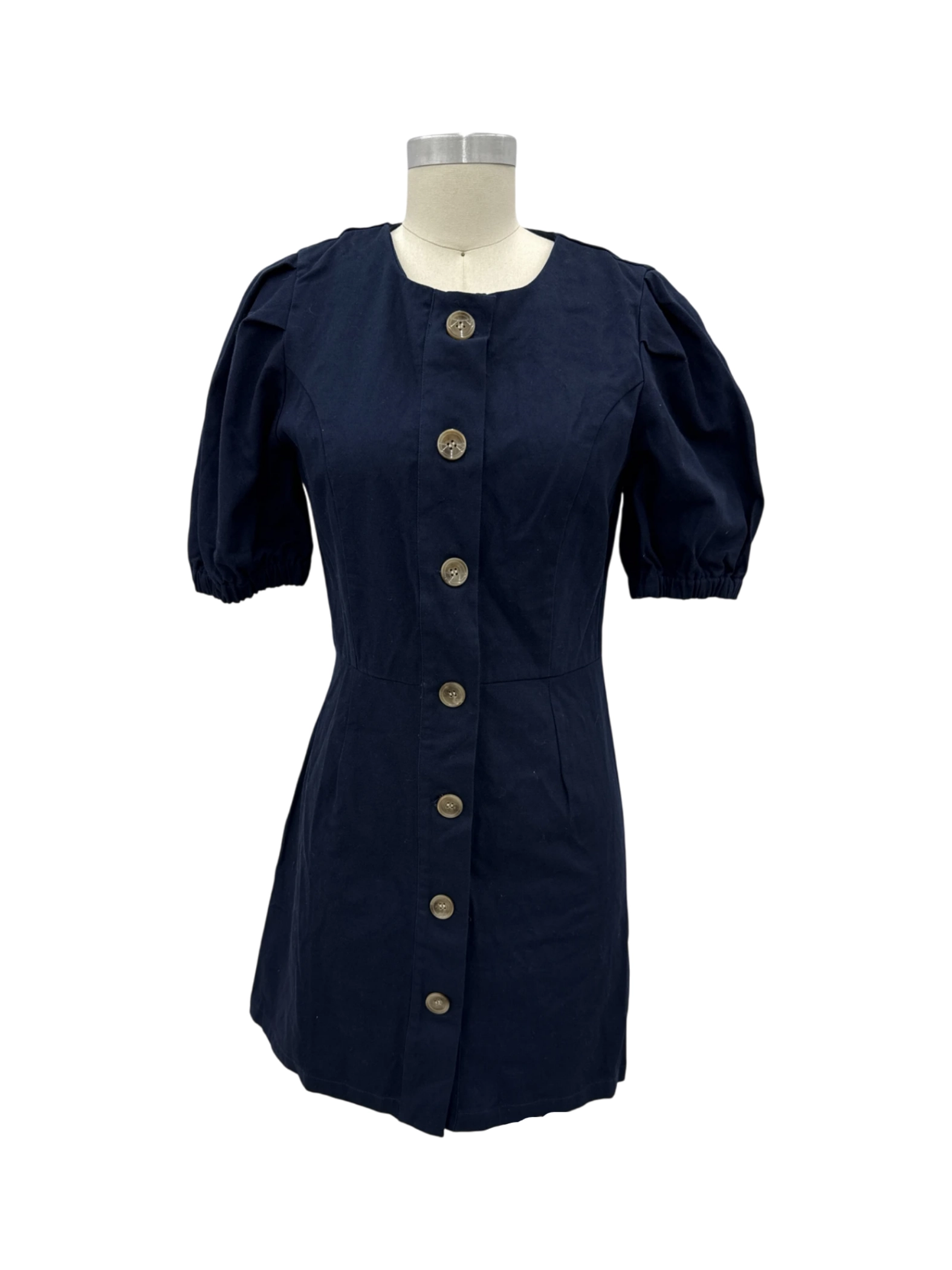 This stylish sensemill dress is a perfect addition to your wardrobe. Crafted from 100% cotton, this mini dress features a flattering A-line silhouette, short puff sleeves, and a classic round neckline. The button-down front adds a touch of sophistication, making it suitable for casual outings. Its versatile design makes it ideal for the summer and spring seasons. A must-have for the fashion-forward individual.