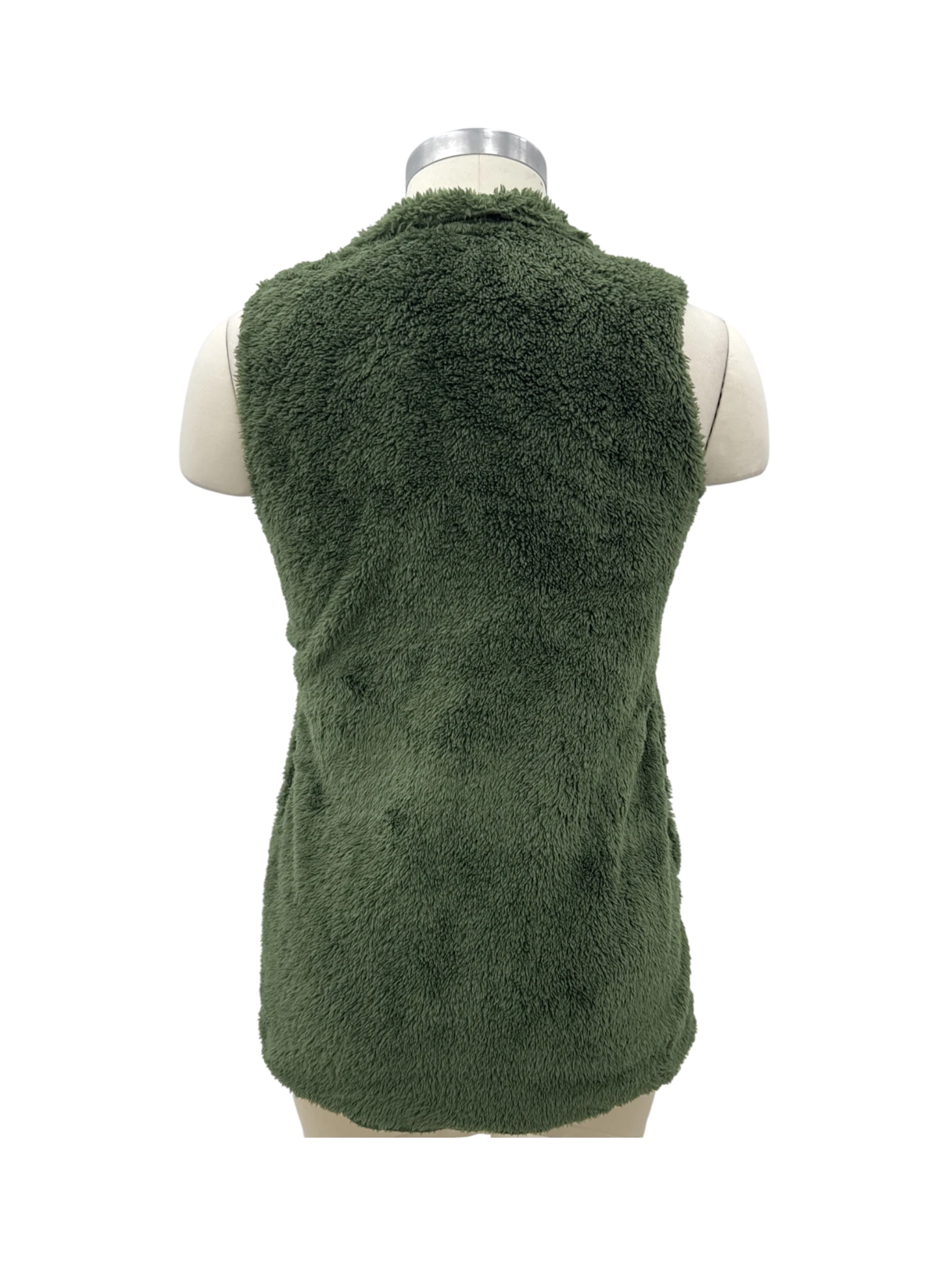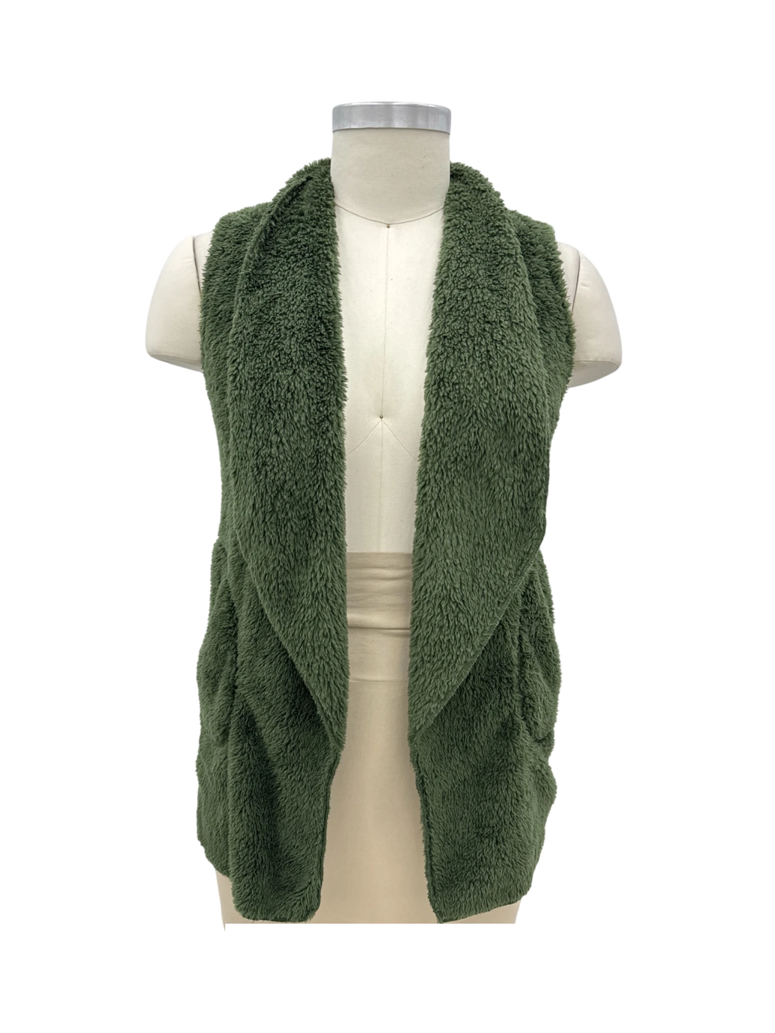This pre-owned SERRA vest is the perfect cozy addition to your fall and winter wardrobe. Made from soft polyester, this vest offers both style and warmth. It features a versatile open front design and a relaxed fit, making it ideal for layering over your favorite outfits. The deep green hue adds a touch of sophistication, and the cozy texture will keep you comfortable all day long. A stylish and practical outerwear piece.