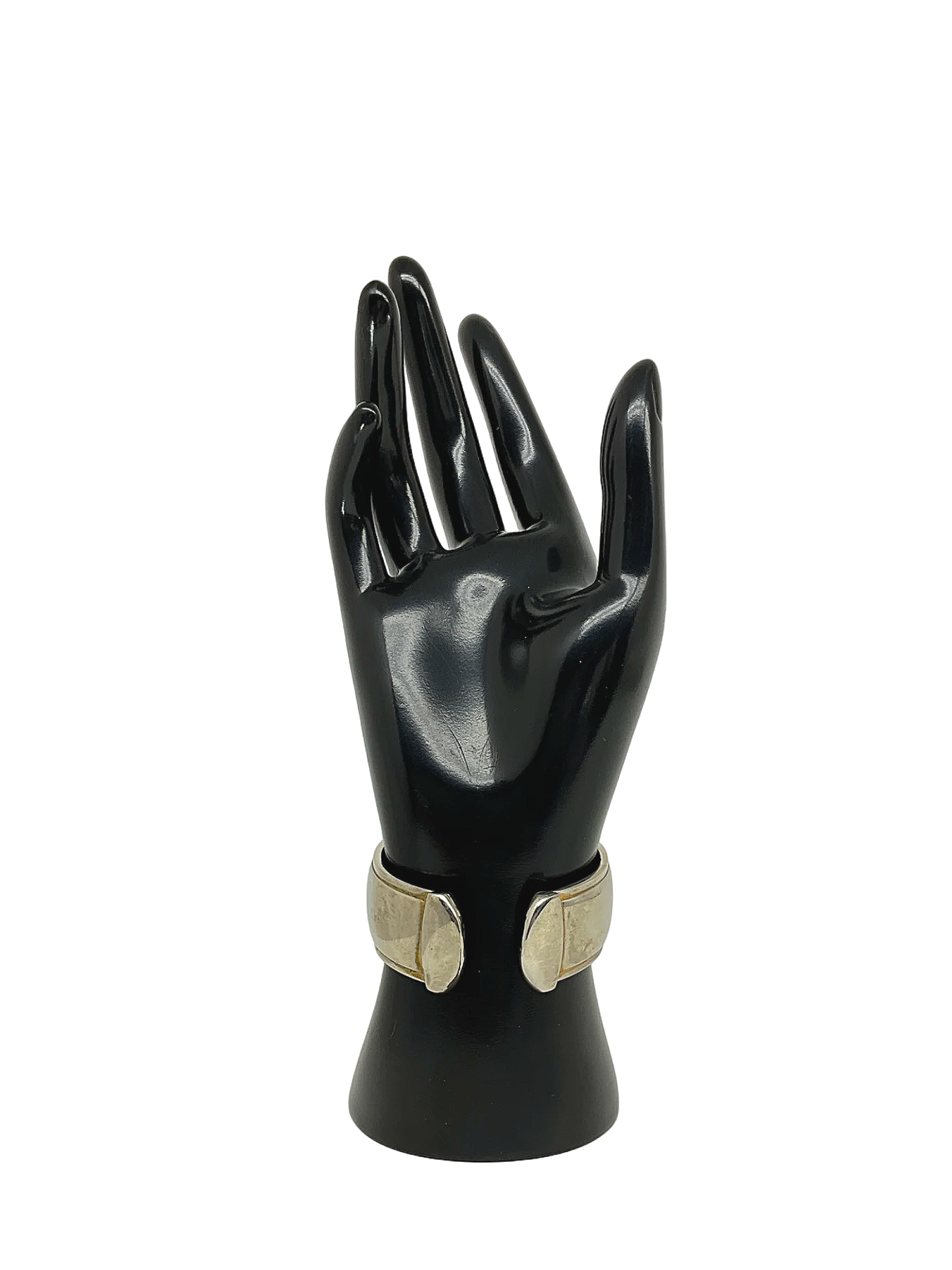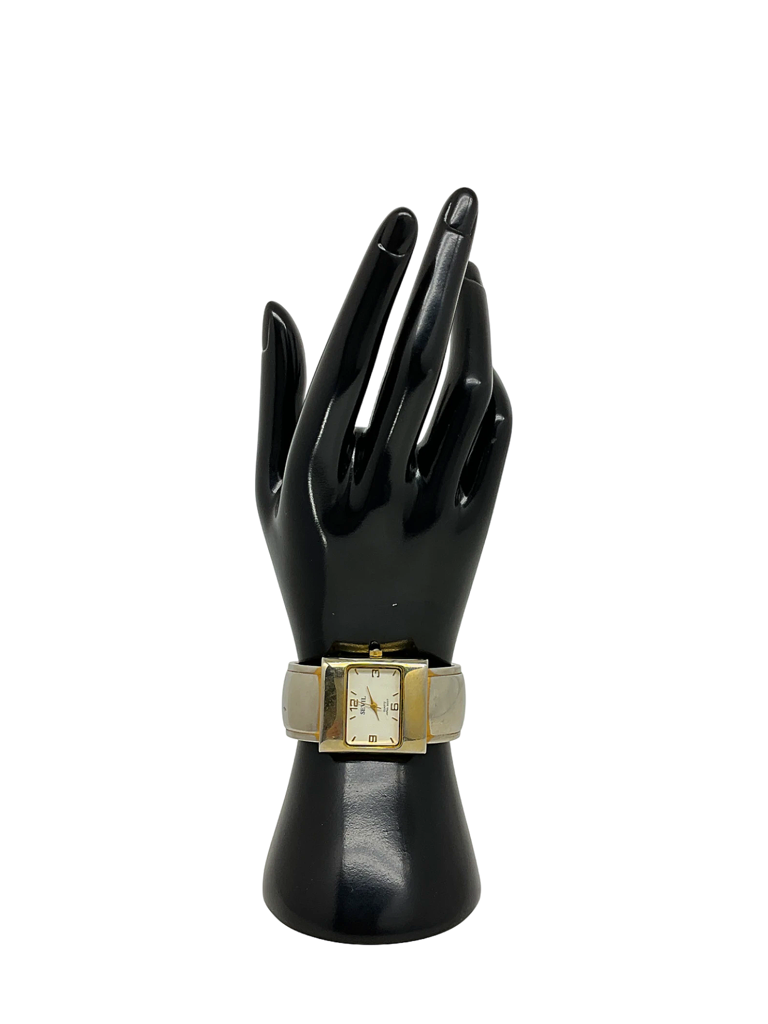 Sevil Women's Wristwatch Silver Tone Cuff Band Rectangular white Face.