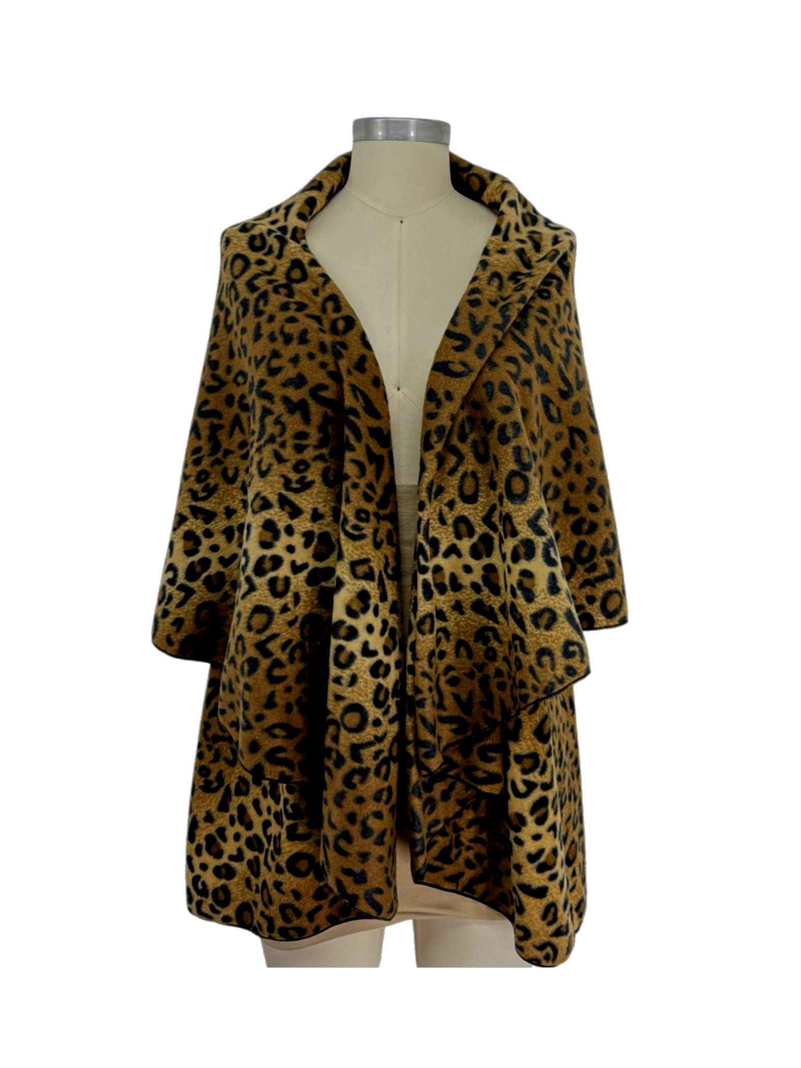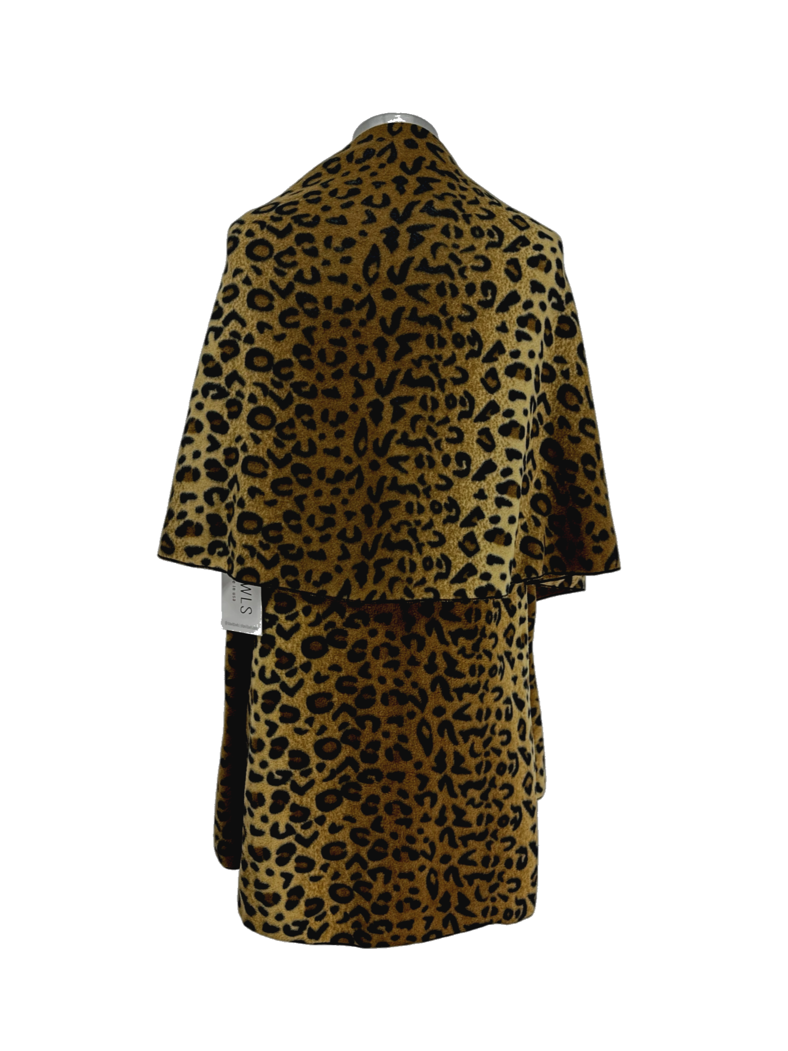 This stunning pre-owned SHAUL DAWLS vest is the perfect statement piece for your wardrobe. Featuring a bold leopard print, this cozy, one-size-fits-all vest is made from soft acrylic, providing warmth and style. The unique design includes ¾ sleeves, making it versatile for layering during the fall and winter seasons. Made in the USA, this vest is both fashionable and practical. Elevate your look with this eye-catching outerwear.