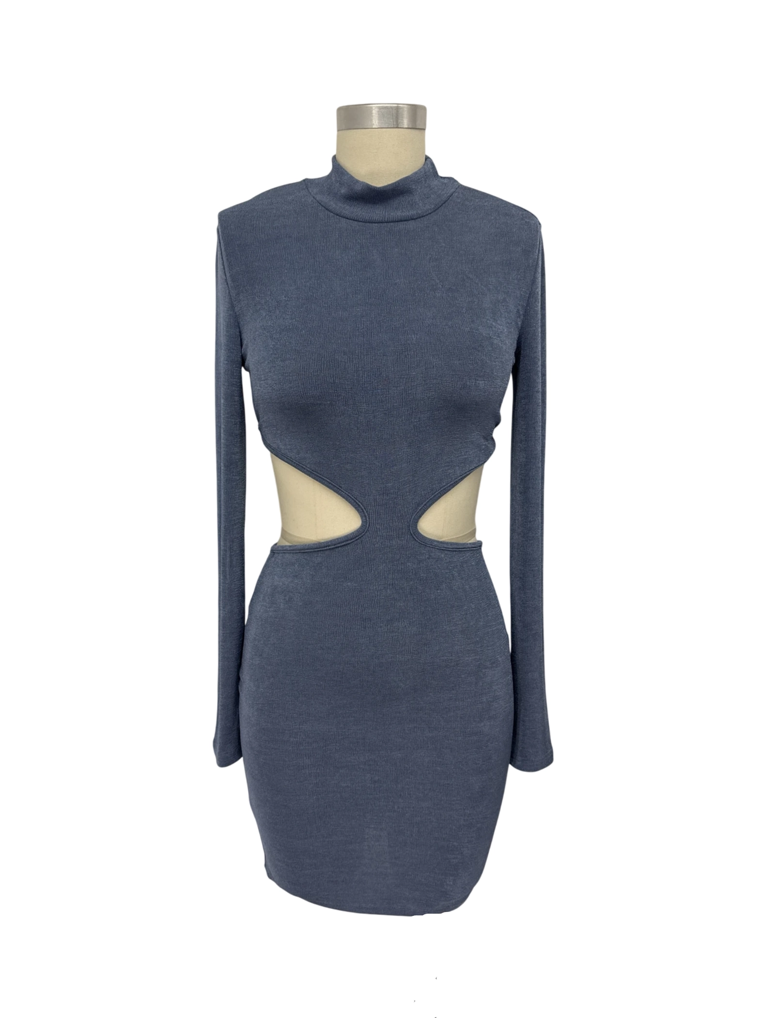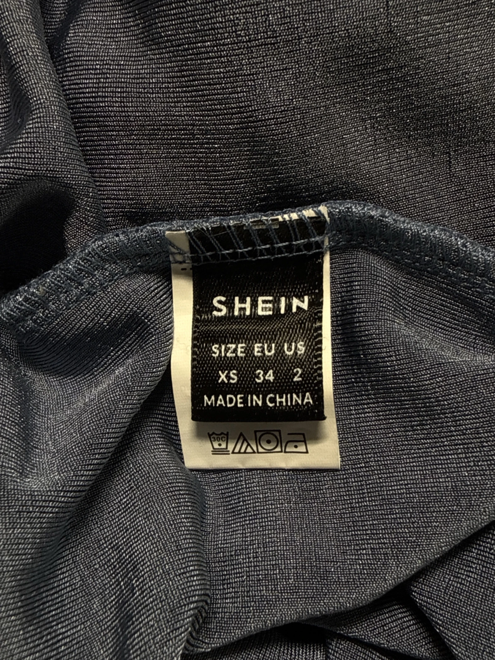 This pre-owned SHEIN dress is a stylish bodycon piece perfect for a night out. The mini dress features a unique cutout design and long sleeves, offering a balance of coverage and allure. Crafted from a blend of polyester and spandex, it provides a comfortable and flattering fit. Its deep blue color and flattering silhouette make it an ideal choice for cocktail parties or any special occasion. This trendy dress is a must-have addition to any fashion-forward wardrobe.