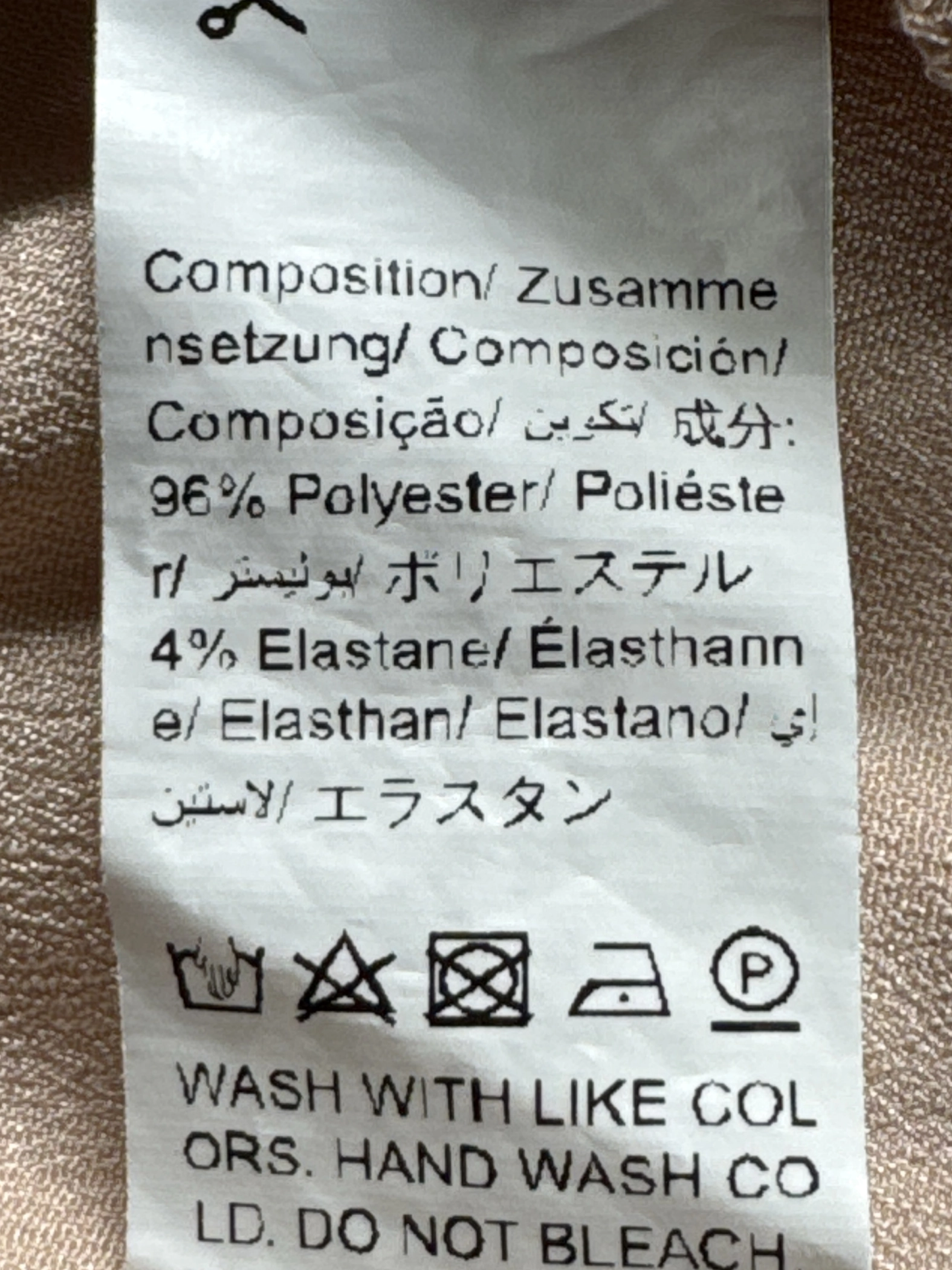 Elevate your wardrobe with this pre-owned SHEIN beige cropped blouse. Crafted from a luxurious blend of polyester and spandex, this top offers a flattering silhouette with its cropped length. The V-neckline and short sleeves add a touch of elegance, while the tie-front detail enhances its chic appeal. Perfect for warm weather, this versatile blouse pairs well with high-waisted skirts or jeans. Embrace sustainable fashion with this stylish and affordable piece.