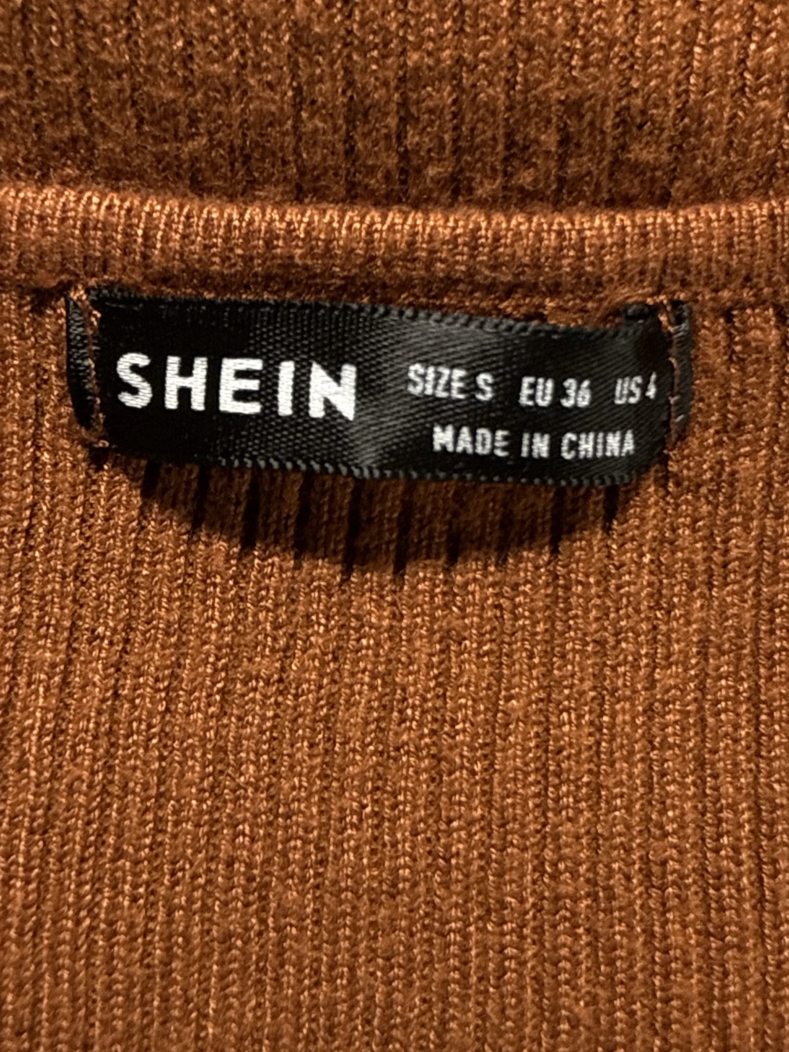 Elevate your summer wardrobe with this stylish pre-owned SHEIN halter crop top. Featuring a chic brown color, ribbed texture, and a flattering cropped silhouette, this top is perfect for warm weather. Made from 100% acrylic, it offers comfort and style for any casual or dressy occasion. This top is easy to pair with skirts or pants and is great for a day or night out.