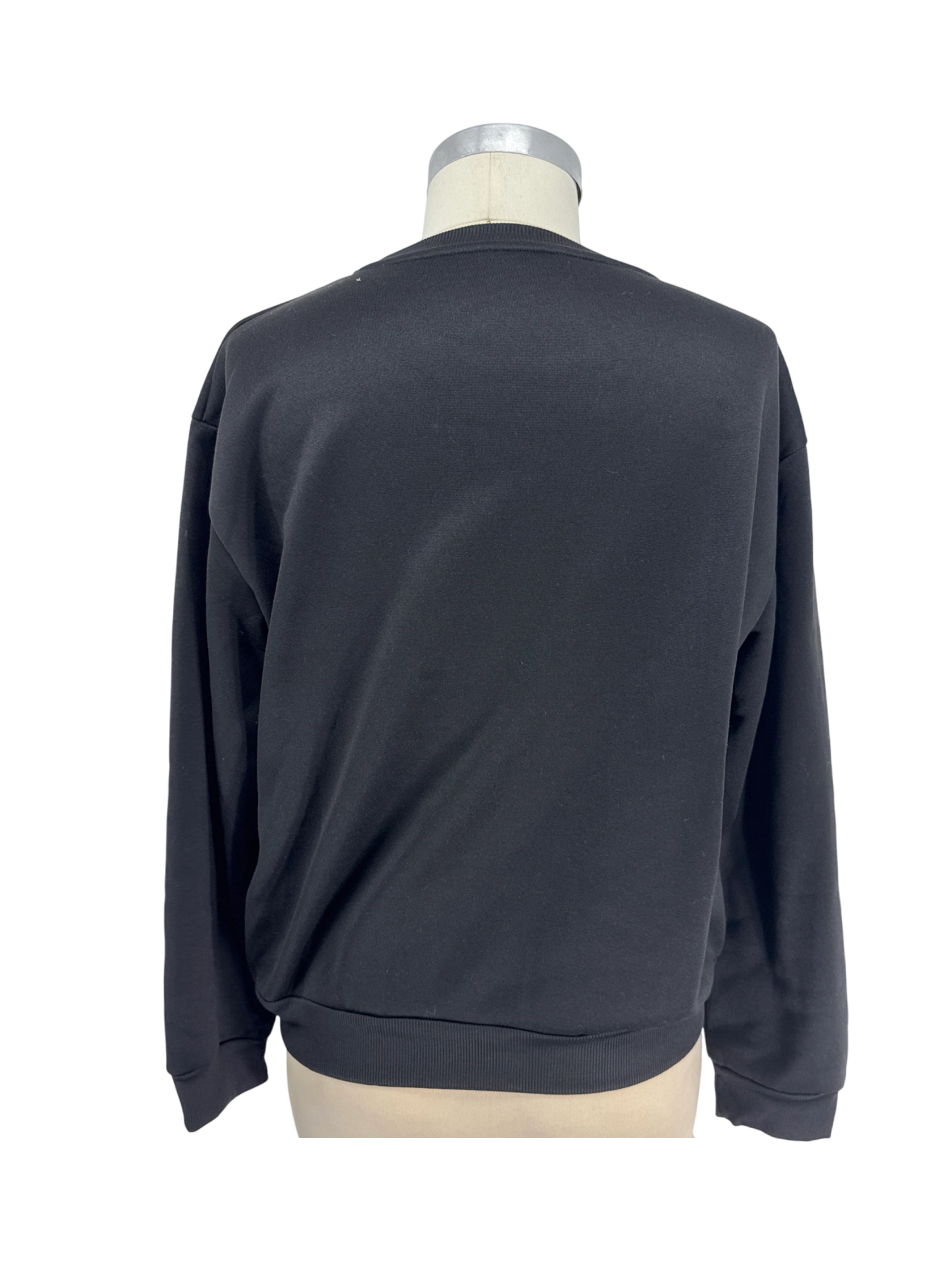 Elevate your casual wardrobe with this pre-owned SHEIN black sweater. Crafted from soft polyester, this sweater offers a comfortable fit and versatile style. Featuring a classic round neck and a relaxed silhouette, it's perfect for layering on cooler days. The minimalist design makes it easy to pair with jeans, skirts, or leggings. This cozy sweater is a great addition to any closet. Get a great price on this gently used sweater!