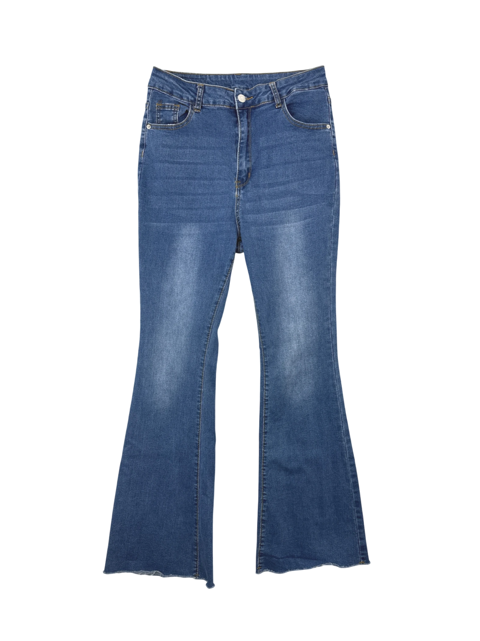 Elevate your denim game with these stylish pre-owned SHEIN flared jeans. These jeans are a must-have addition to your wardrobe. They are designed with a flattering silhouette and a comfortable fit. Made from a durable blend of polyester, cotton and elastane, offering both style and durability. Perfect for everyday wear or dressing up for a night out. With a medium wash and a high waist, these jeans will quickly become your go-to pair. - Elevate your denim game with these stylish SHEIN Flare Jeans. Featuring a classic blue denim wash, these jeans boast a flattering flared leg cut and a comfortable mid-rise waist. Crafted from a durable blend of cotton, polyester, and elastane, they offer both style and stretch. Perfect for any season, these pre-owned jeans are in excellent condition and ready to be a versatile addition to your wardrobe. Perfect for everyday wear.