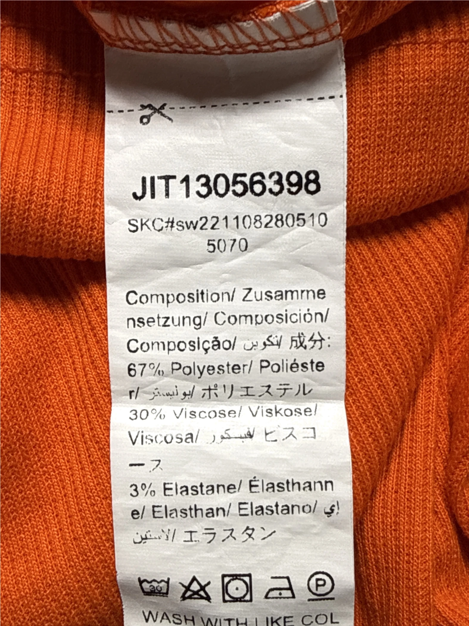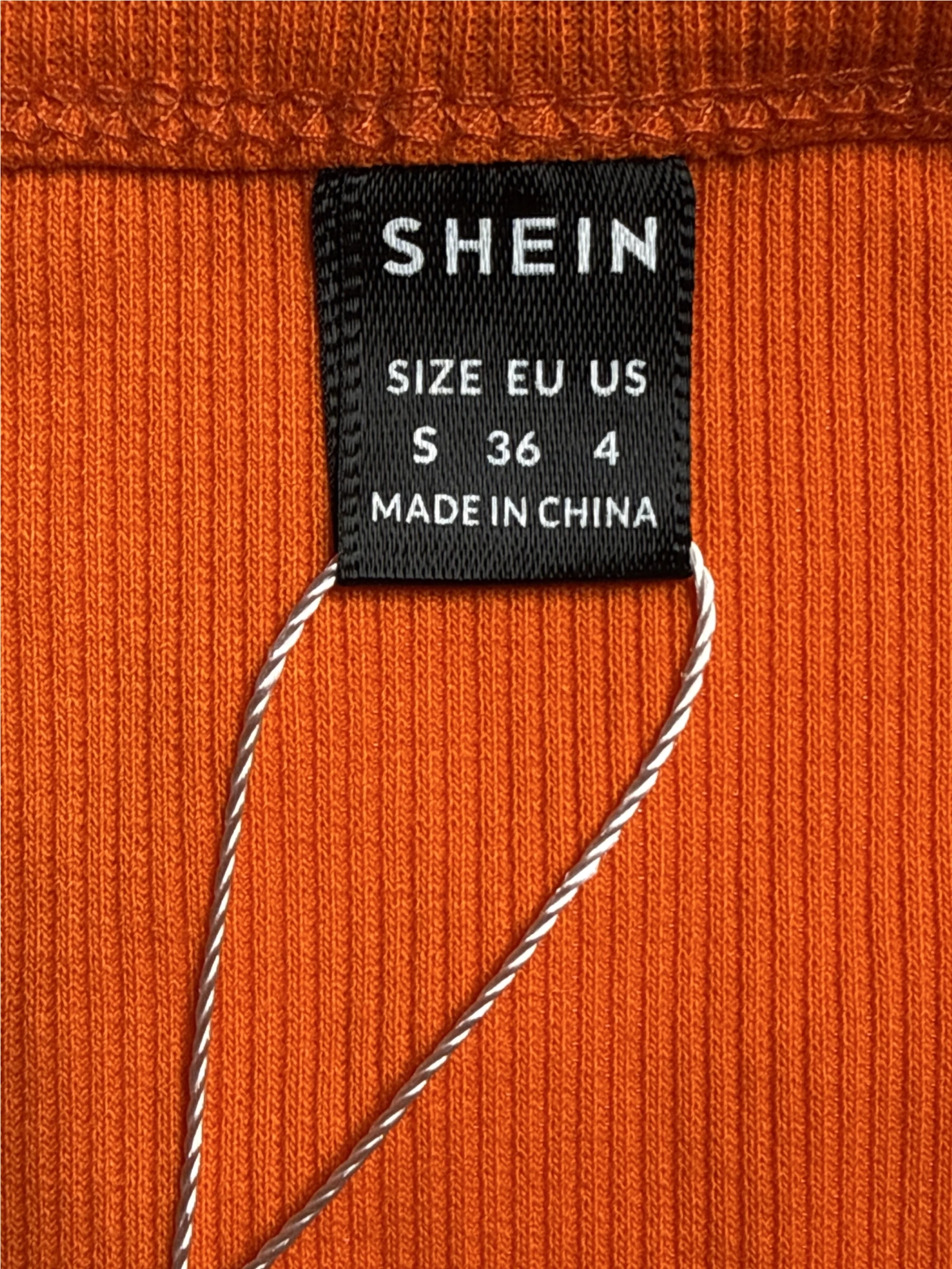 This vibrant, pre-owned SHEIN crop top is the perfect addition to your wardrobe! Featuring a bold orange color, ribbed texture, and a flattering fit, this top is designed for style and comfort. It boasts long sleeves and a modern cropped silhouette. Made with a blend of polyester, viscose, and elastane, this top offers a comfortable and stretchy feel. Ideal for layering or wearing on its own, this top is a must-have for any fashion-forward individual.