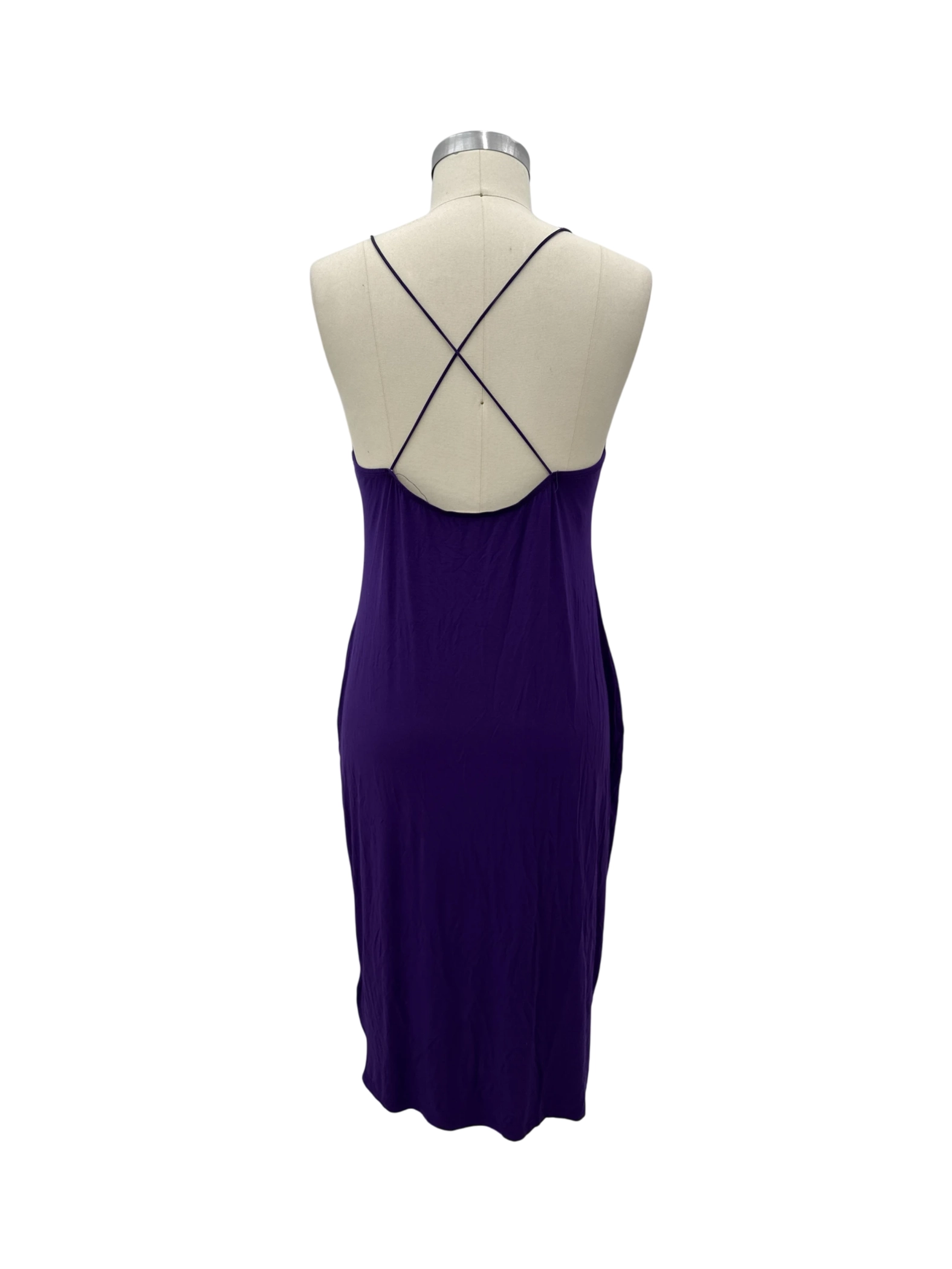 This pre-owned SHEIN Curve dress is the perfect addition to your wardrobe. Made from a comfortable Viscose blend, this bodycon midi dress in a vibrant purple hue is ideal for summer. Featuring a flattering scoop neck and spaghetti straps, it's a versatile piece for casual outings. It has a figure-hugging design and is easy to care for, ensuring both style and comfort.