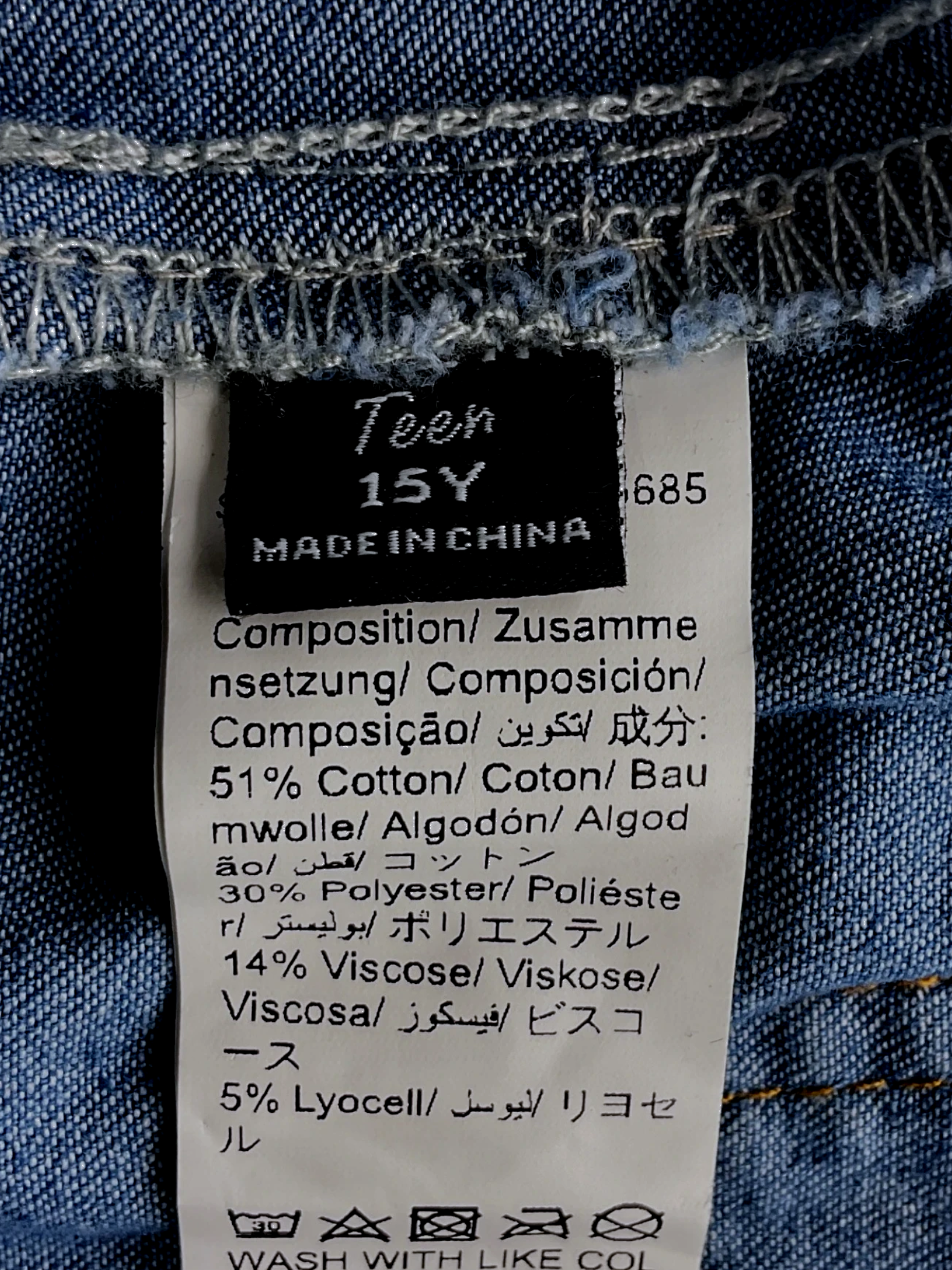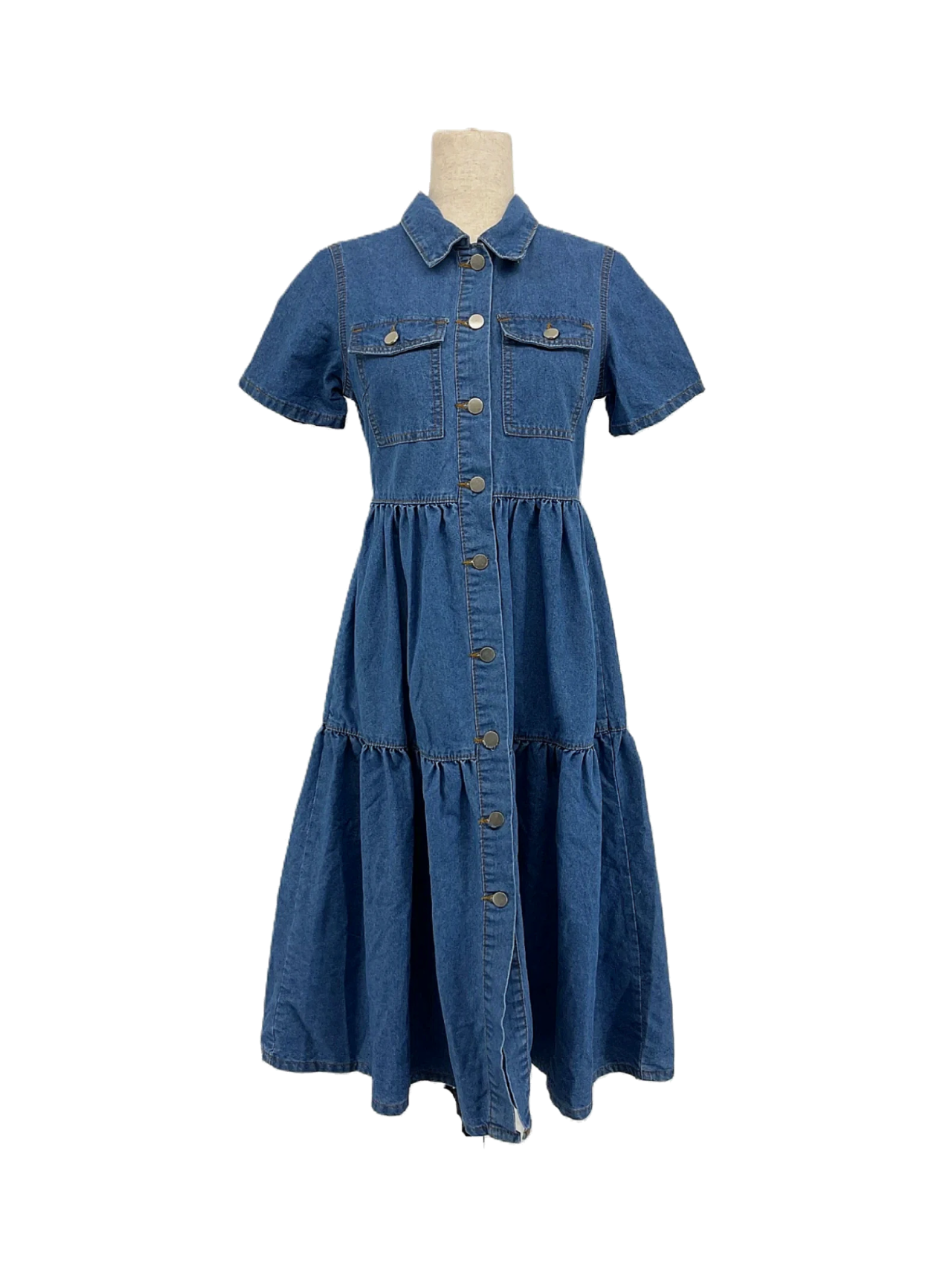 Teen Girl Elegant Casual Denim Dress In Dark Blue.