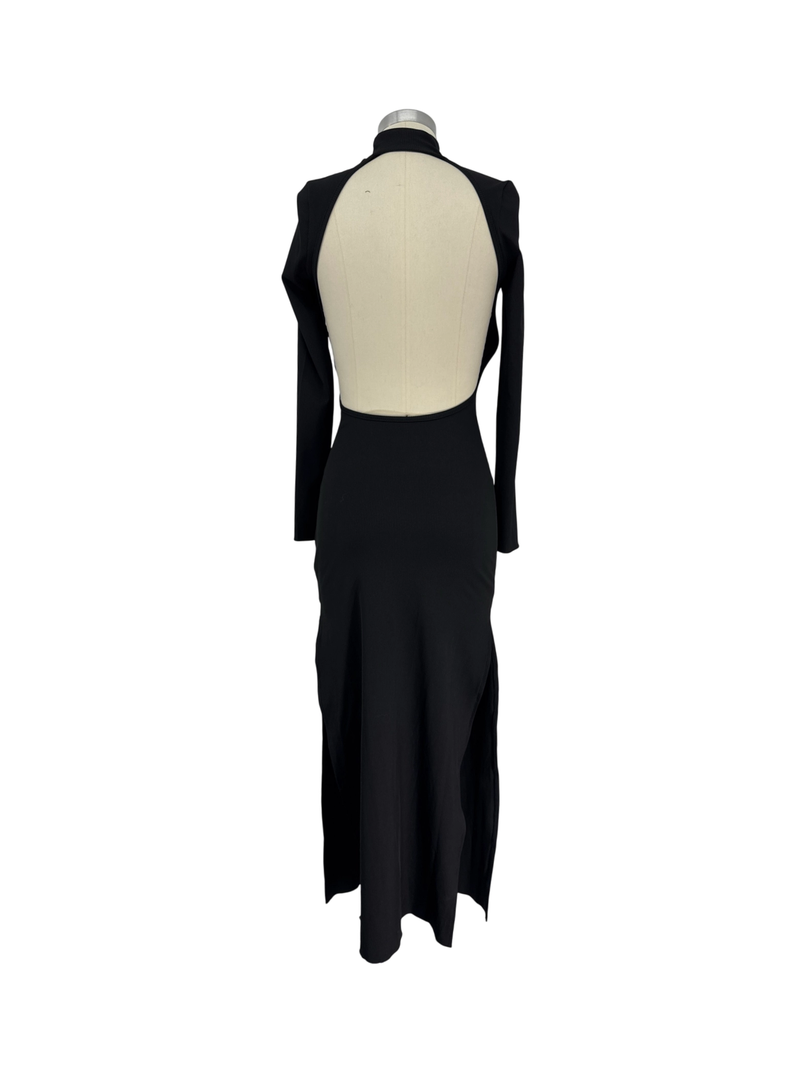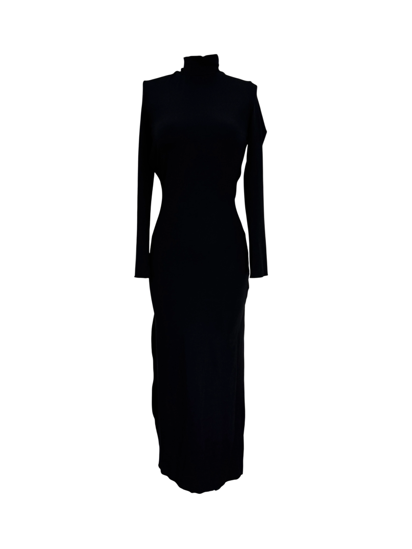 This SHEINBAE black maxi dress is a chic and versatile addition to any wardrobe. Featuring a sleek bodycon silhouette, long sleeves, and a sophisticated turtleneck, this dress exudes elegance. Perfect for a night out or a special occasion, the dress's maxi length adds a touch of drama while the quality material ensures both comfort and style. This pre-owned dress offers a premium feel, making it a timeless piece for your collection.