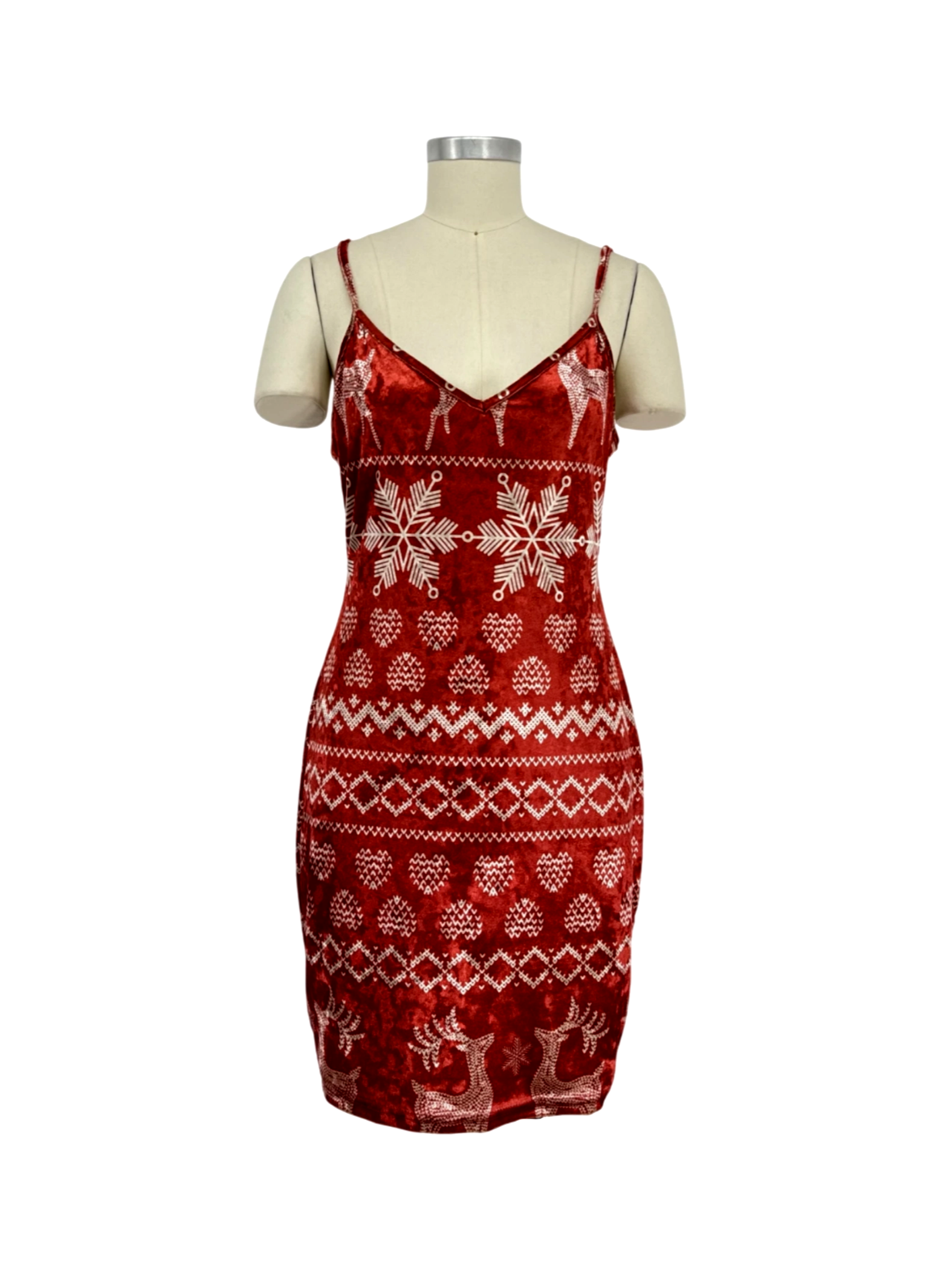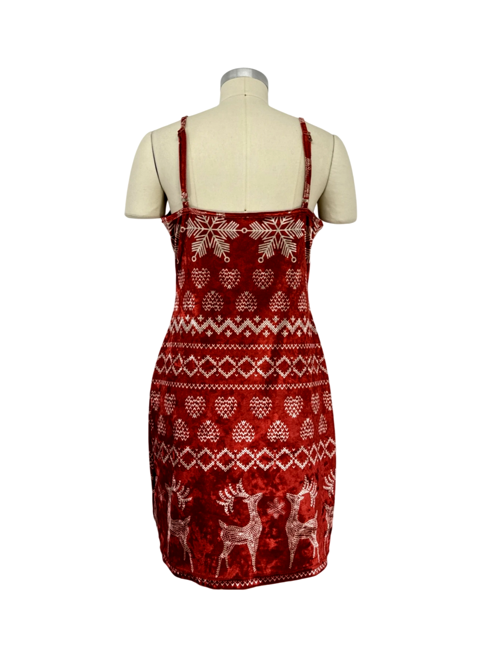 This pre-owned SHEINSXY Christmas dress is a festive and stylish choice. It features a bodycon silhouette, a flattering V-neck, and delicate spaghetti straps. The dress is adorned with a charming Christmas pattern that adds a touch of holiday cheer, making it perfect for Christmas celebrations. The dress is made of polyester and elastane. This mini-length dress offers a comfortable fit and is perfect for various Christmas events.