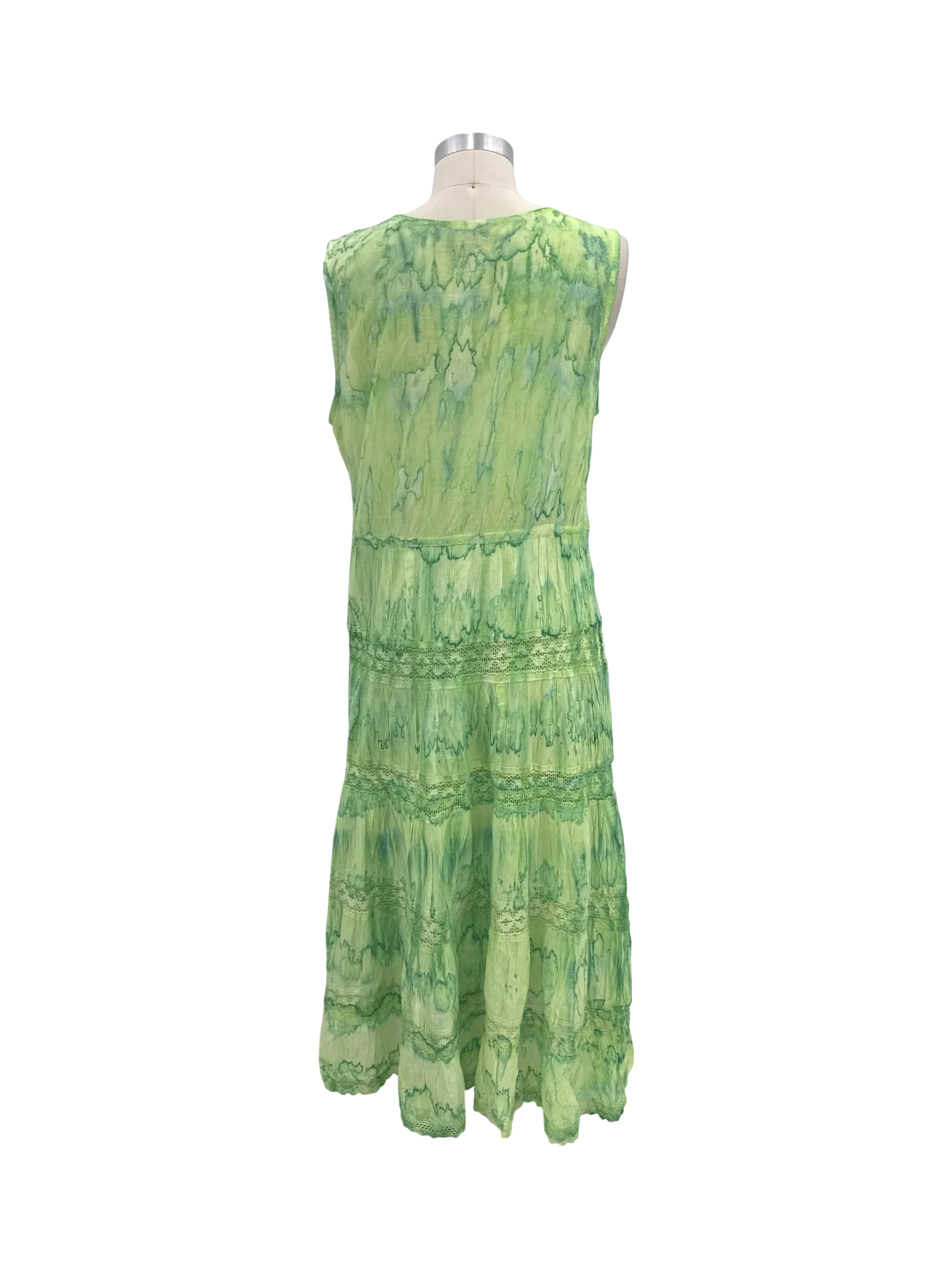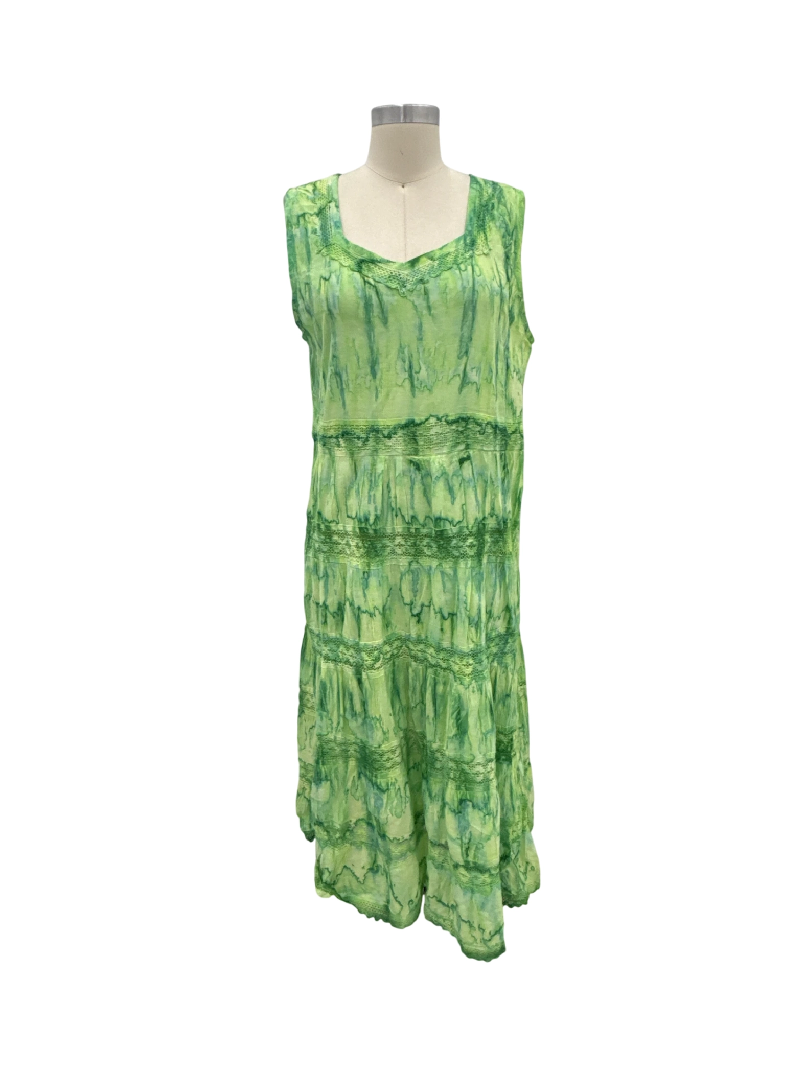 Embrace effortless style with this pre-owned Shore Drive A-line maxi dress. This vibrant dress features a green floral pattern, perfect for warm weather. Crafted from lightweight 100% cotton, it offers a comfortable fit. The sleeveless design and round neck make it ideal for casual outings or layering. In excellent condition, this dress is a sustainable and chic addition to any wardrobe.