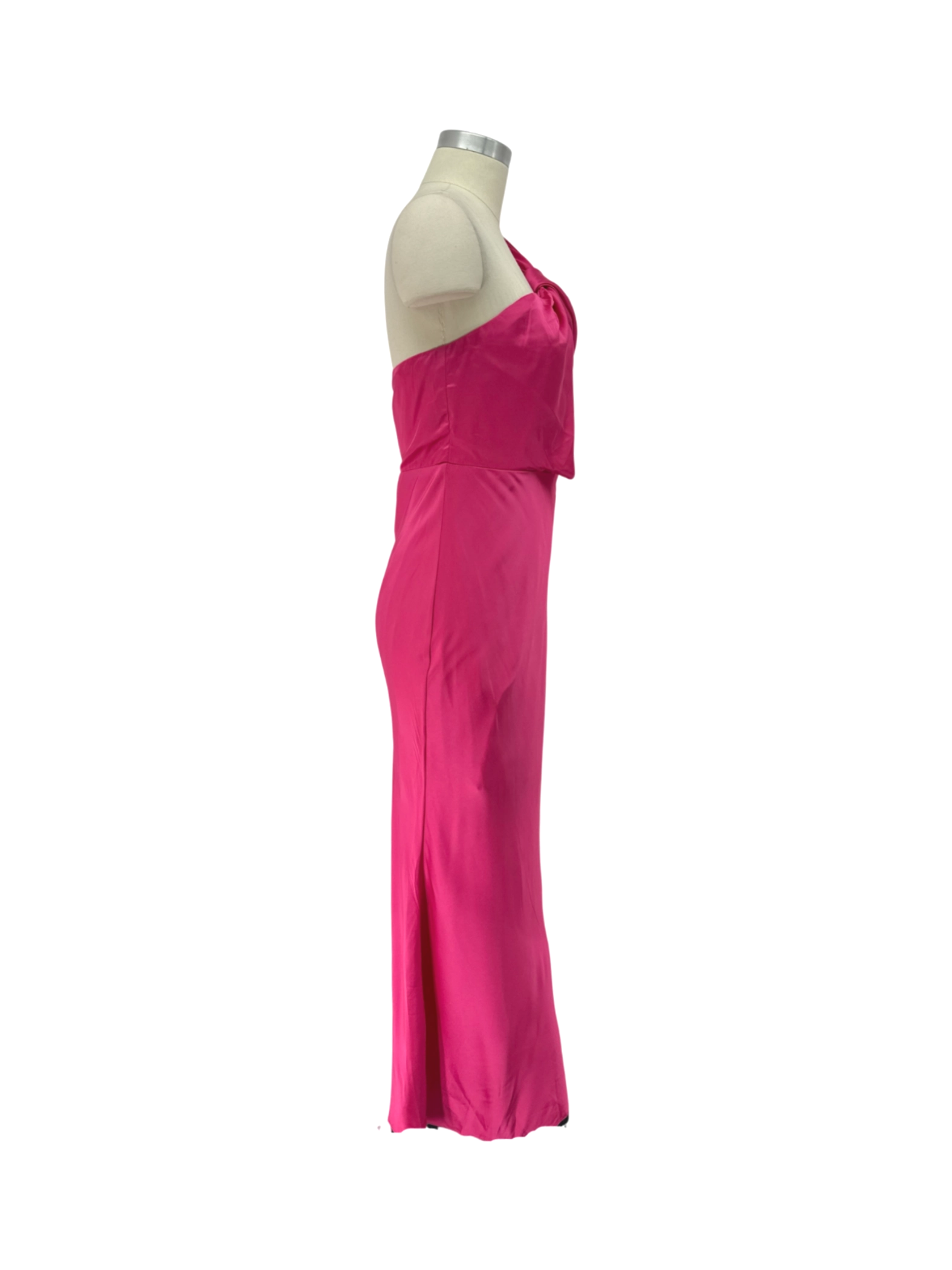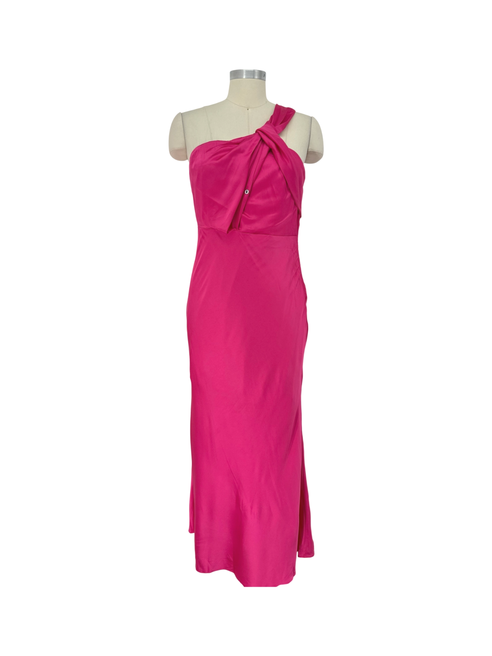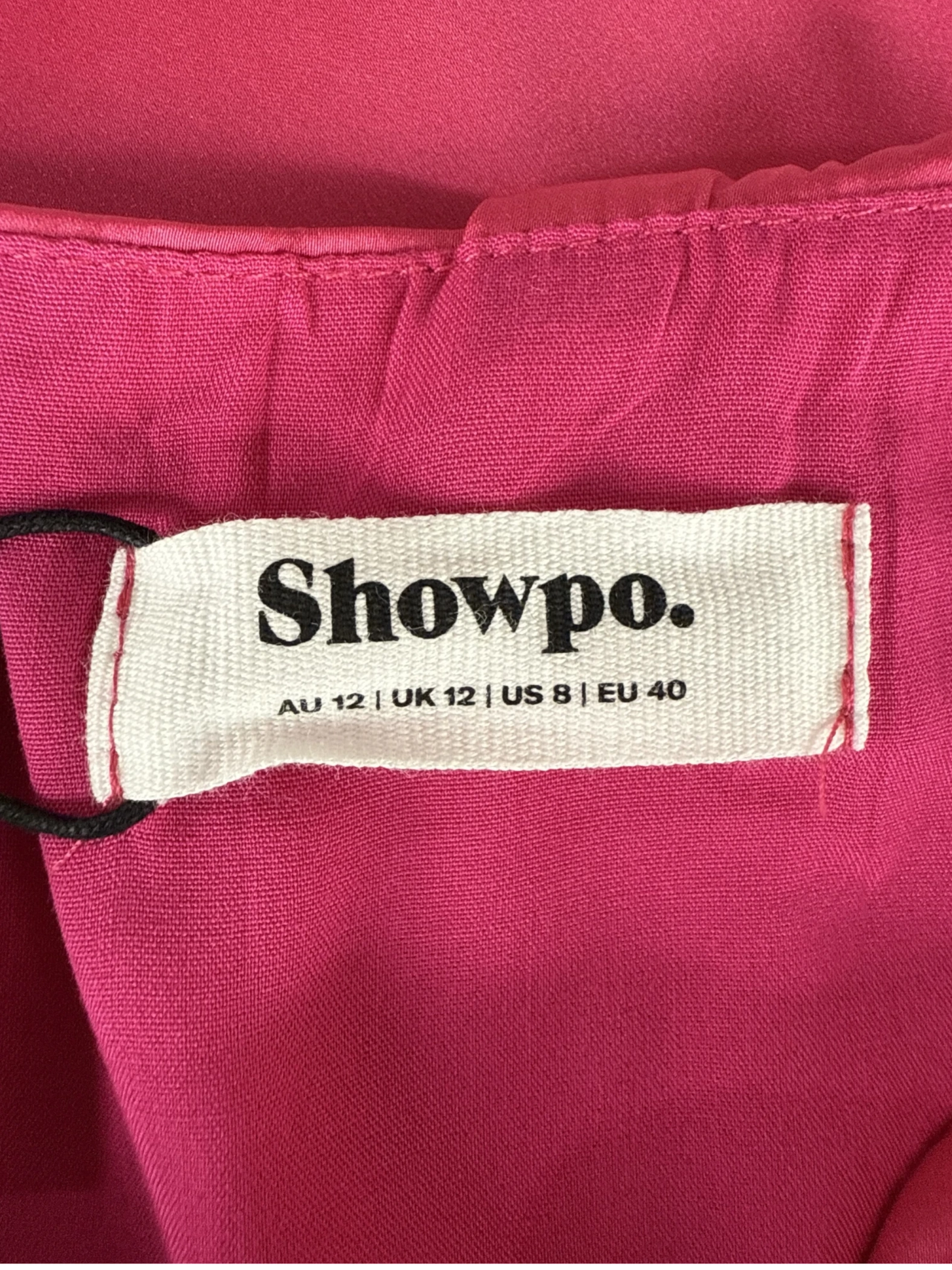 This stunning, pre-owned Showpo maxi dress is the perfect statement piece for any special occasion. Crafted from a luxurious, flowing fabric, this dress features a chic one-shoulder design and a flattering silhouette. The vibrant pink hue ensures you'll turn heads, while the maxi length offers elegance and sophistication. Ideal for parties, evenings out, or formal events, this dress is a must-have for your wardrobe. Excellent condition, ready to wear.