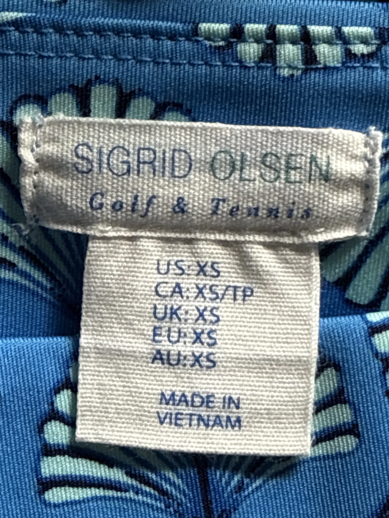 This pre-owned SIGRID OLSEN skort is perfect for active women. It features a vibrant blue floral pattern and is designed for comfort and style on the golf course or tennis court. Made with quality materials, this skort combines functionality with a flattering design. It's an excellent choice for any activewear wardrobe. This lightweight skort is perfect for summer activities.