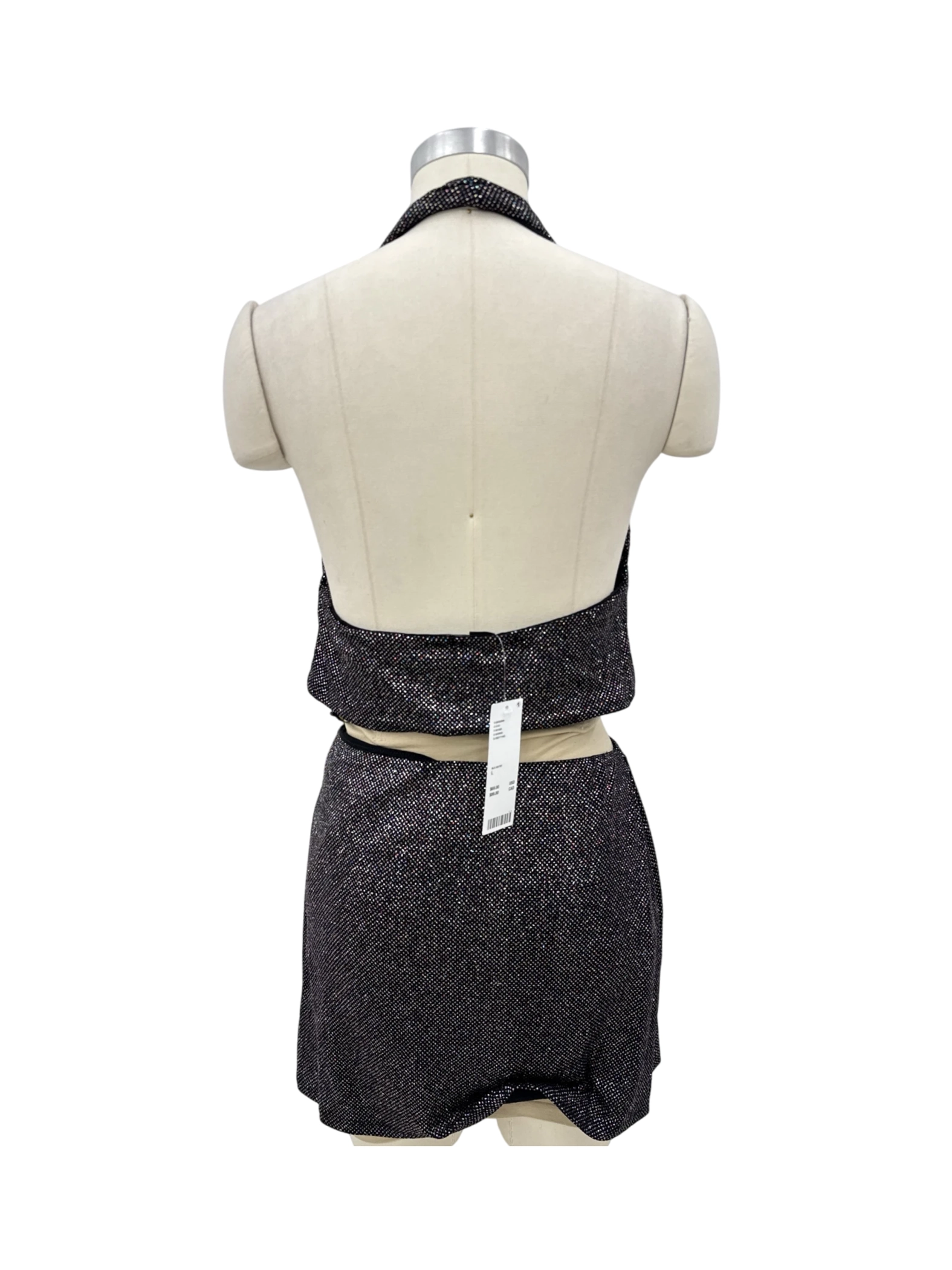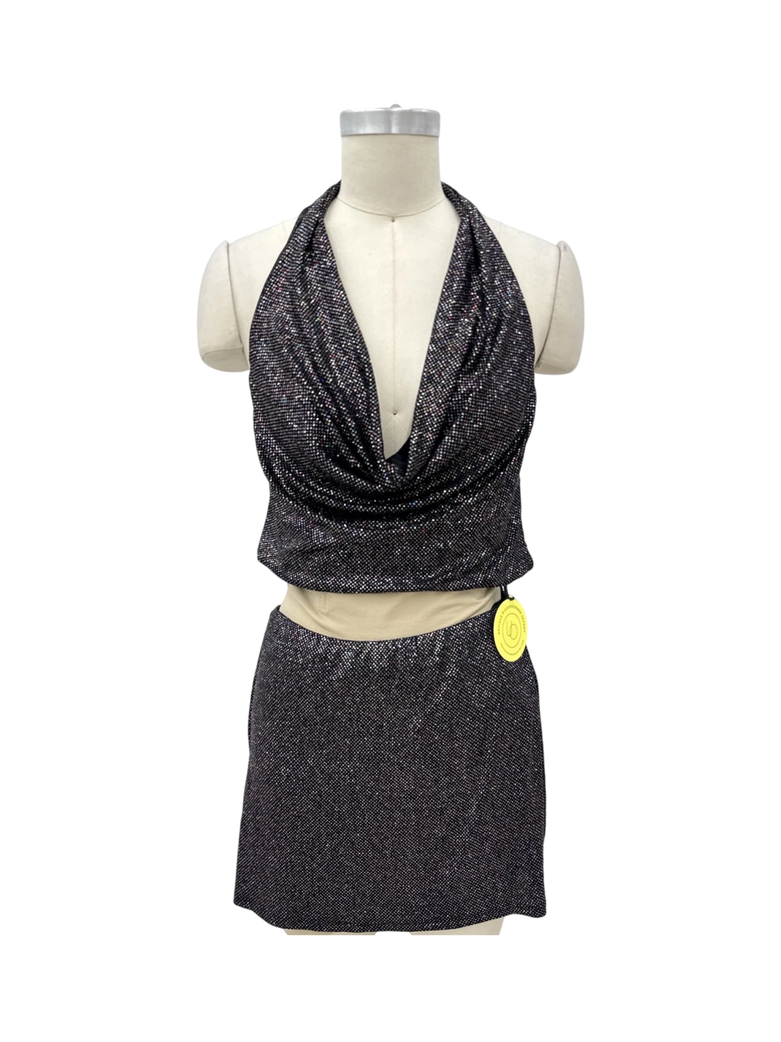 This stunning SILENCE + NOISE bodycon dress is perfect for a night out. The sleeveless design and mini skirt length create a flirty silhouette, while the metallic accents add a touch of glamour. Crafted from a blend of nylon and spandex, this dress offers a comfortable and flattering fit. Ideal for cocktail parties, clubbing, or a fun night out with friends. Embrace the party season with this second hand dress!